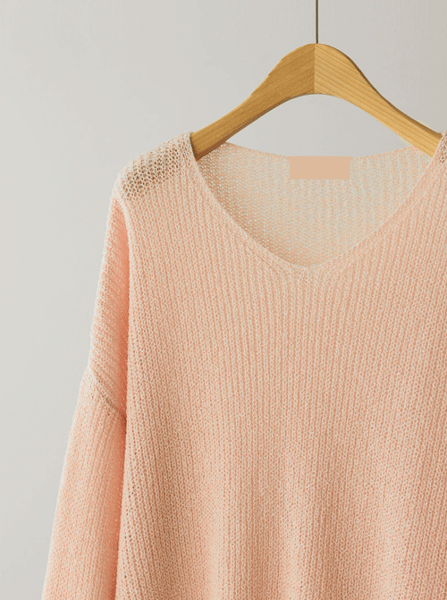 奶油色V領針織衫 Z423