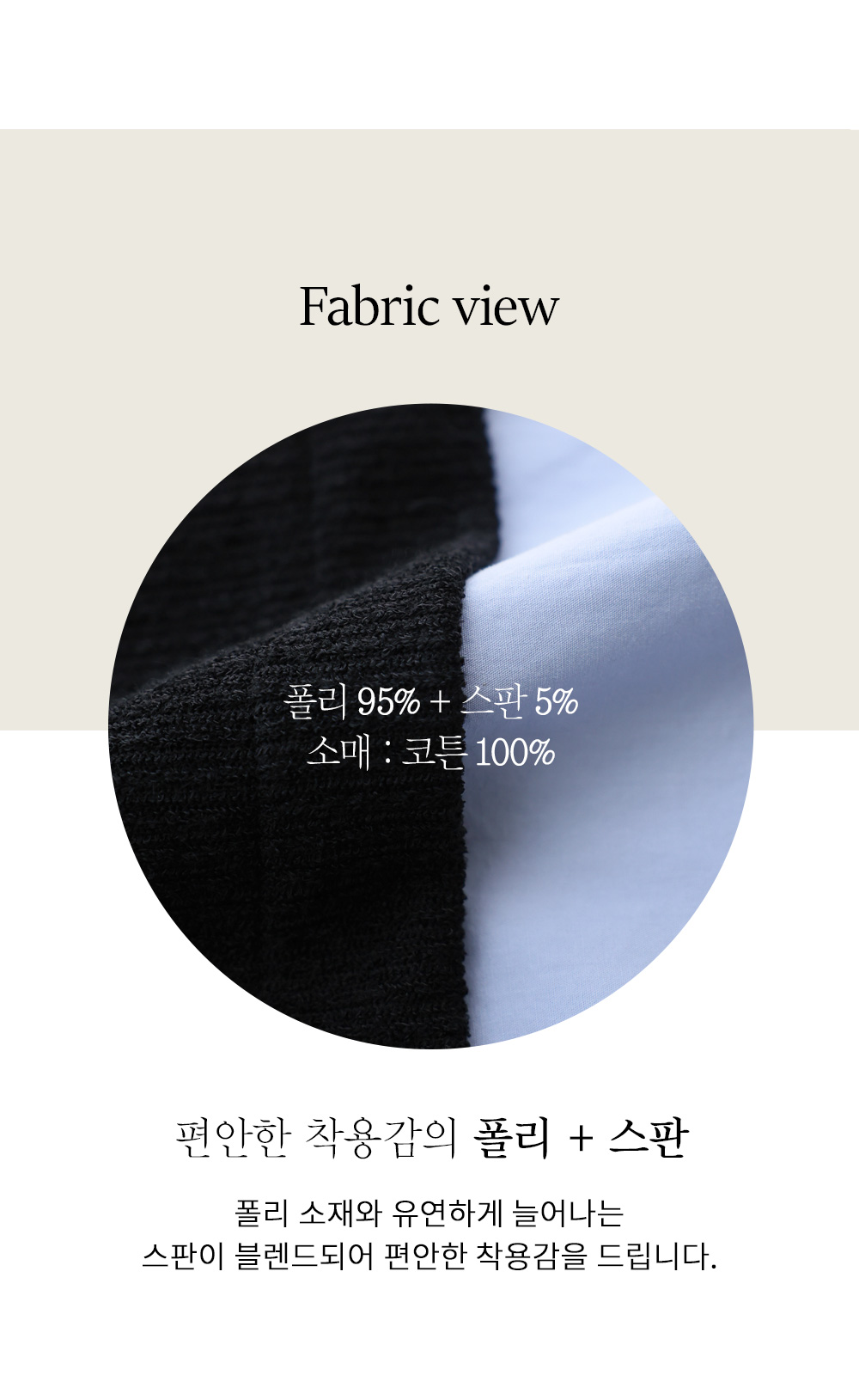 폴리95%,스판5% 배색:코튼100%