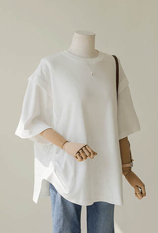 A:너무 높지 않은 단정한 라운드넥이에요. 적당히 여유를 두고 제작되어 목선이 길어 보이고, 답답함 없이 깔끔한 인상을 만들어 준답니다.
