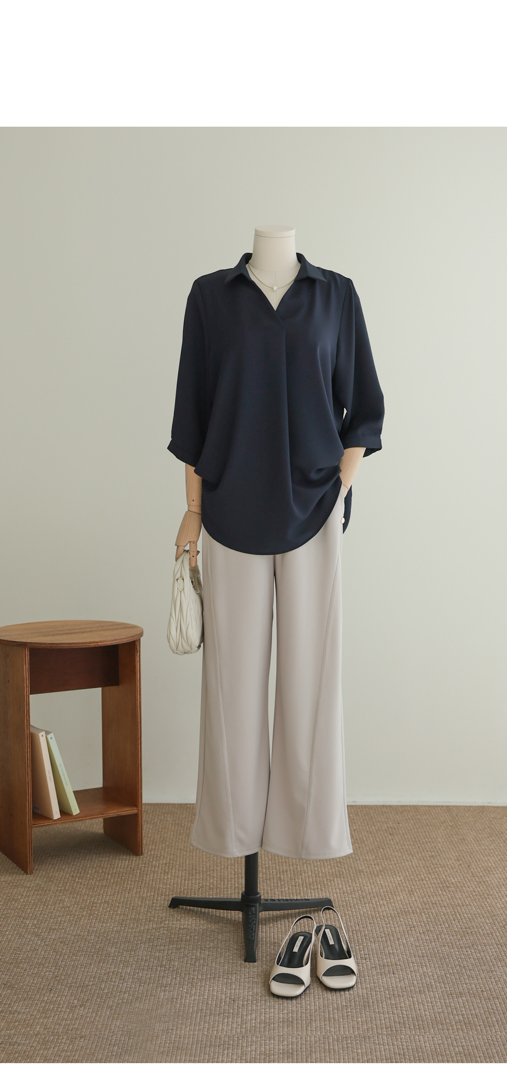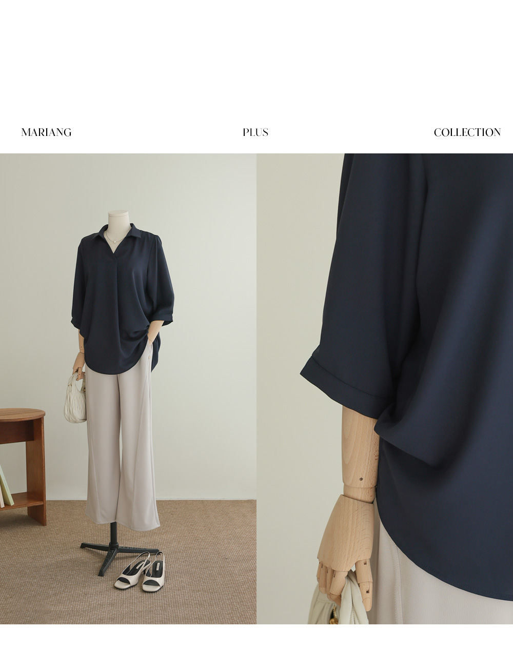 "기본에 충실하면서도 체형 커버는 확실하게!" 제가 샘플을 보자마자 감탄했던 부분이에요. 소재가 워낙 가볍고 찰랑거려서 몸에 달라붙지 않고, 핀턱이 주는 내추럴한 볼륨감 덕분에 상체 고민이 많으신 분들께 최고의 솔루션이 될 아이템이라 확신해요.