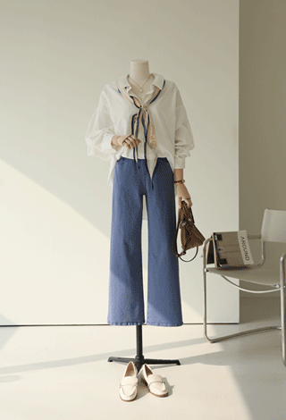 컬러 구성은 깊이감 있고 날씬해 보이는 네이비와 청량하고 맑은 안색을 만들어주는 스카이블루 두 가지로 준비했어요. 1번과 2번 사이즈로 나뉘어 있어 체형에 맞는 안정적인 선택이 가능하며, 앞면 단추가 있어 전부 클로징하여 단정한 블라우스로 입거나 살짝 오픈하여 내추럴한 상의로도 활용 가능한 만능 아이템이에요.