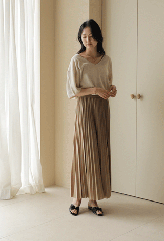 부드러운 레이온 25%에 탄탄한 폴리 70%, 그리고 쫀쫀한 스판 5%를 황금 비율로 섞어 만든 프리미엄 니트 원단이에요. 레이온이 섞여 피부에 닿았을 때 차갑고 매끄러운 감촉을 주면서도, 폴리가 함유되어 구김이나 보풀 걱정을 덜어주구요. 스판 5%의 강력한 신축성 덕분에 격한 움직임에도 복원력이 뛰어나 무릎 나옴 현상 없이 처음 핏 그대로 오래 유지해 드려요.
