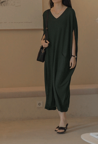 A:뻣뻣한 원단이 아니라 찰랑하게 아래로 떨어지는 소재라 옆으로 퍼지지 않아요. 몸 라인을 따라 부드럽게 안착되니 안심하셔도 돼요.