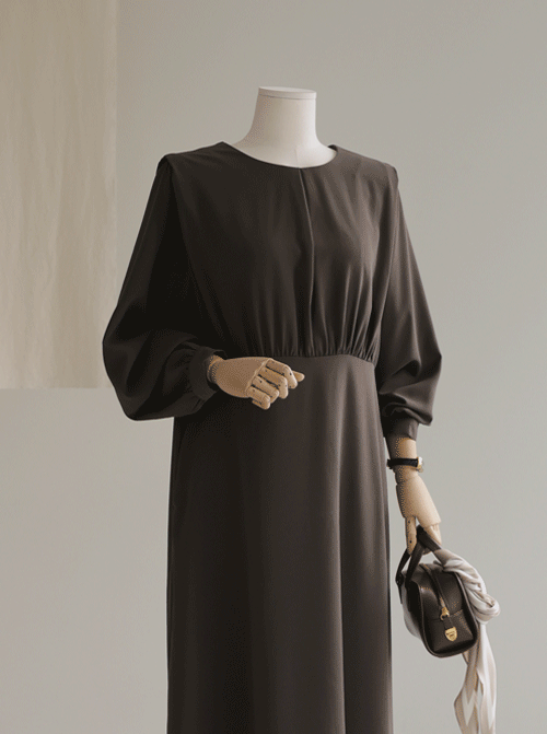 V領抽褶連衣裙MM4