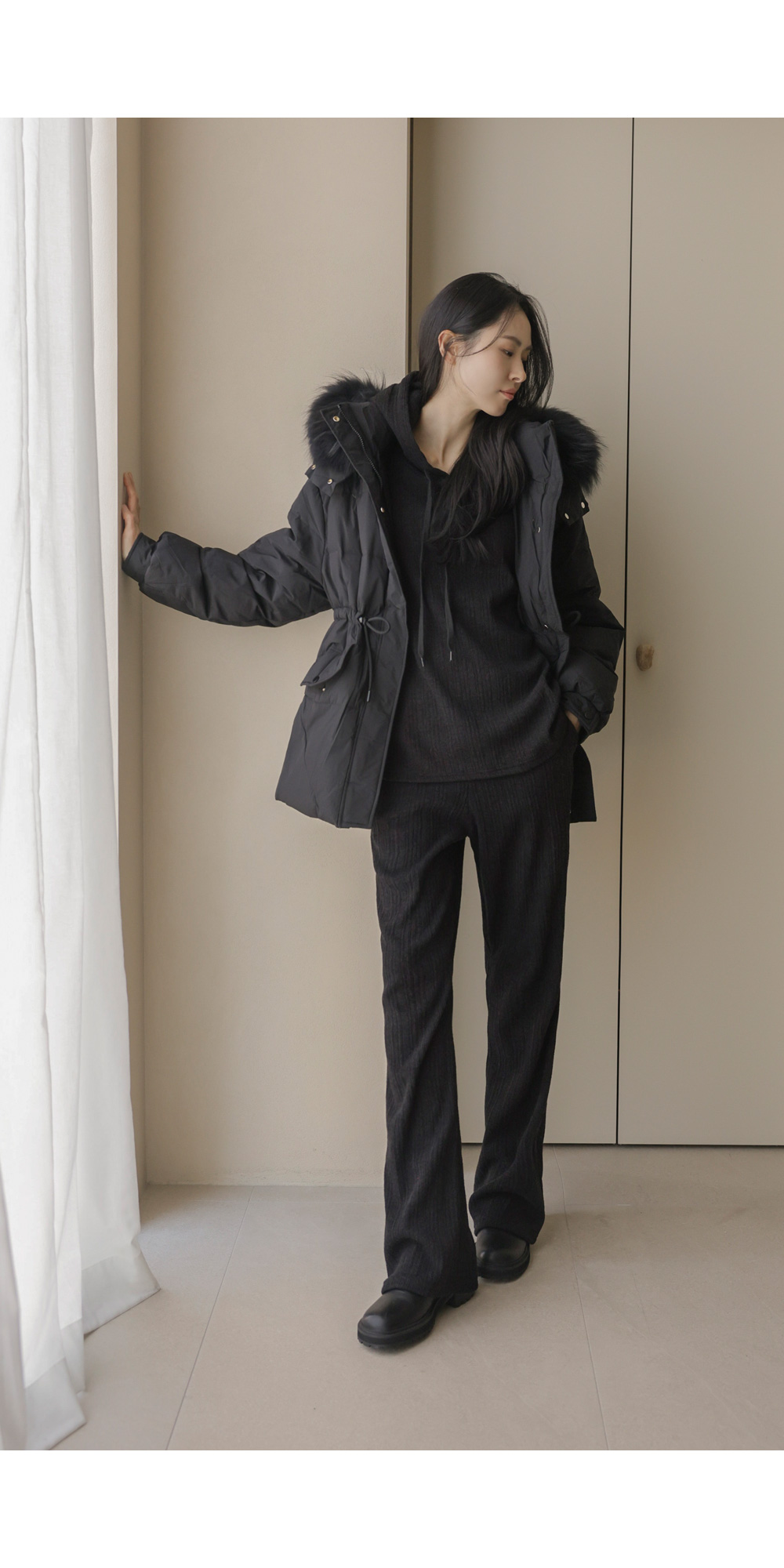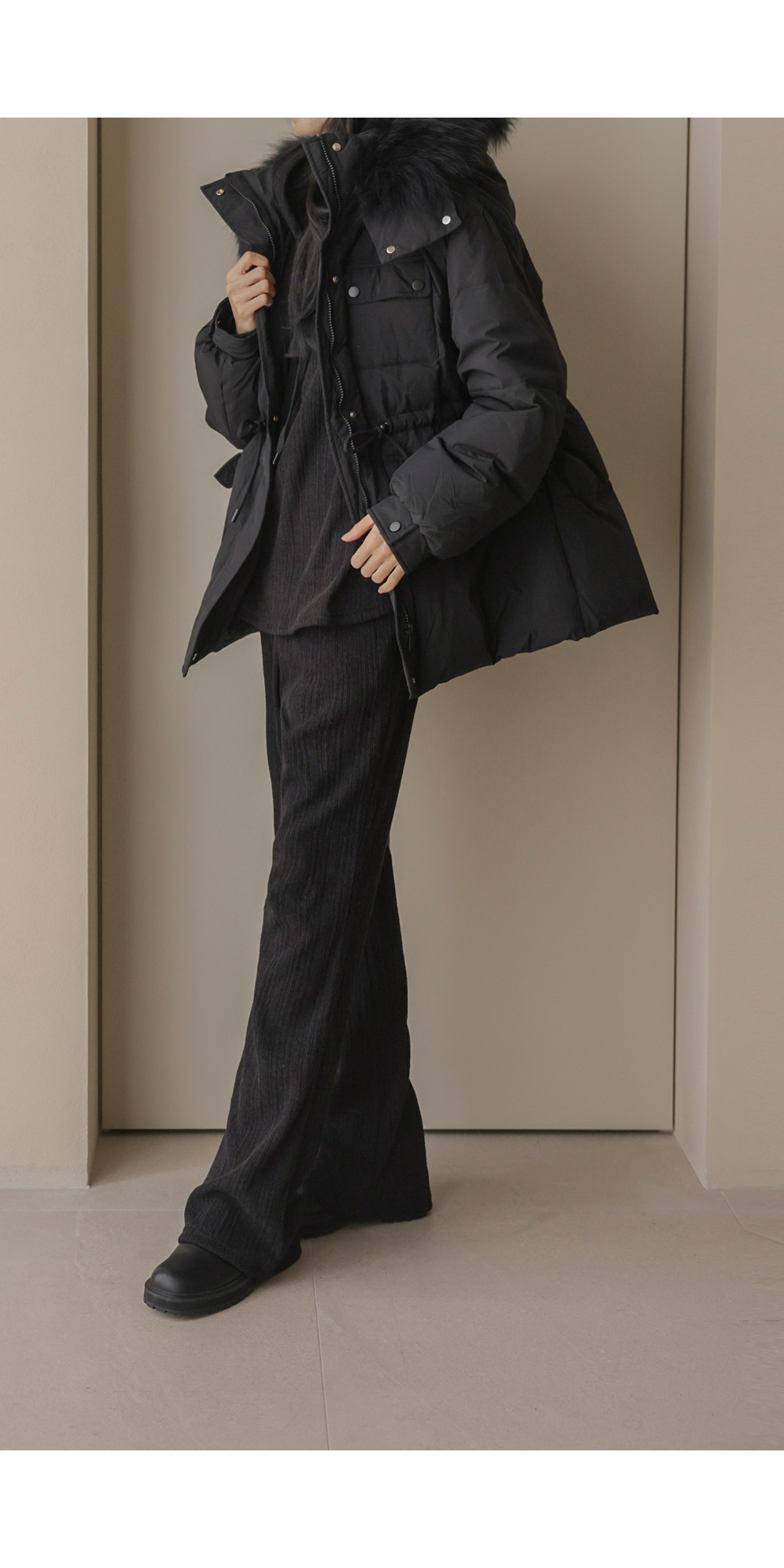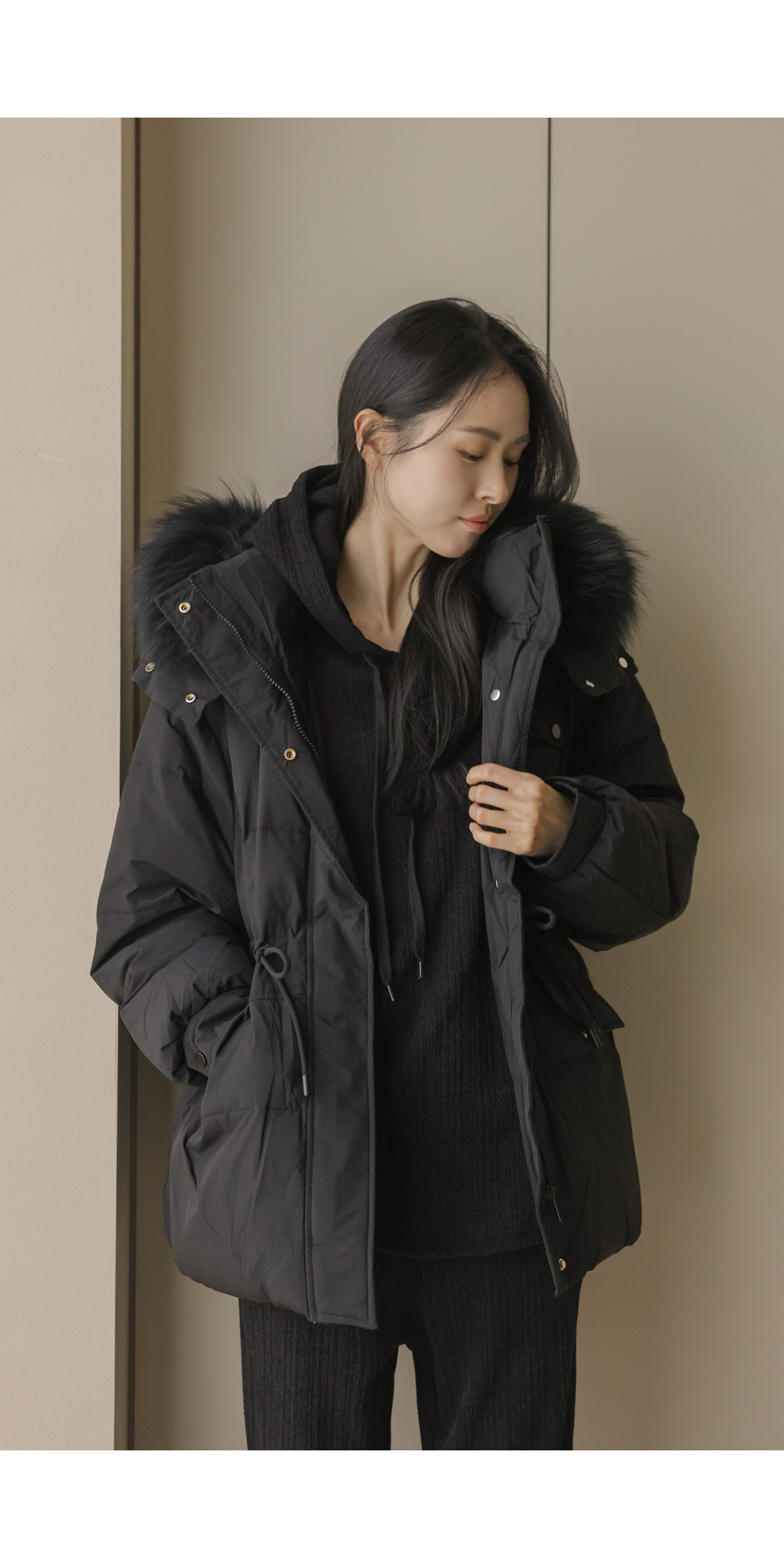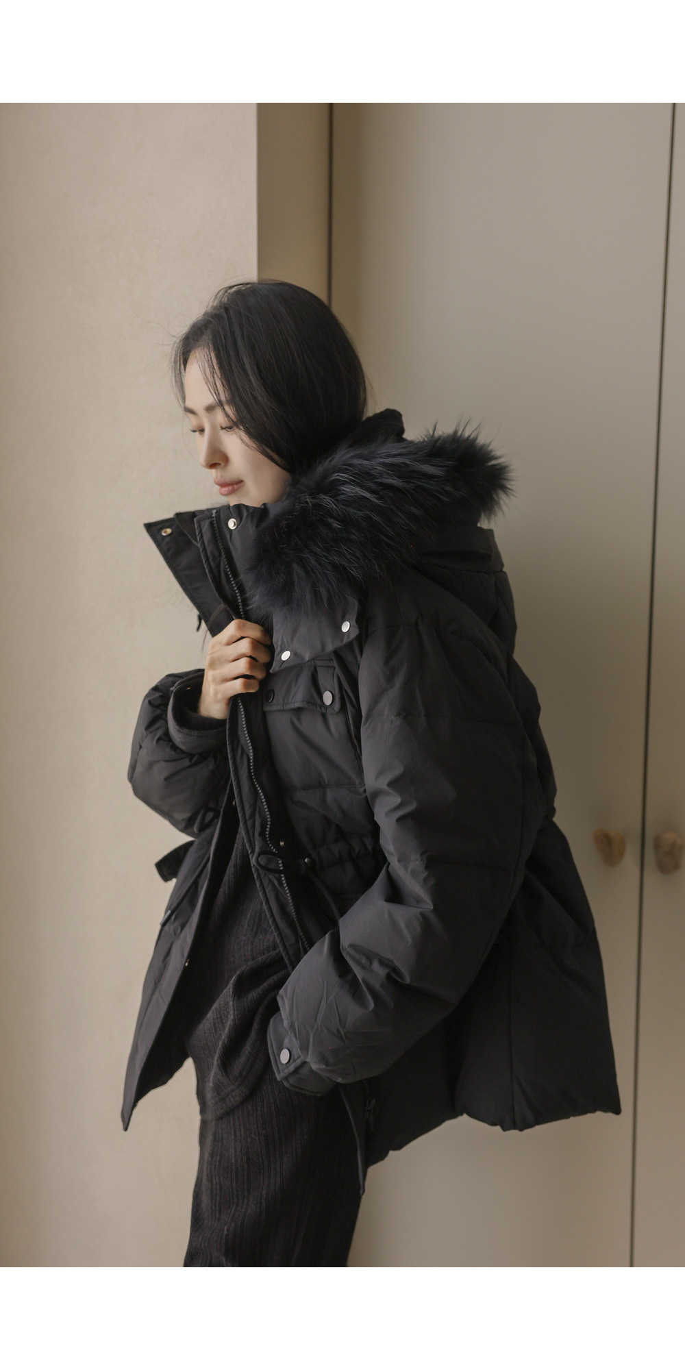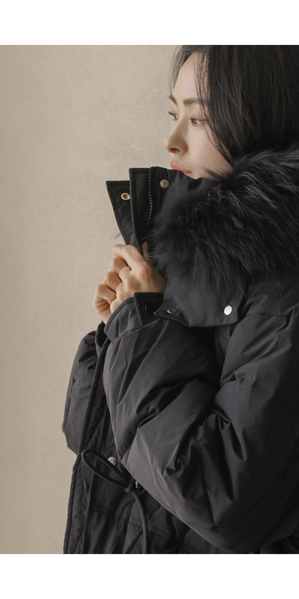 충전재: 오리솜털90%,깃털10% 퍼: 라쿤100%