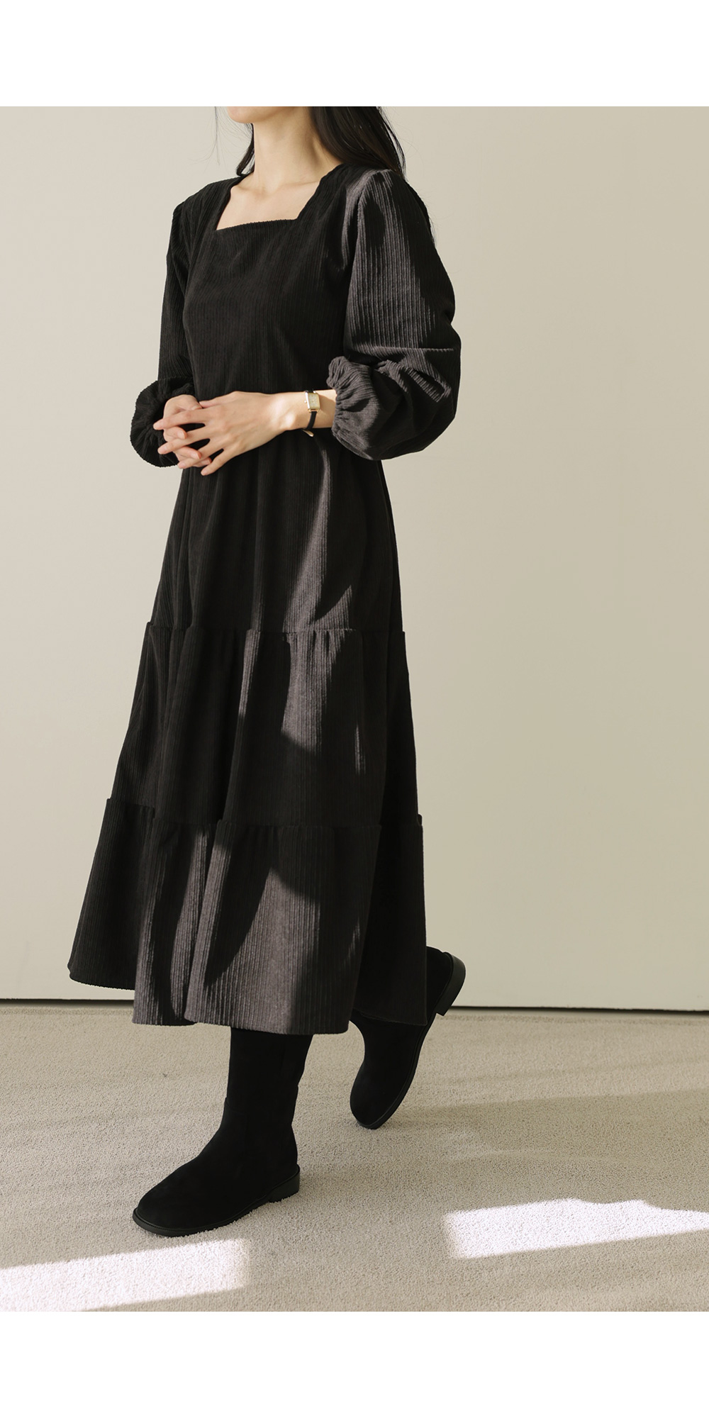 젤타르 스퀘어넥 원피스 _ 블랙,브라운