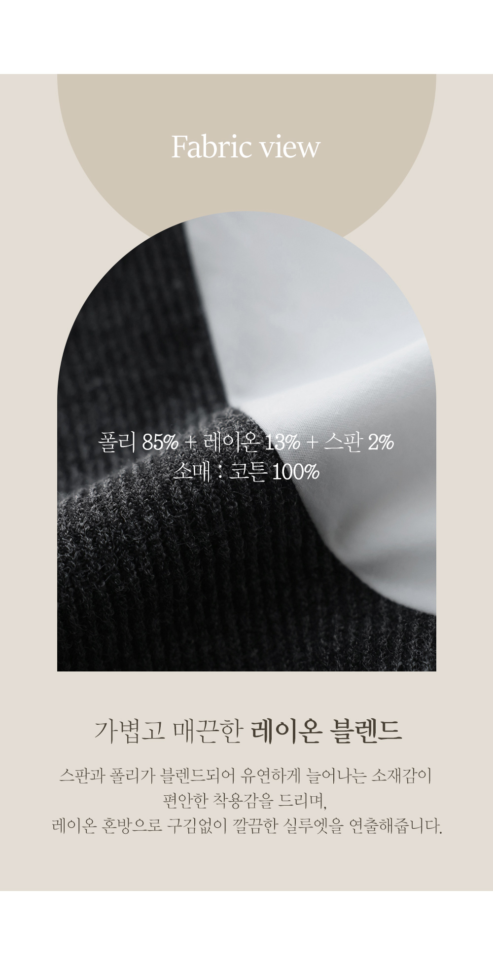 폴리85%,레이온13%,스판2% 소매: 코튼100%