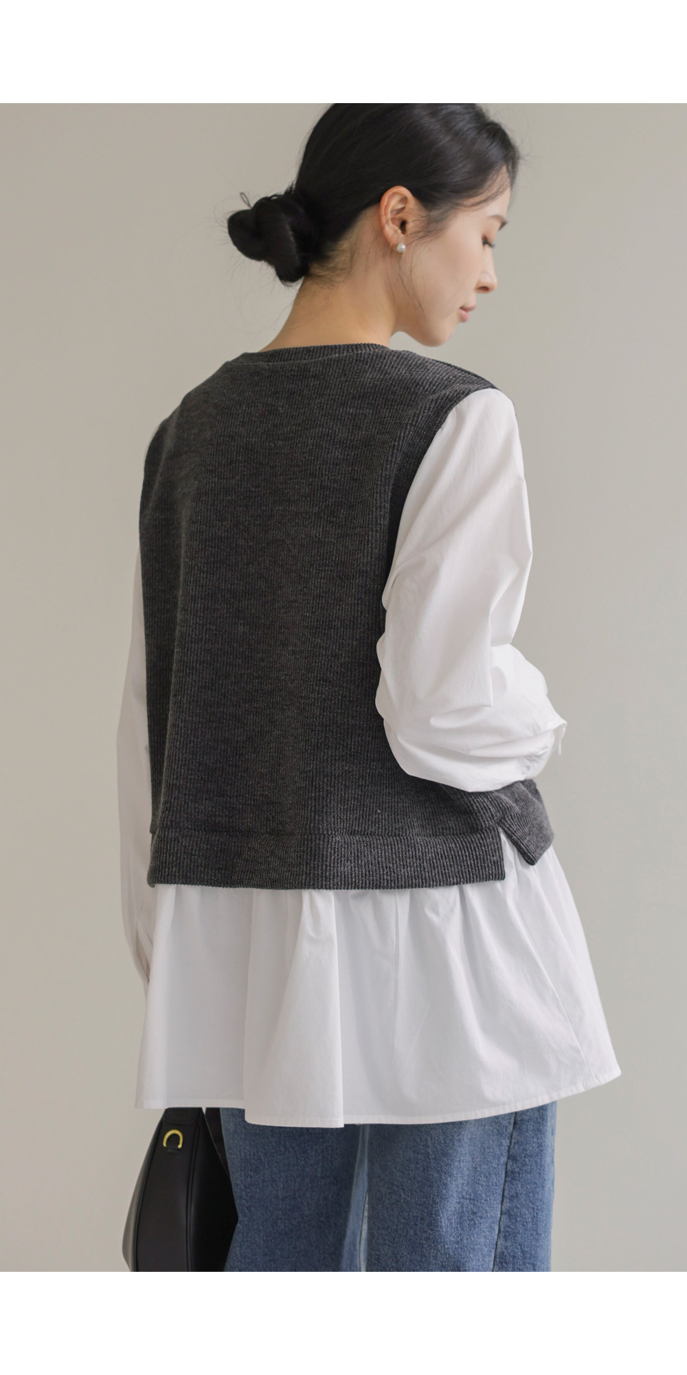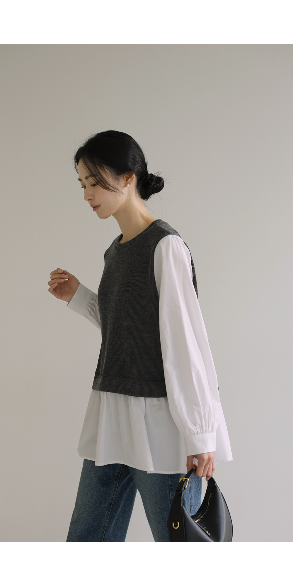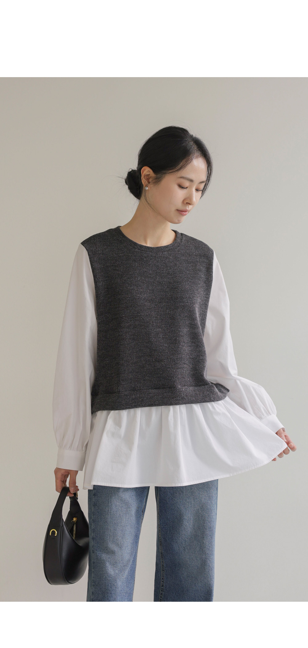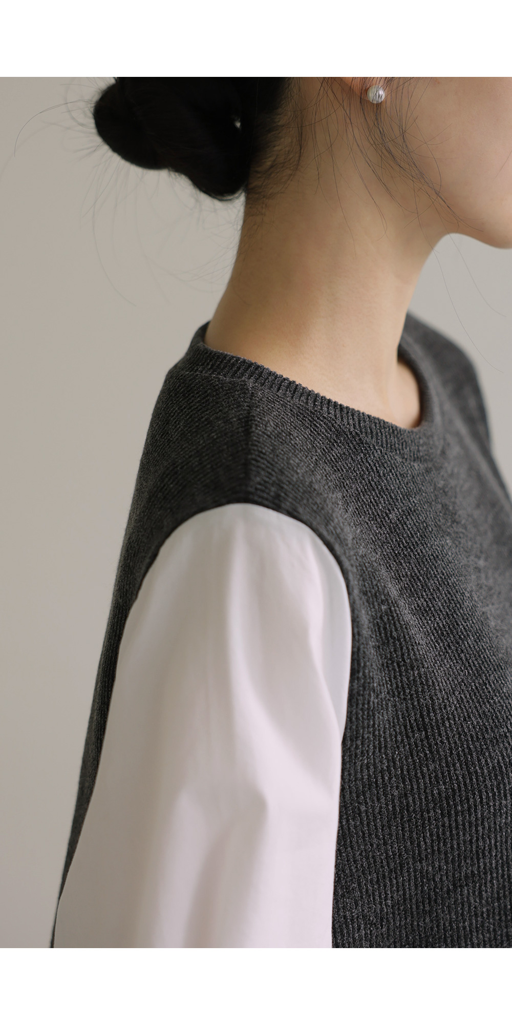 나이아 레이어드 블라우스 _ 차콜