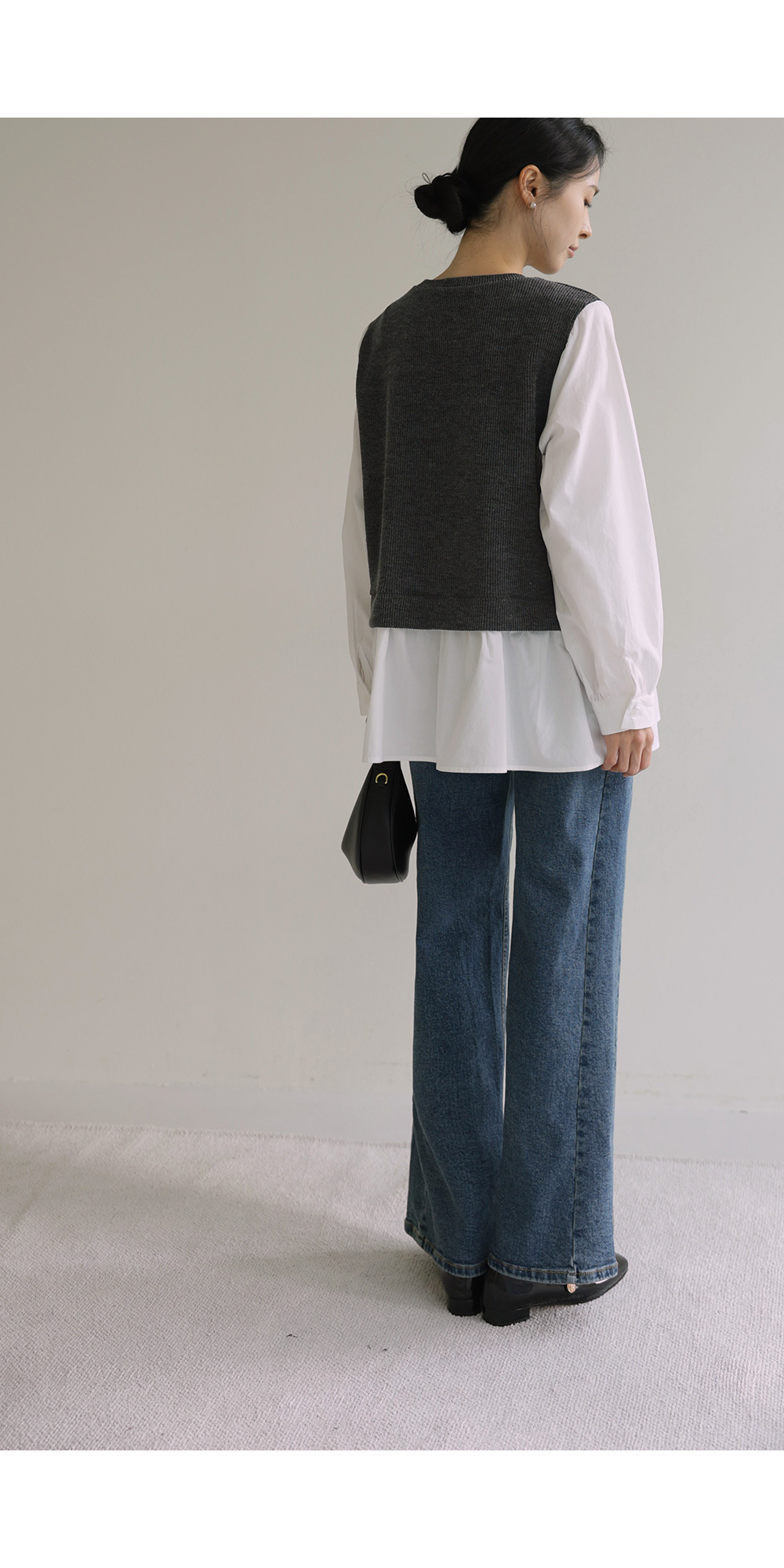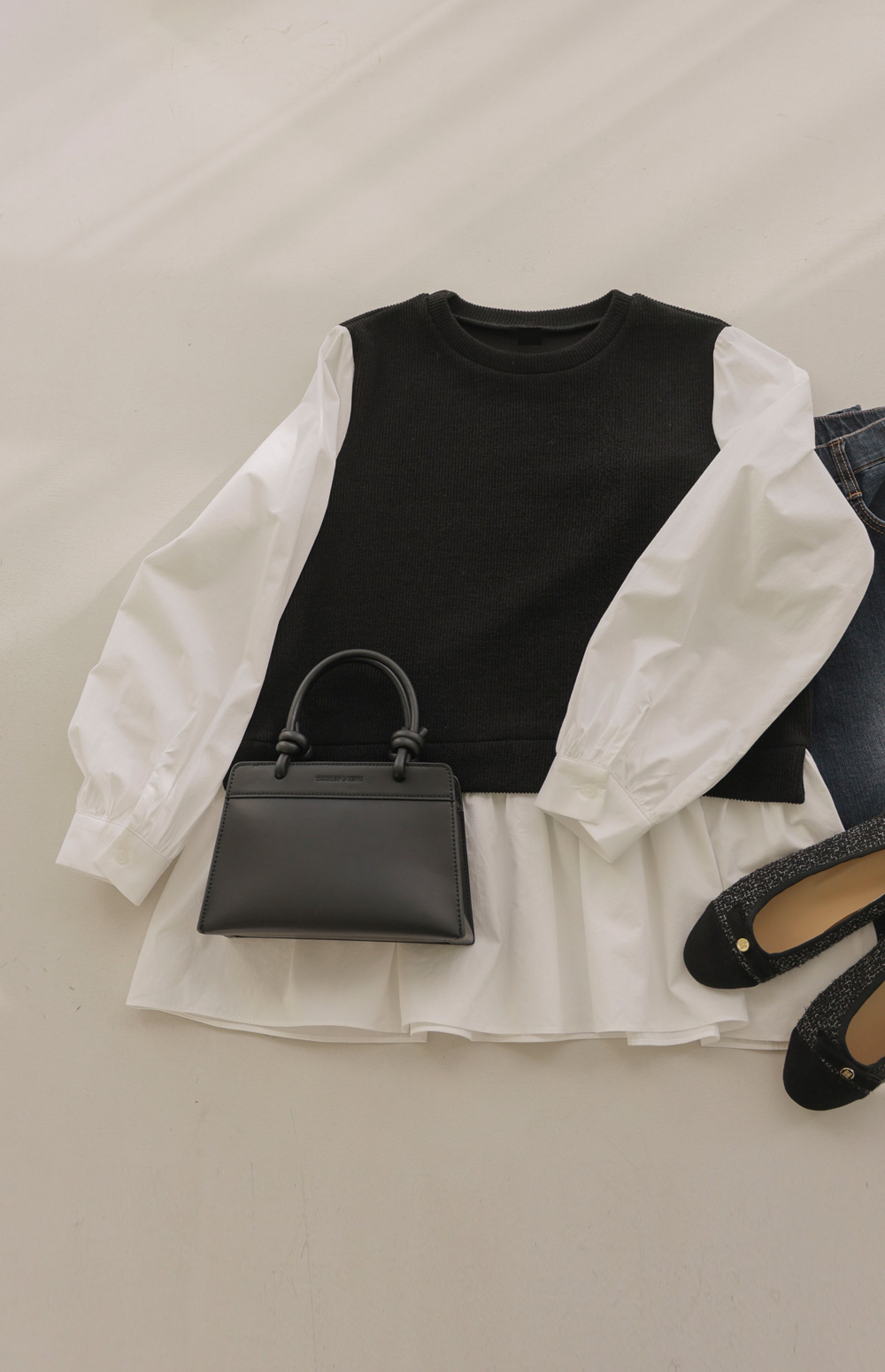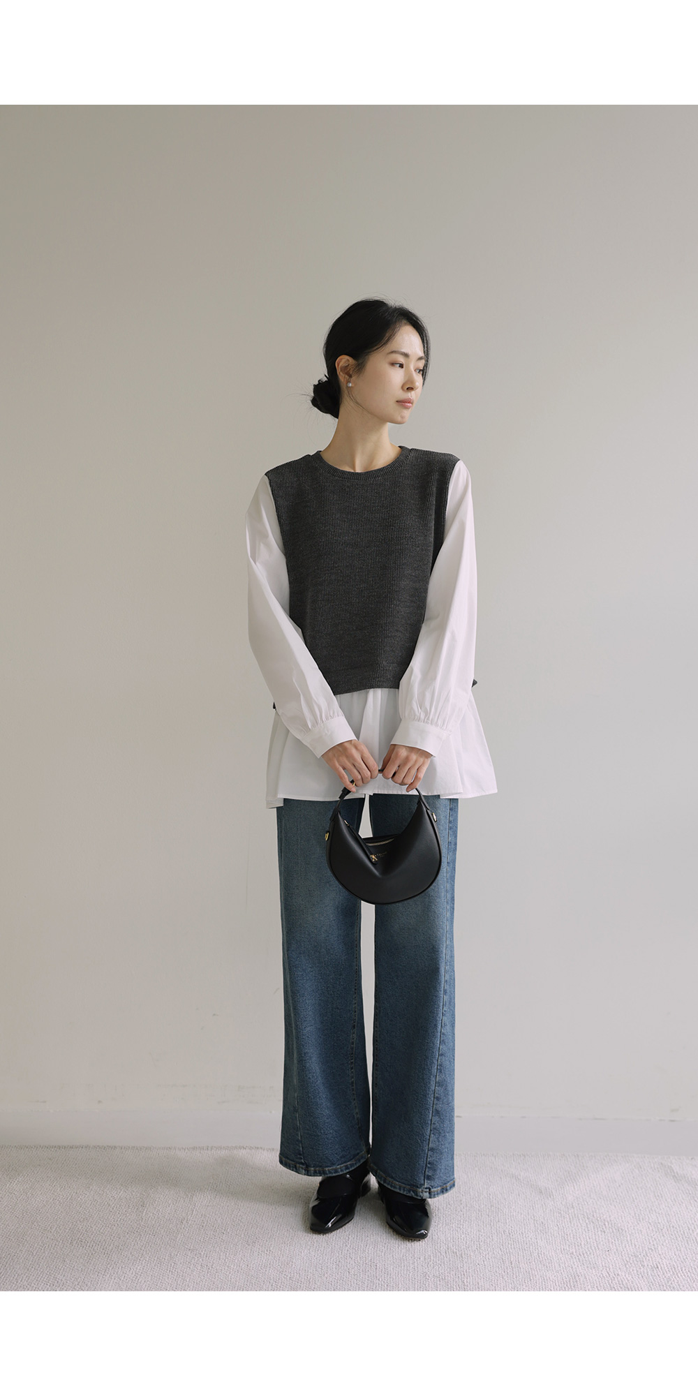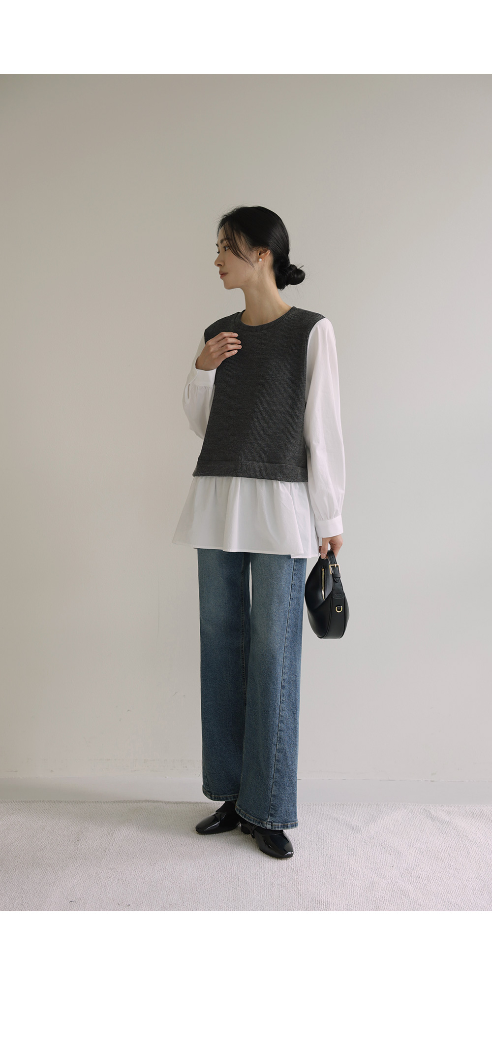 나이아 레이어드 블라우스 _ 차콜