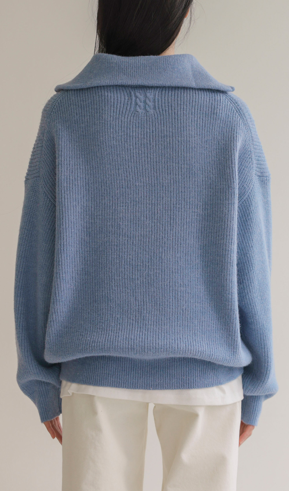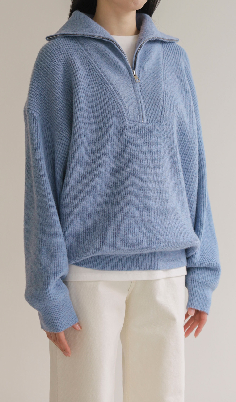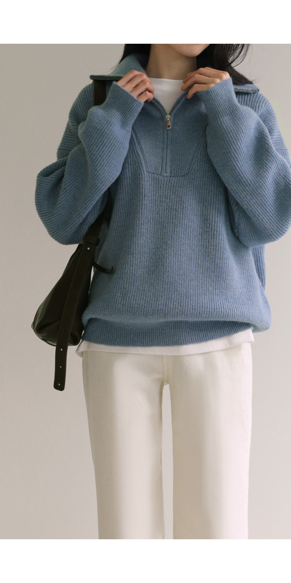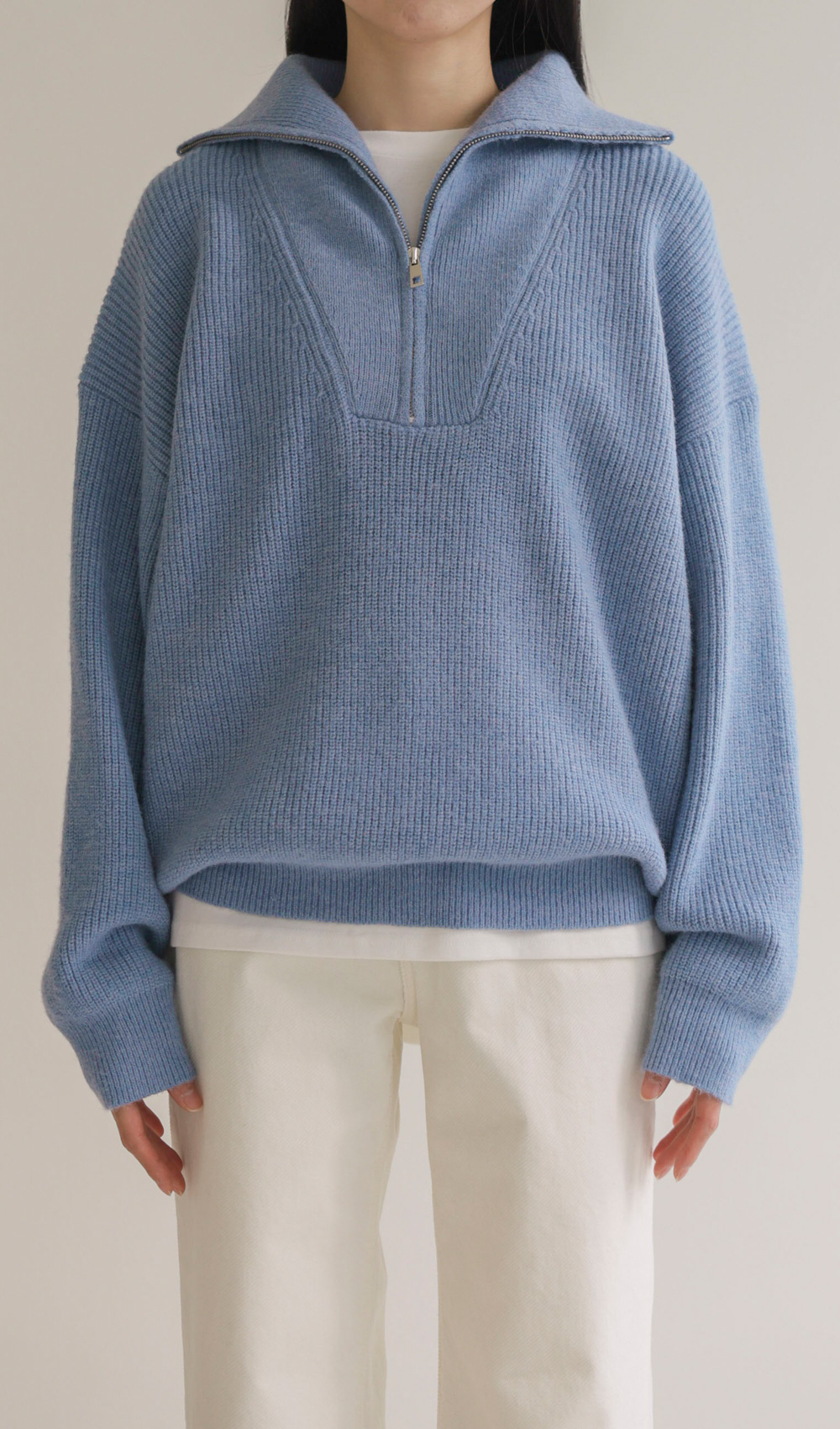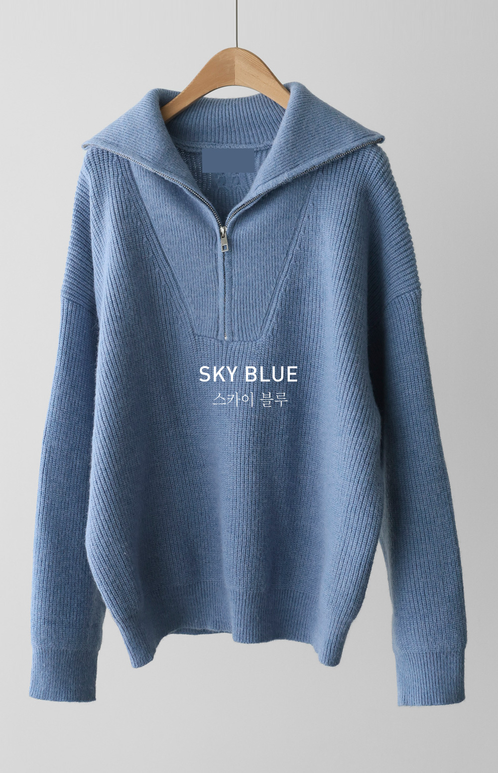 보이델 반집업 니트 _ 스카이블루,아이보리