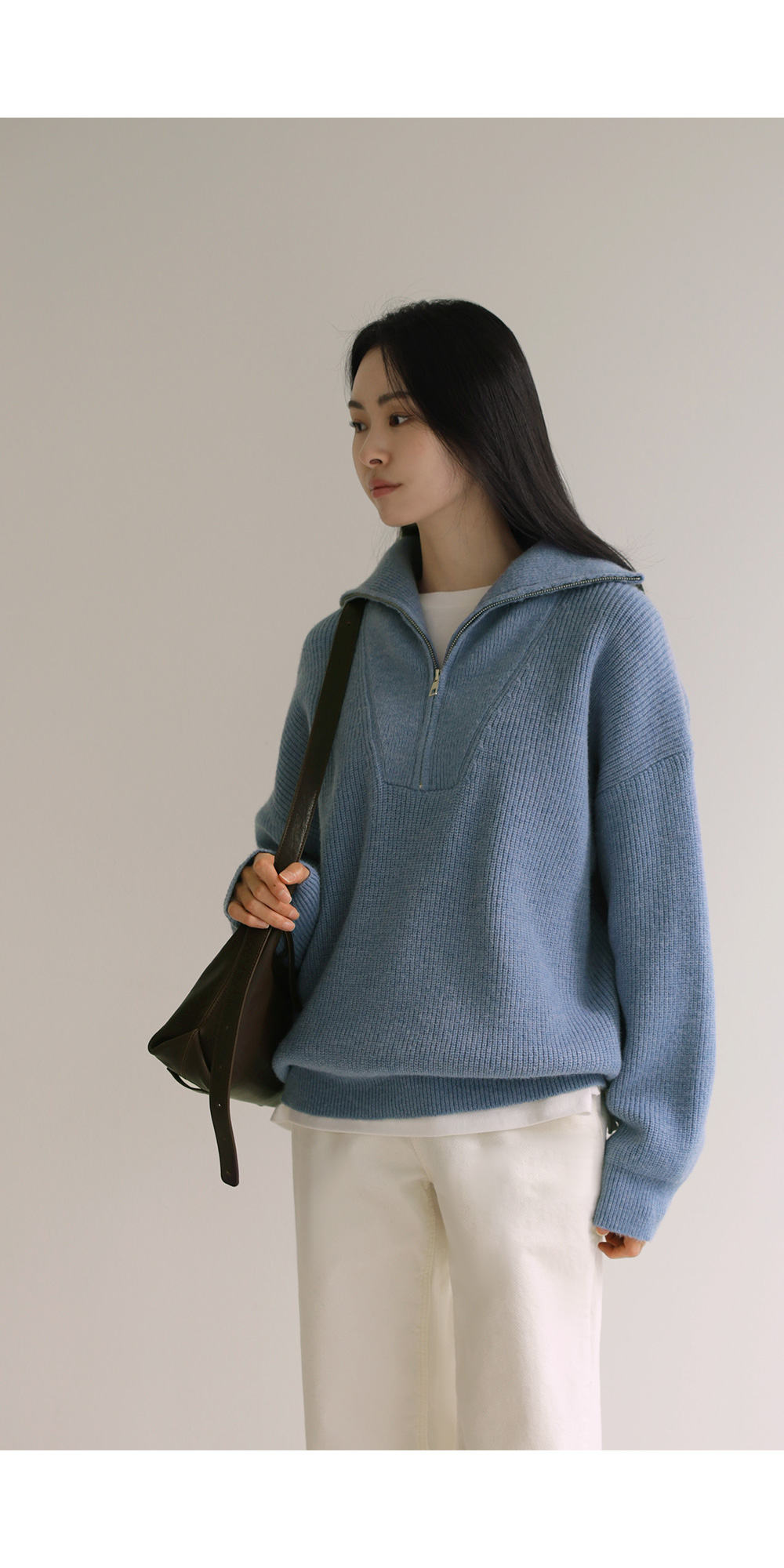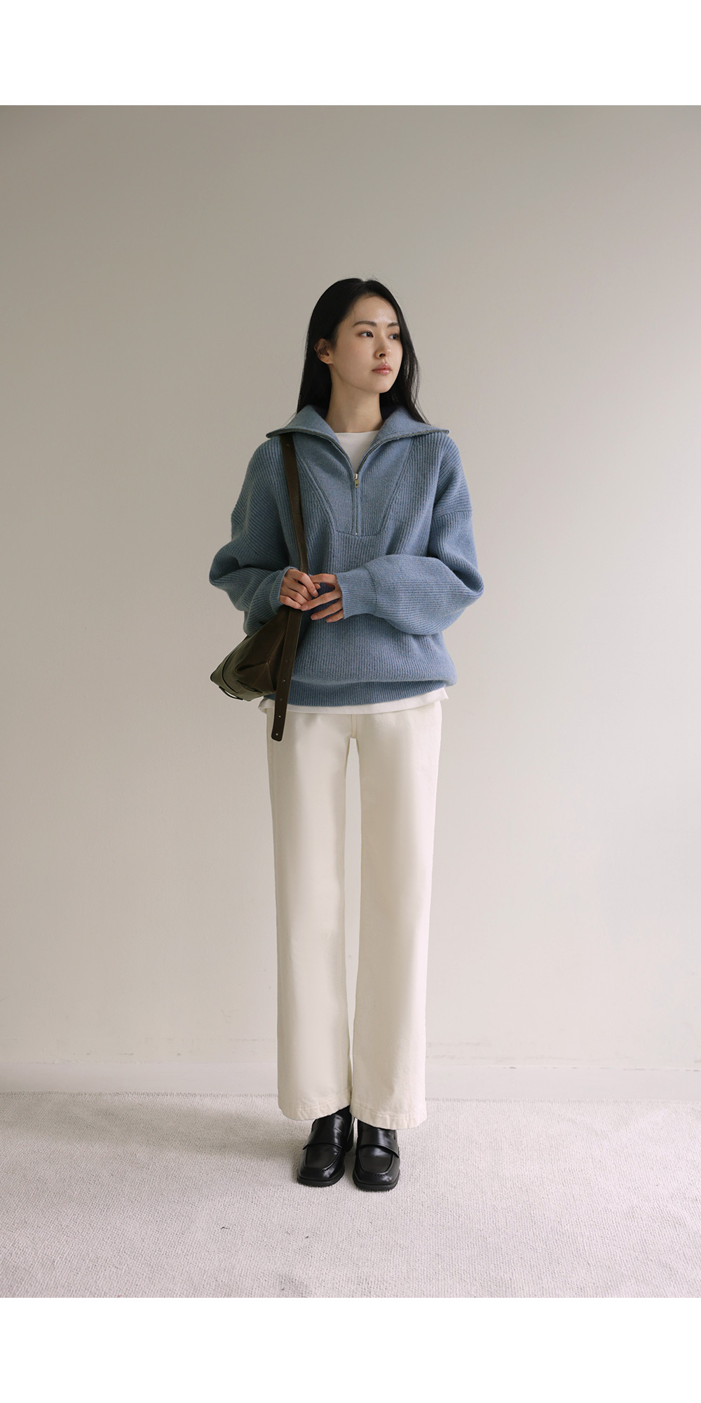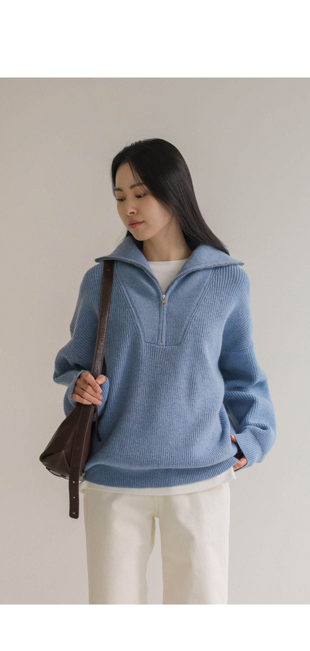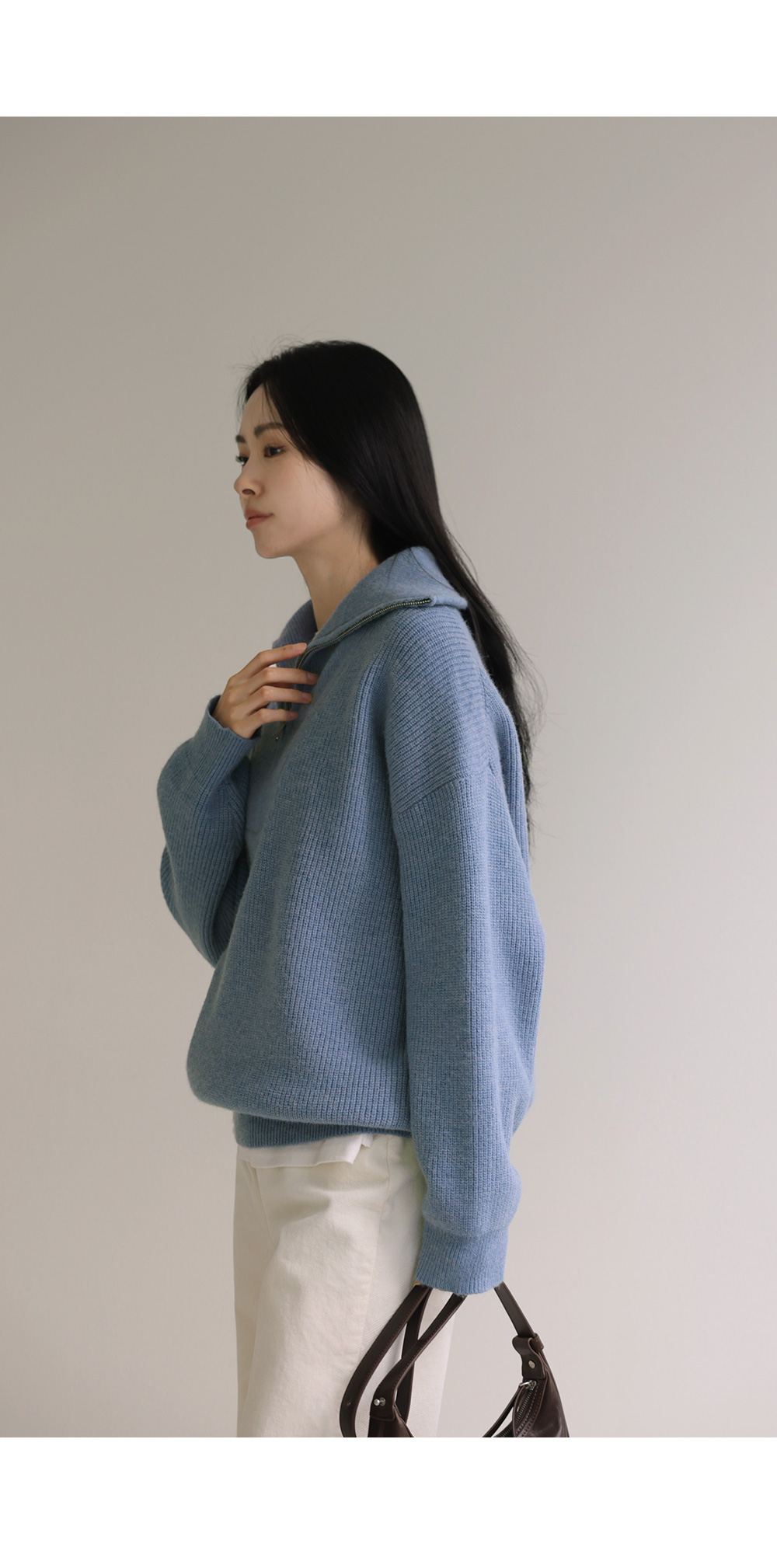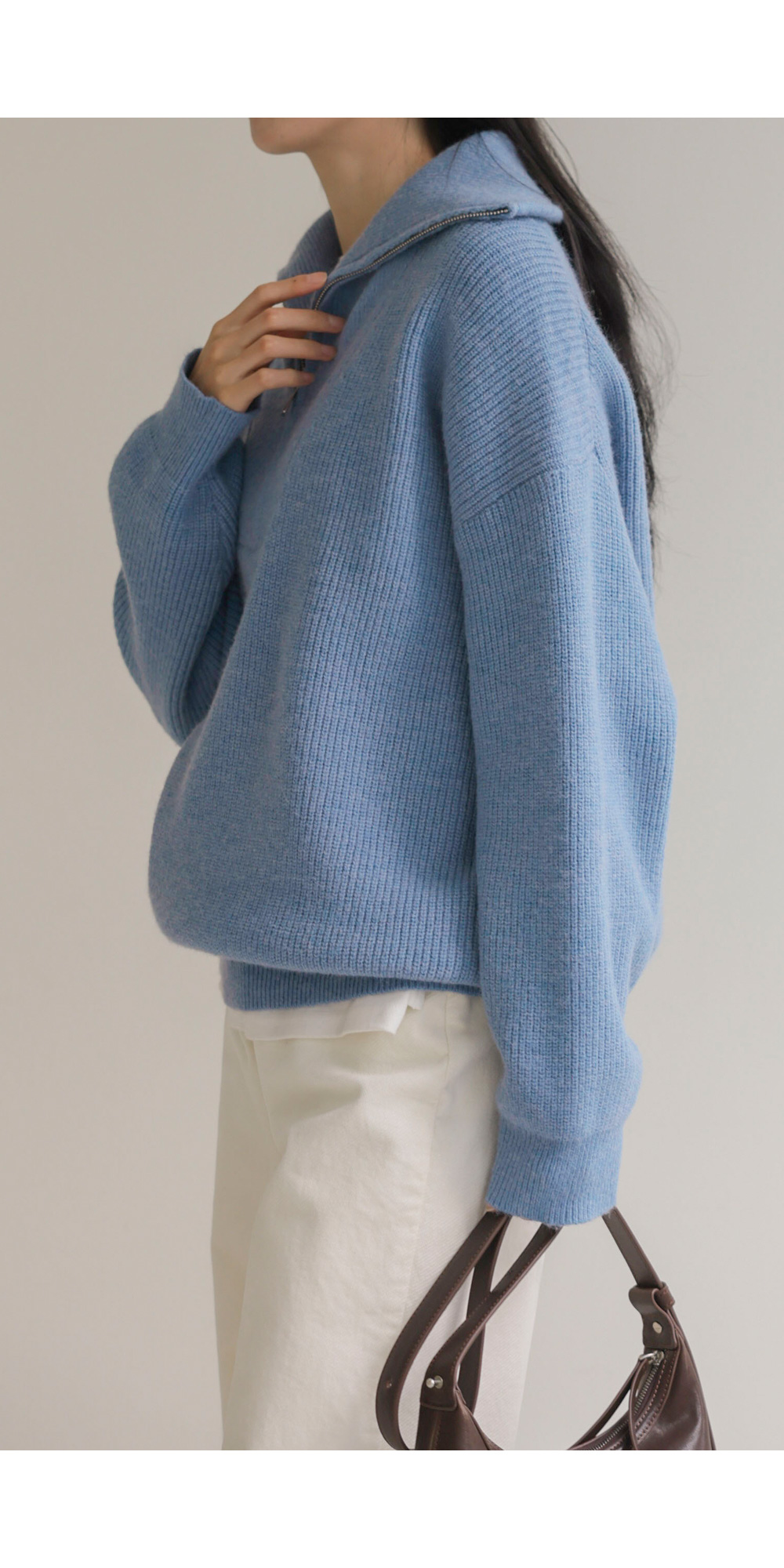 보이델 반집업 니트 _ 스카이블루,아이보리