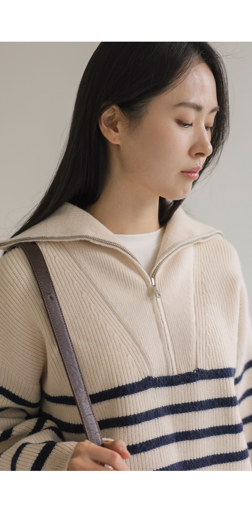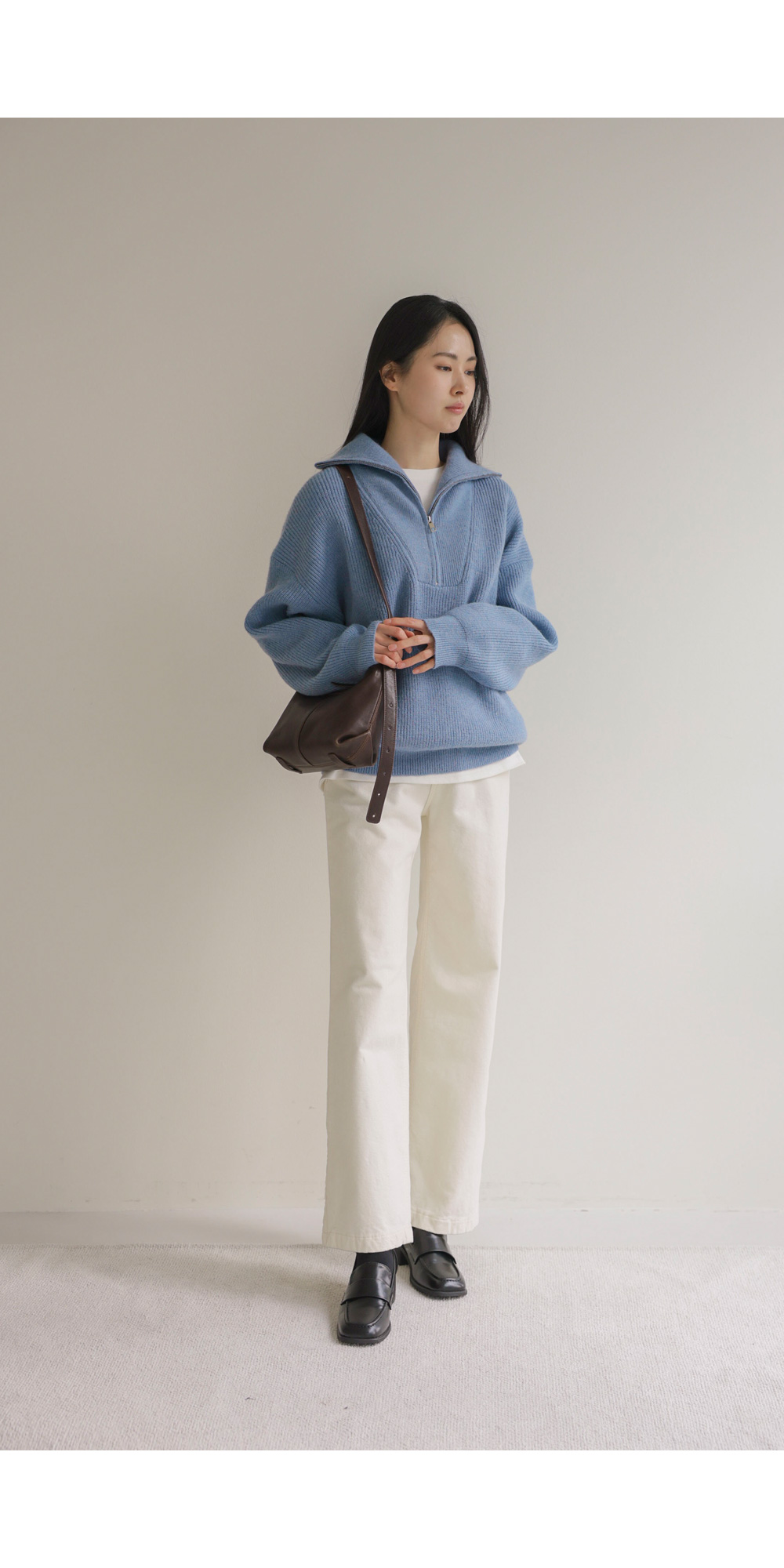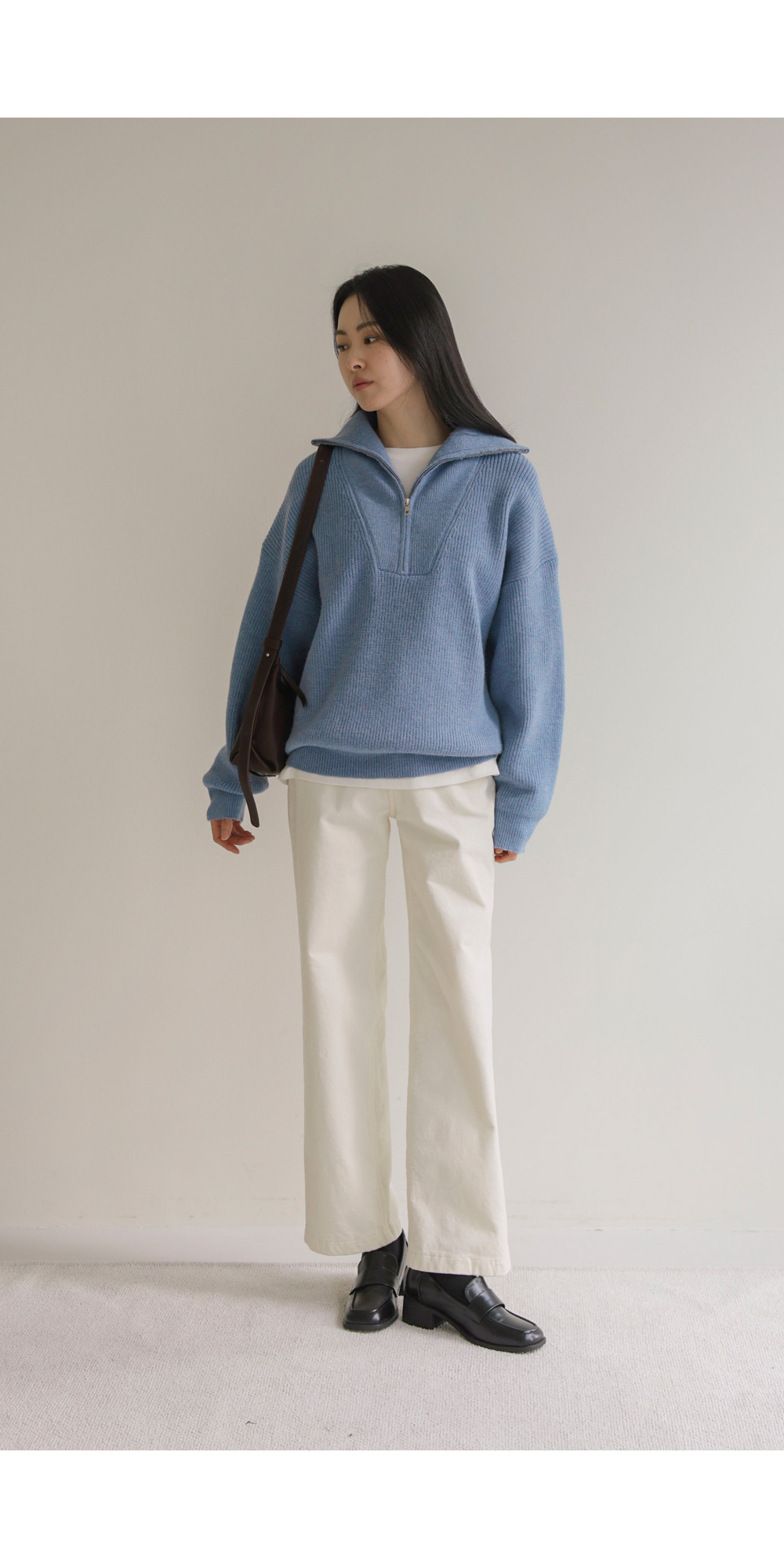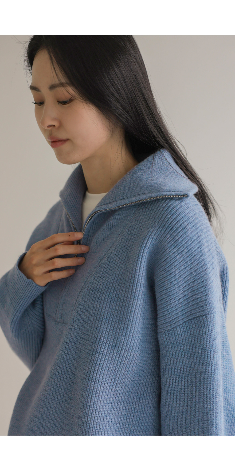 보이델 반집업 니트 _ 스카이블루,아이보리