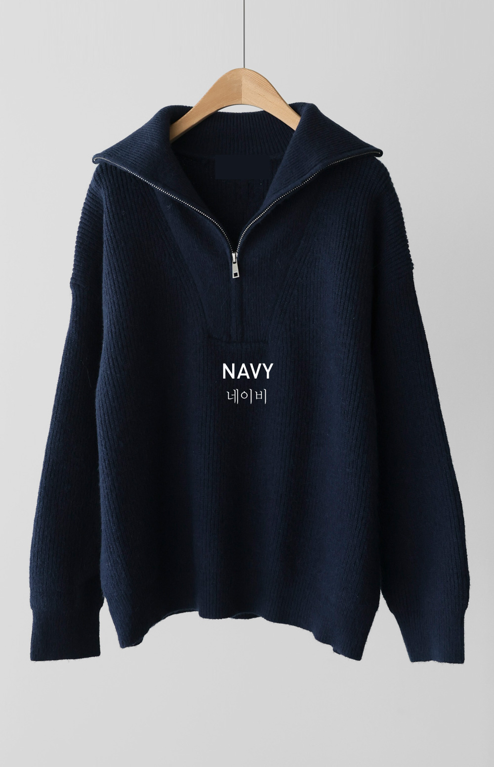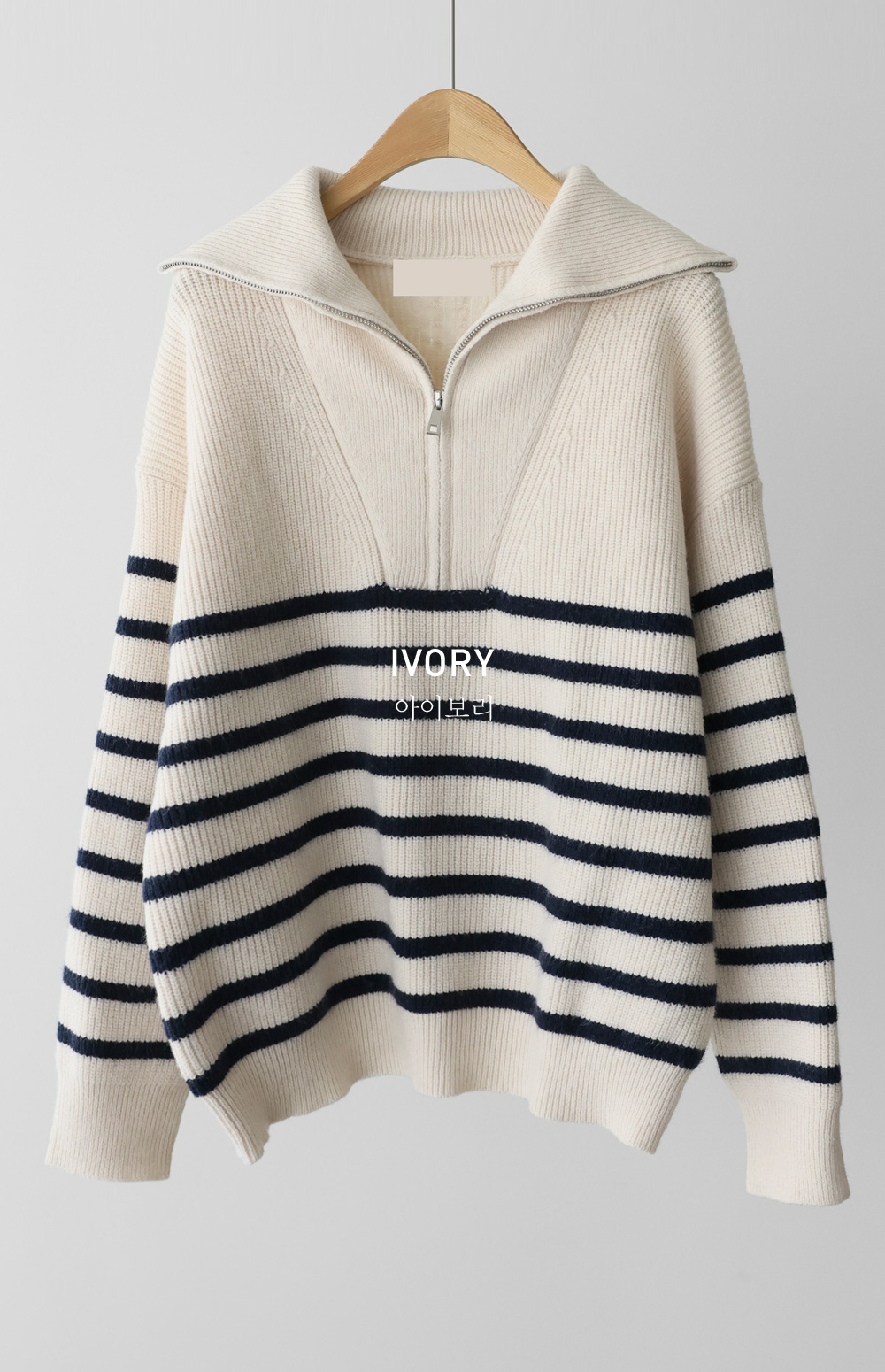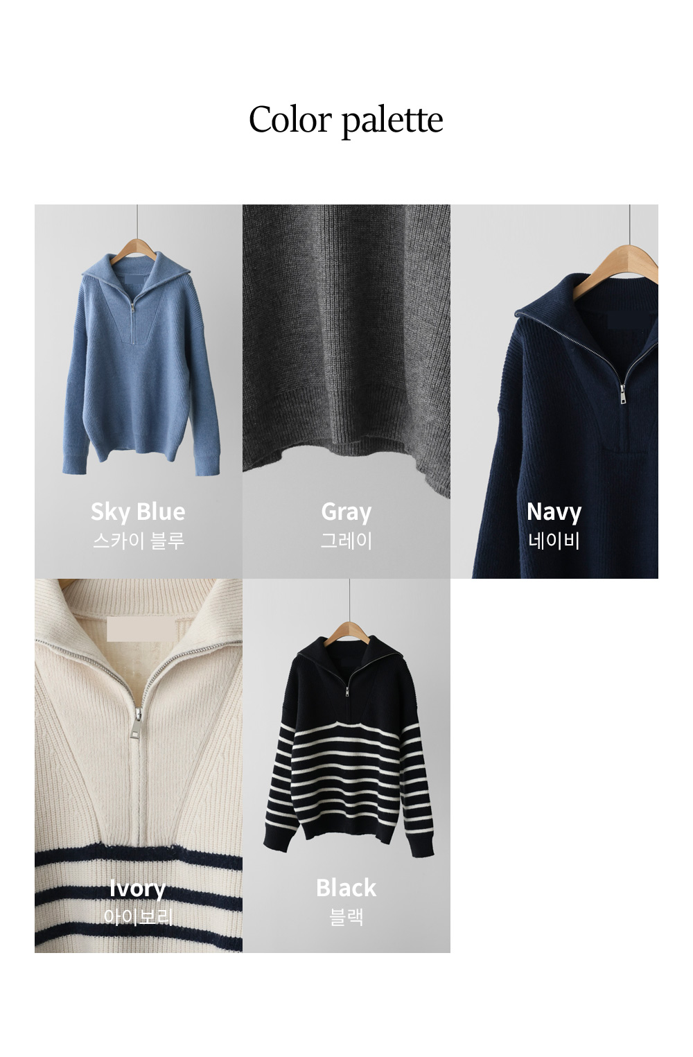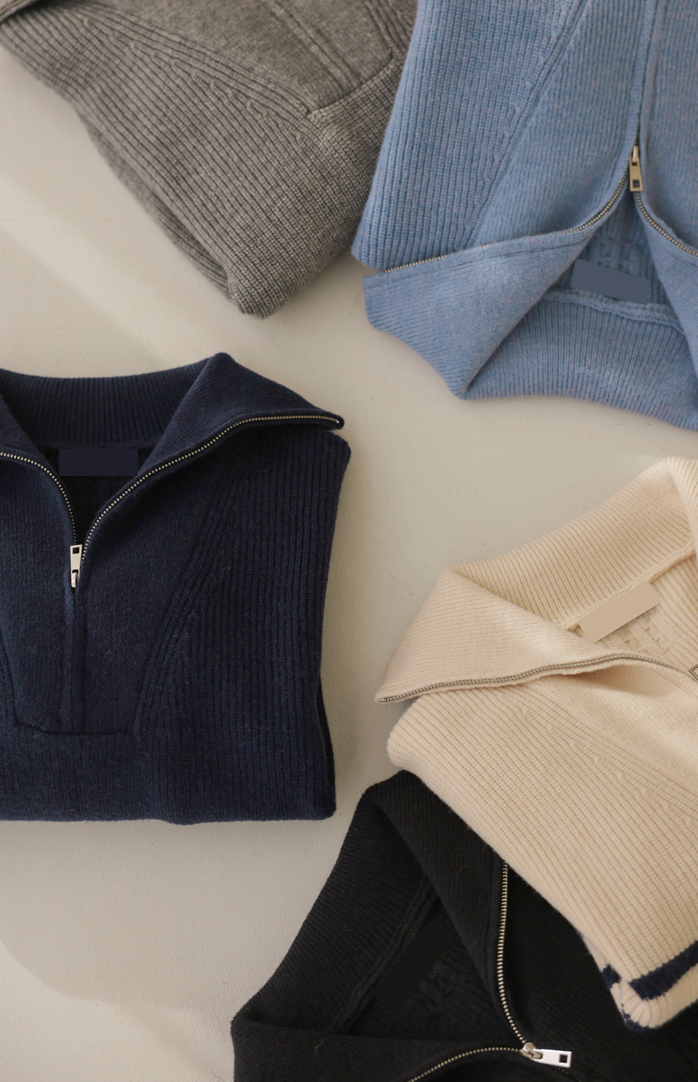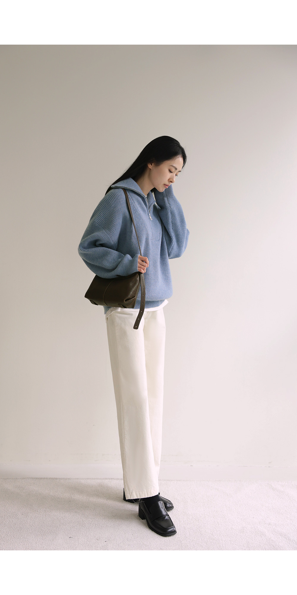 보이델 반집업 니트 _ 스카이블루,아이보리