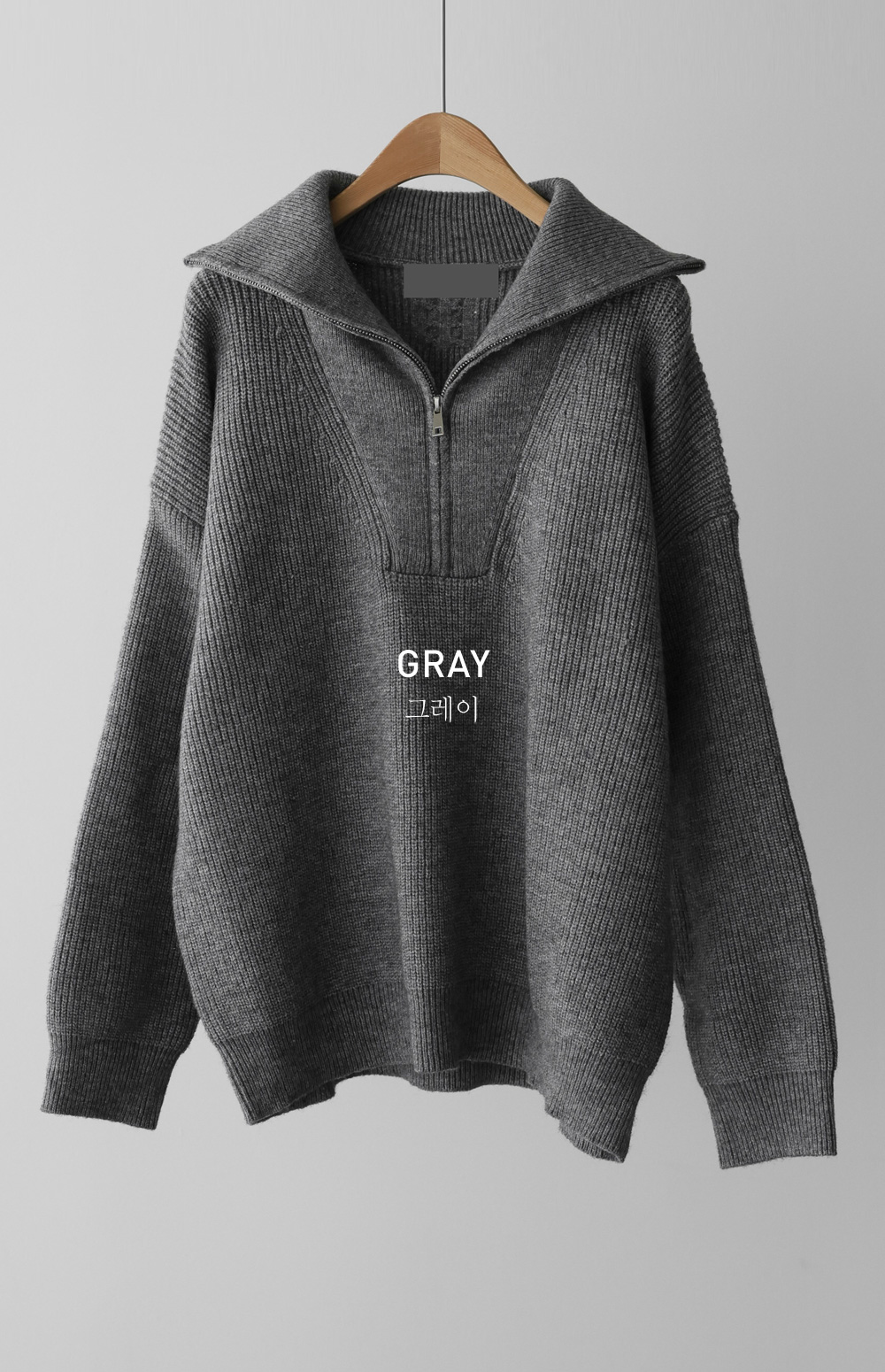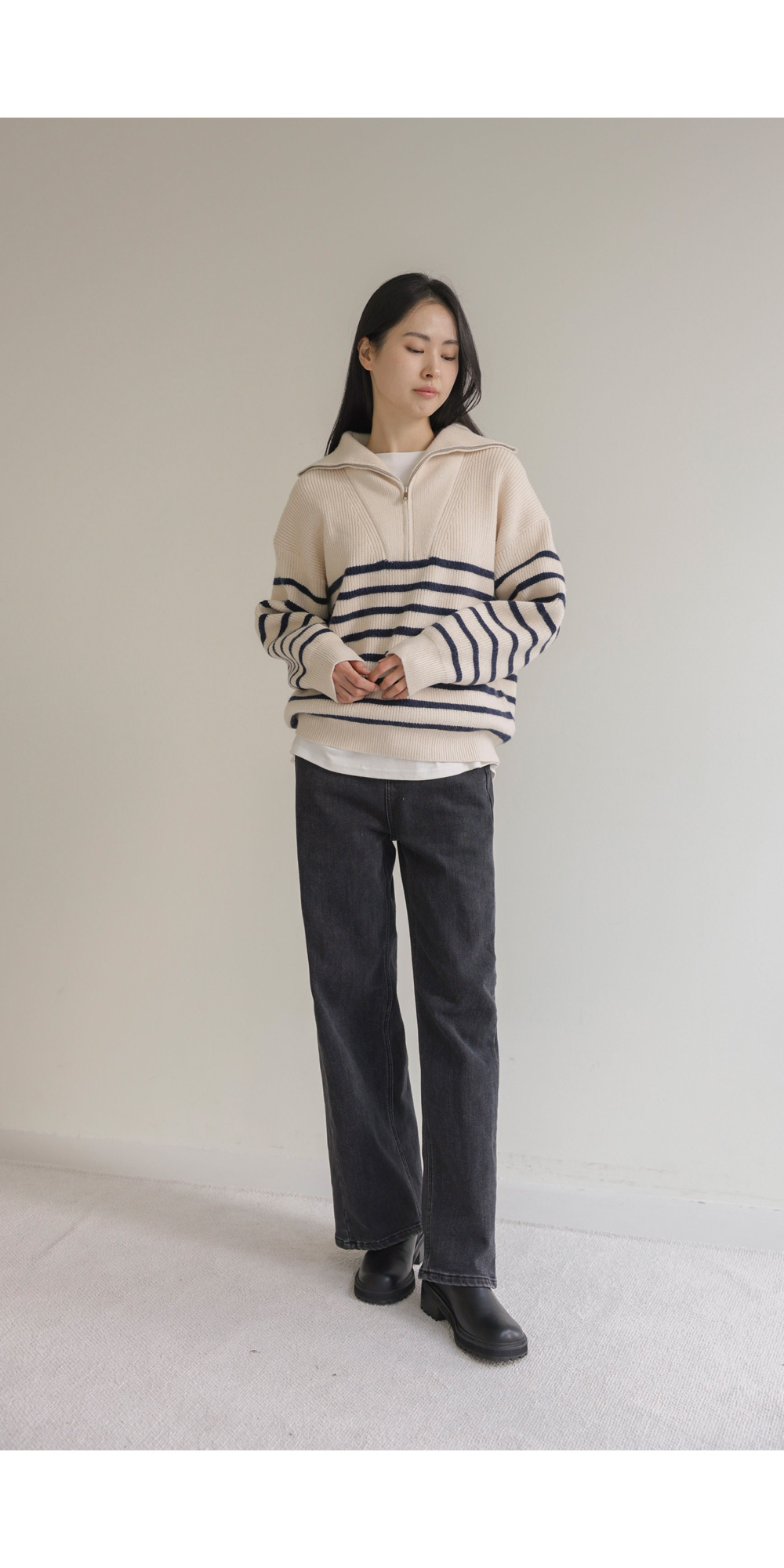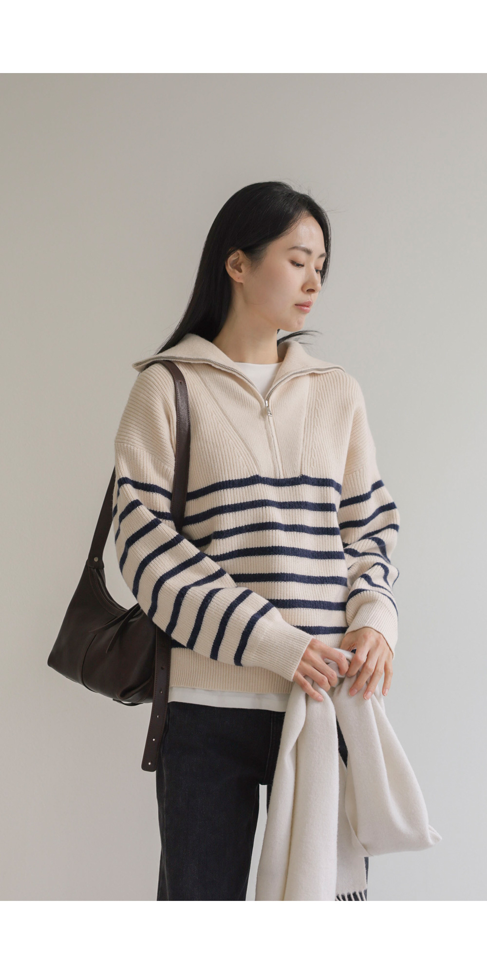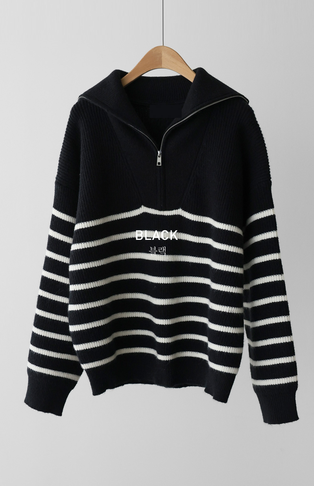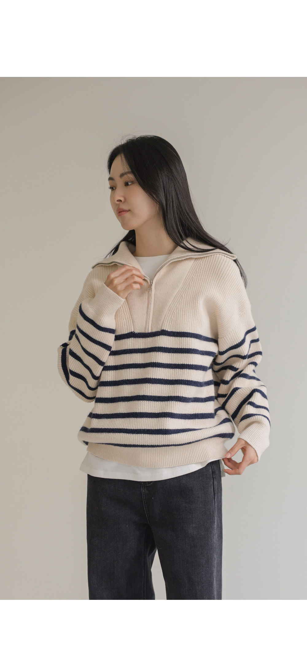보이델 반집업 니트 _ 스카이블루,아이보리