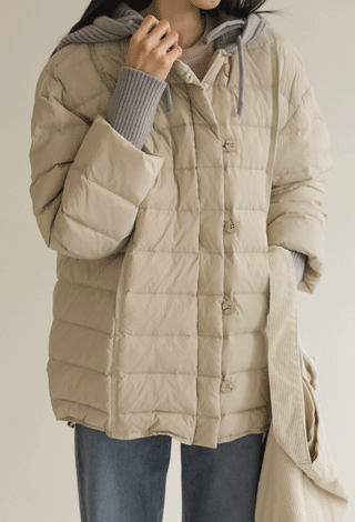 그리본 후드 패딩점퍼 _ 브라운
