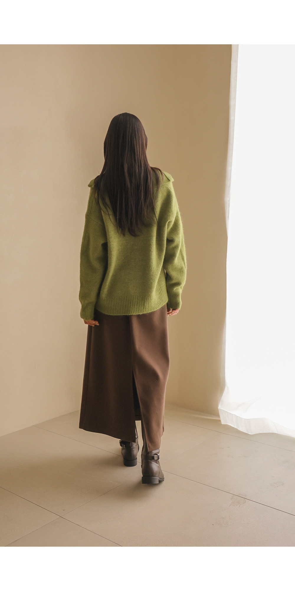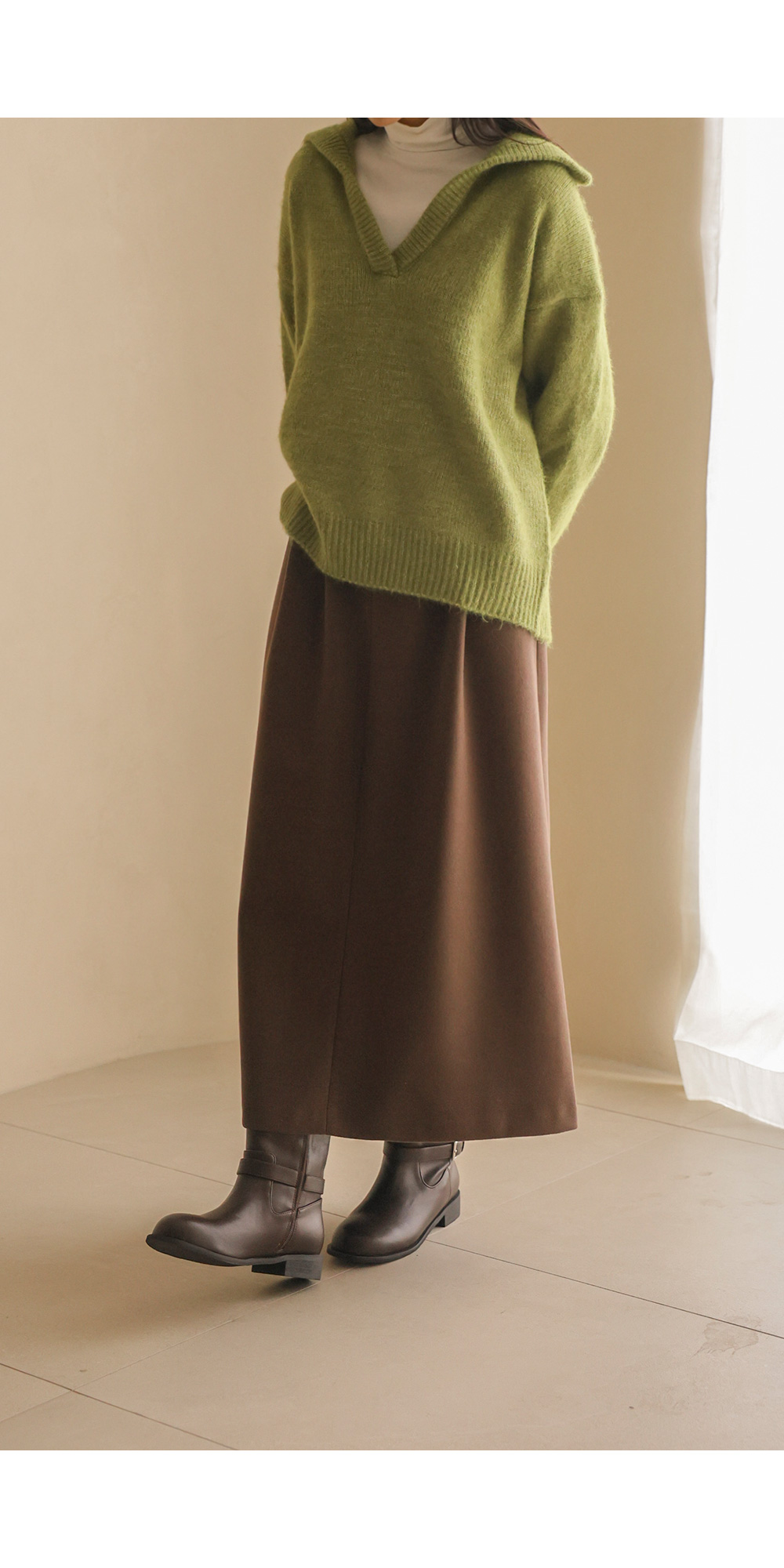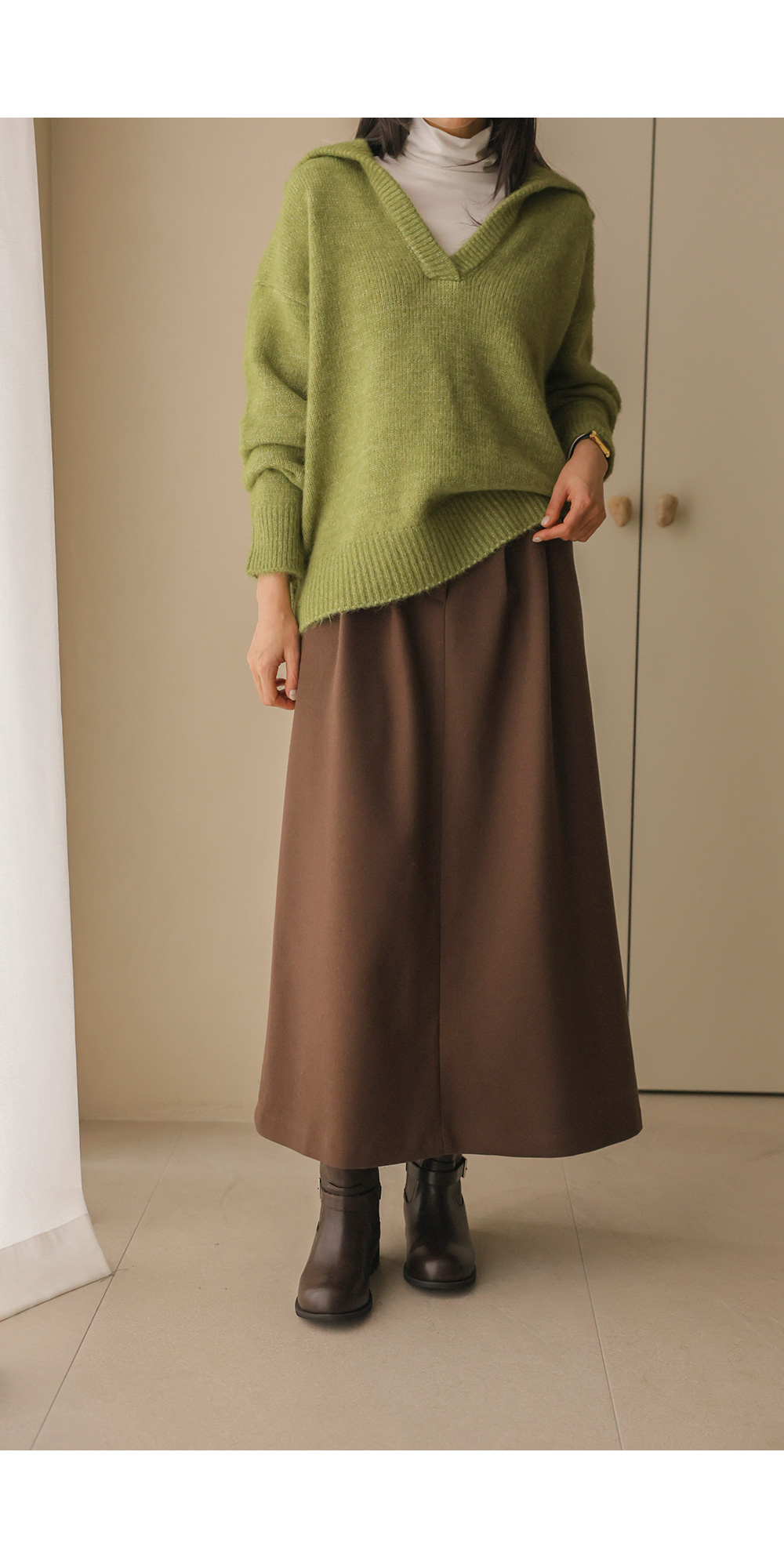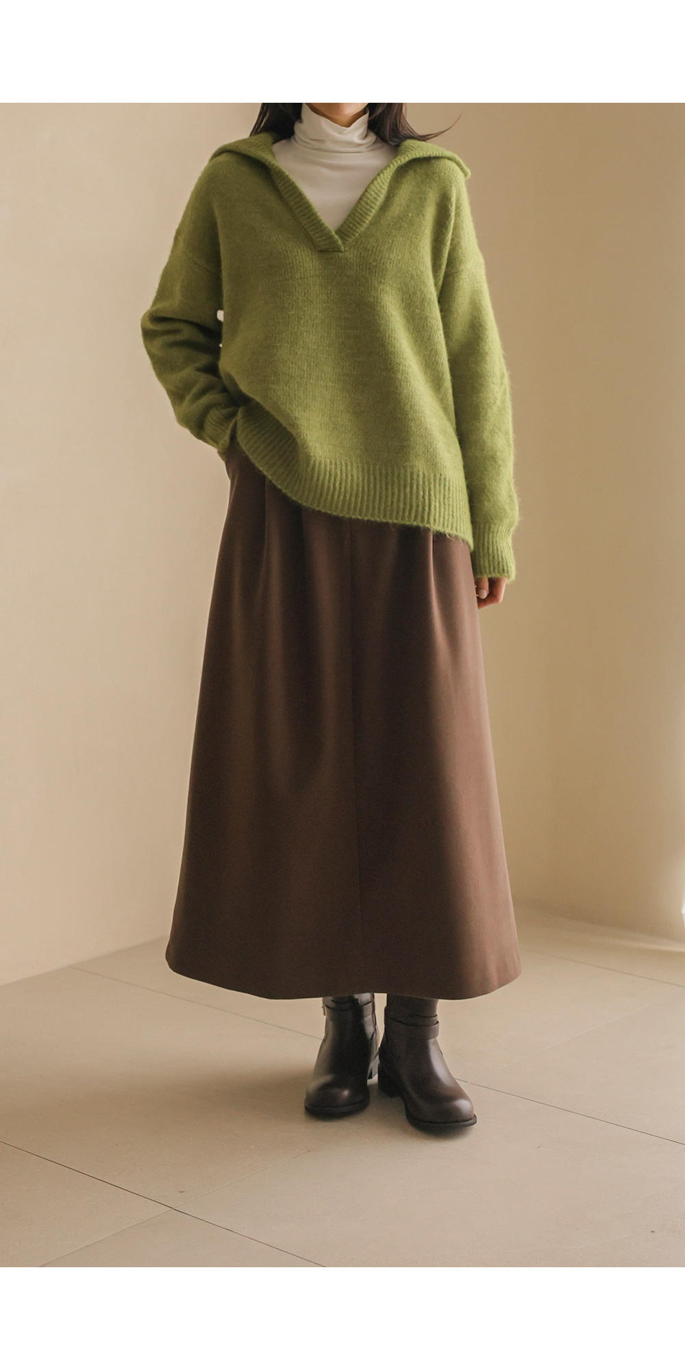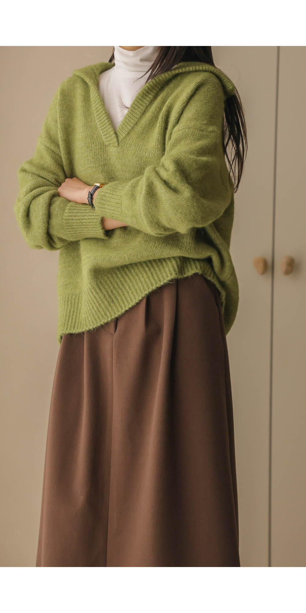 비세온 오픈카라 니트 _ 그린