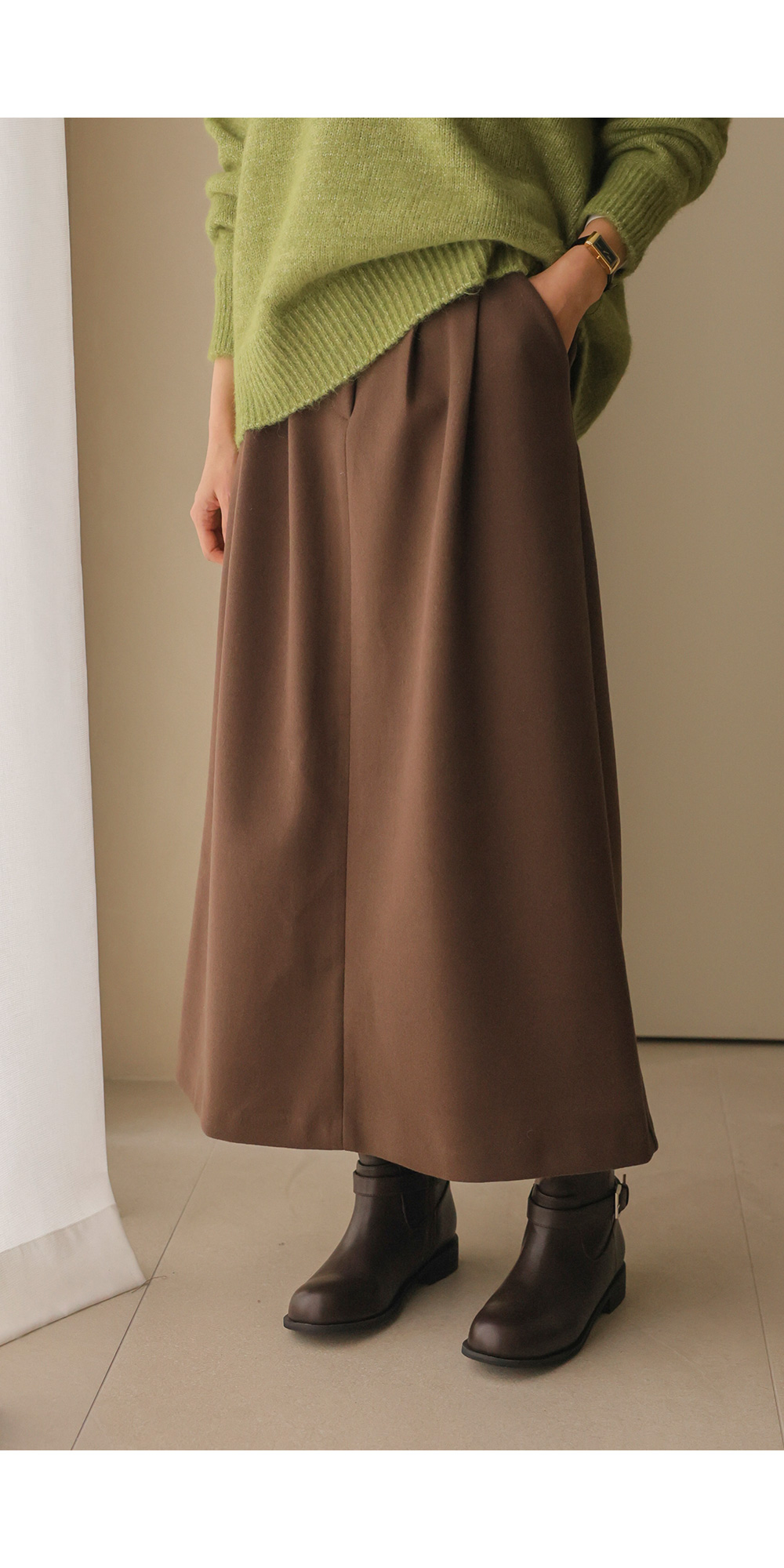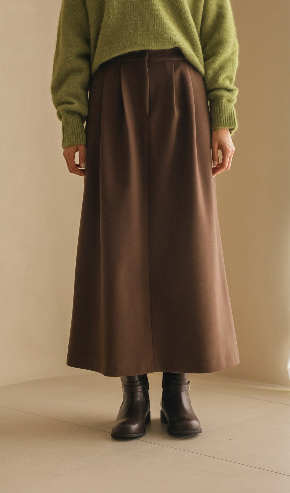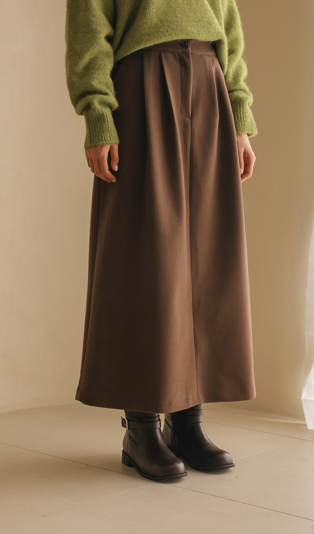 타비안 핀턱 스커트 _ 브라운
