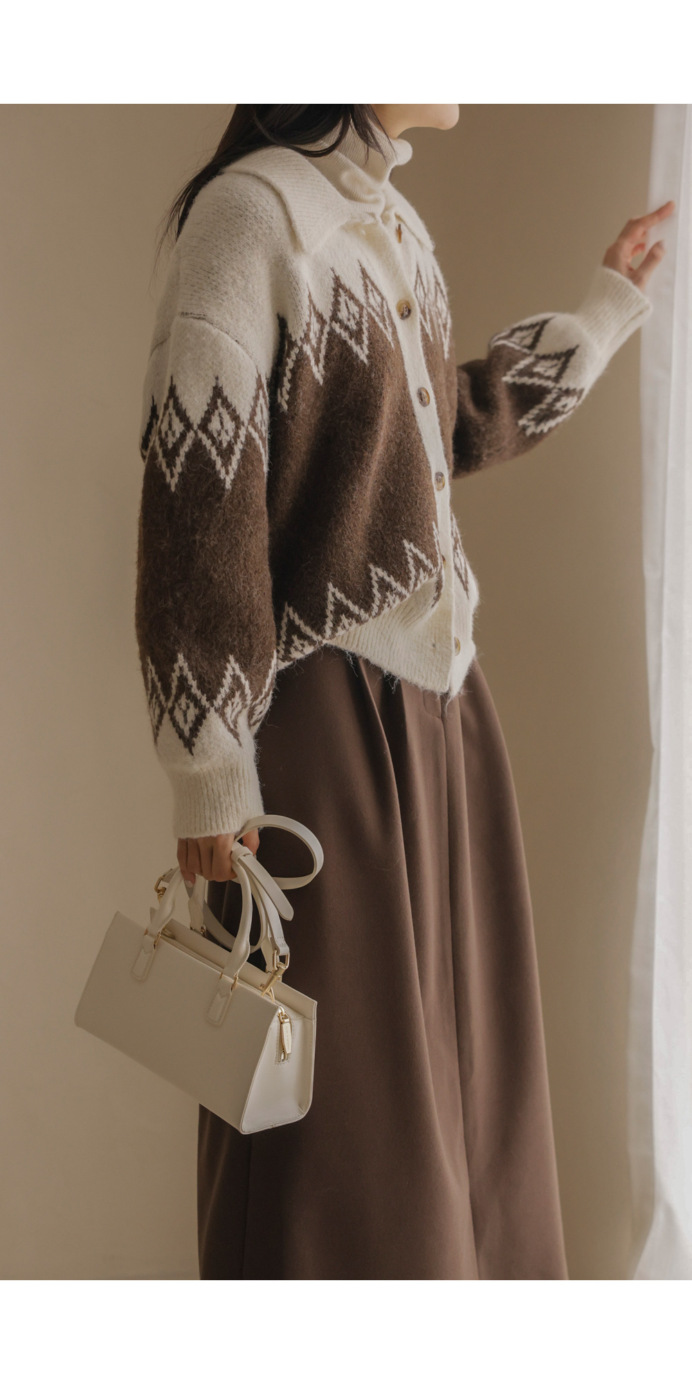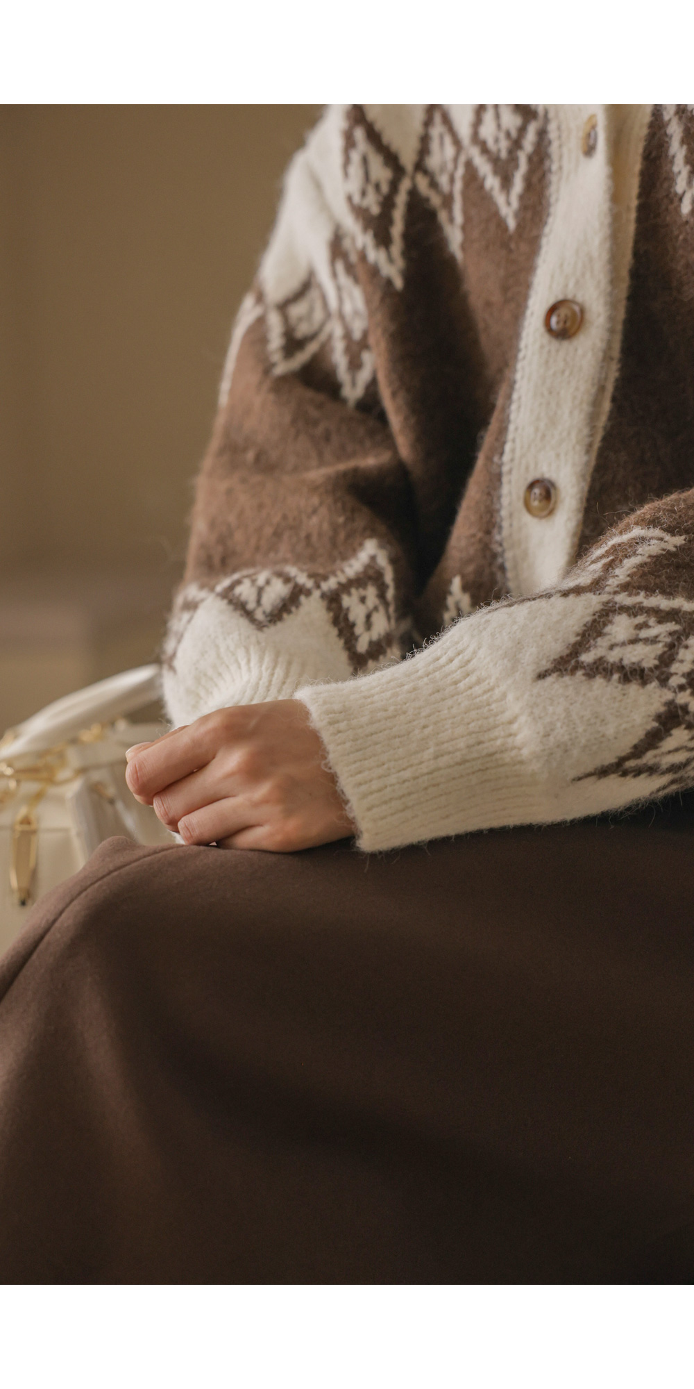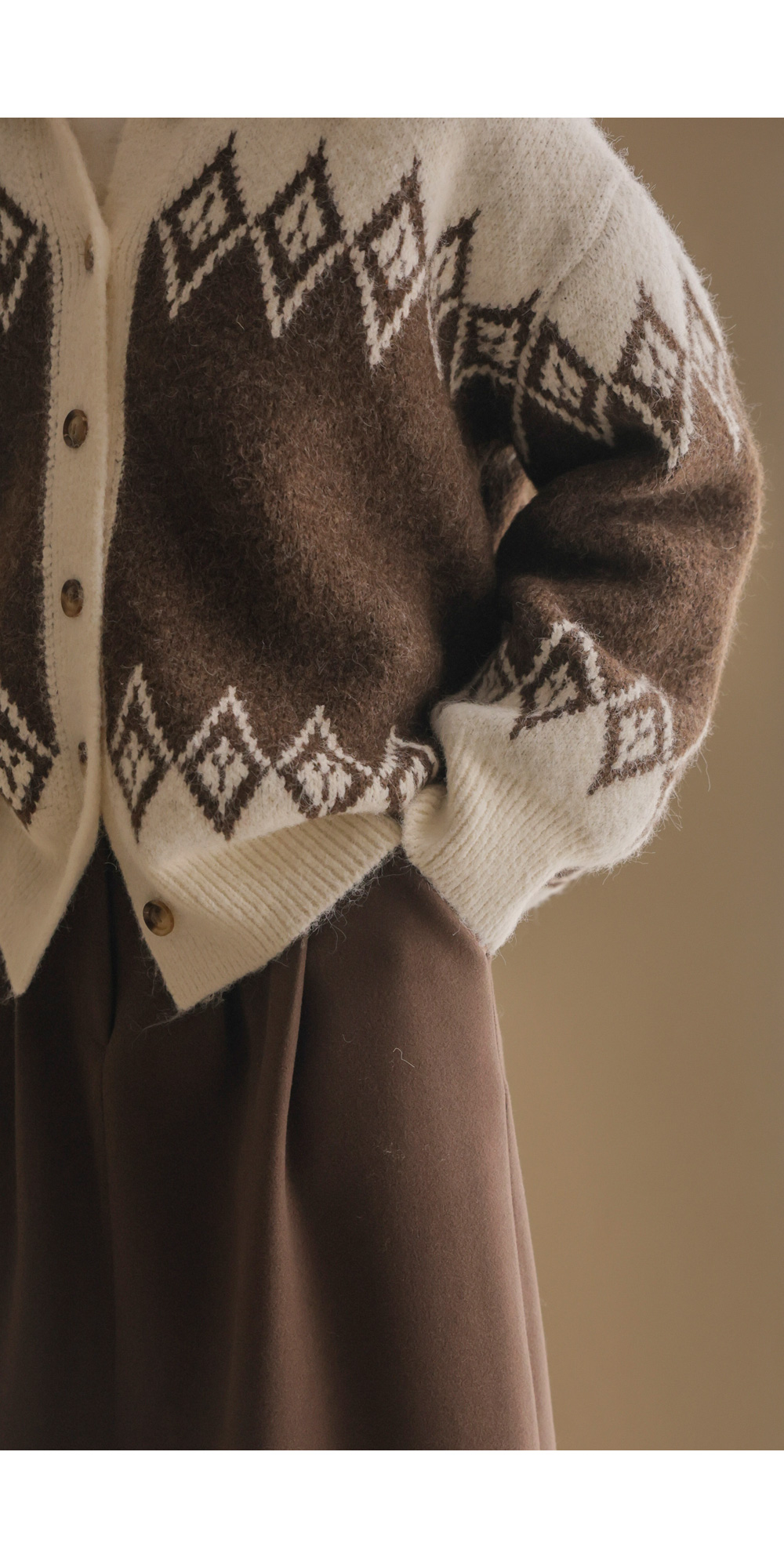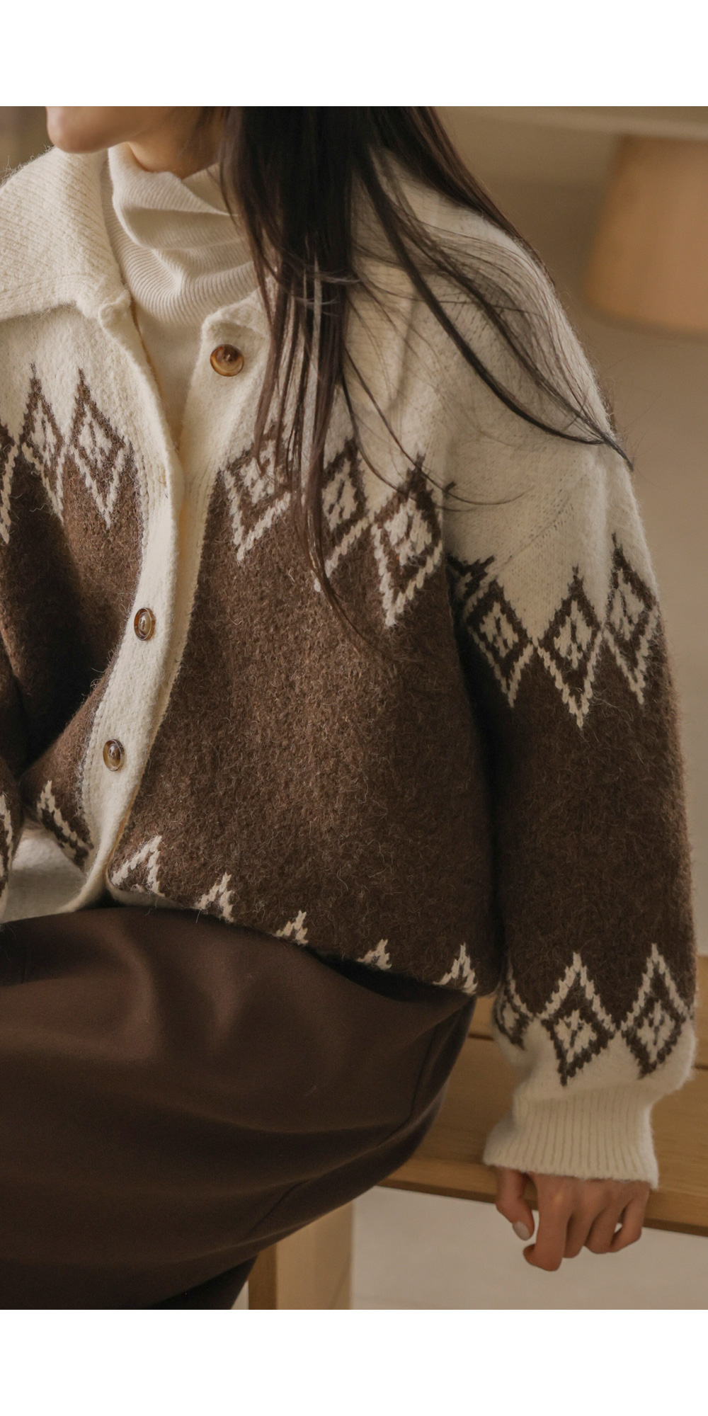 테바스 배색 가디건 _ 브라운