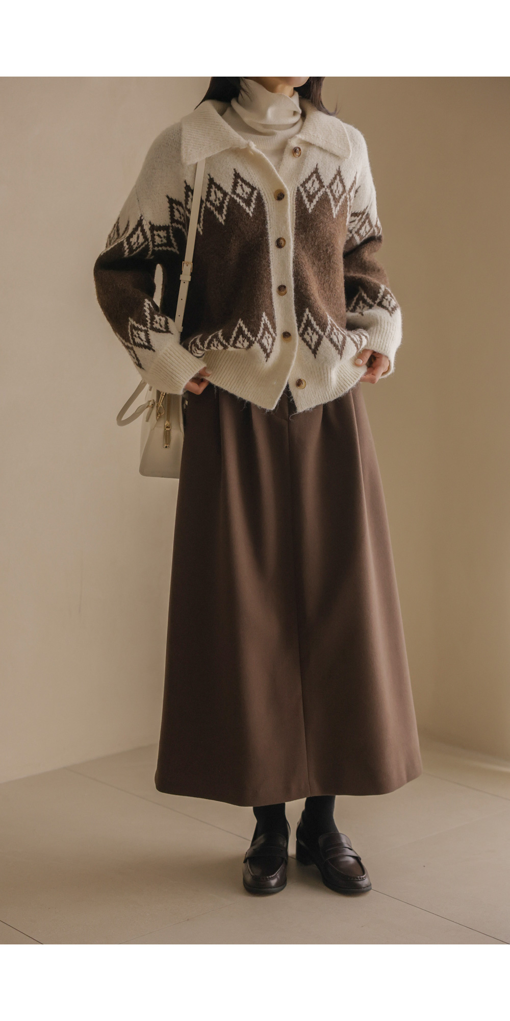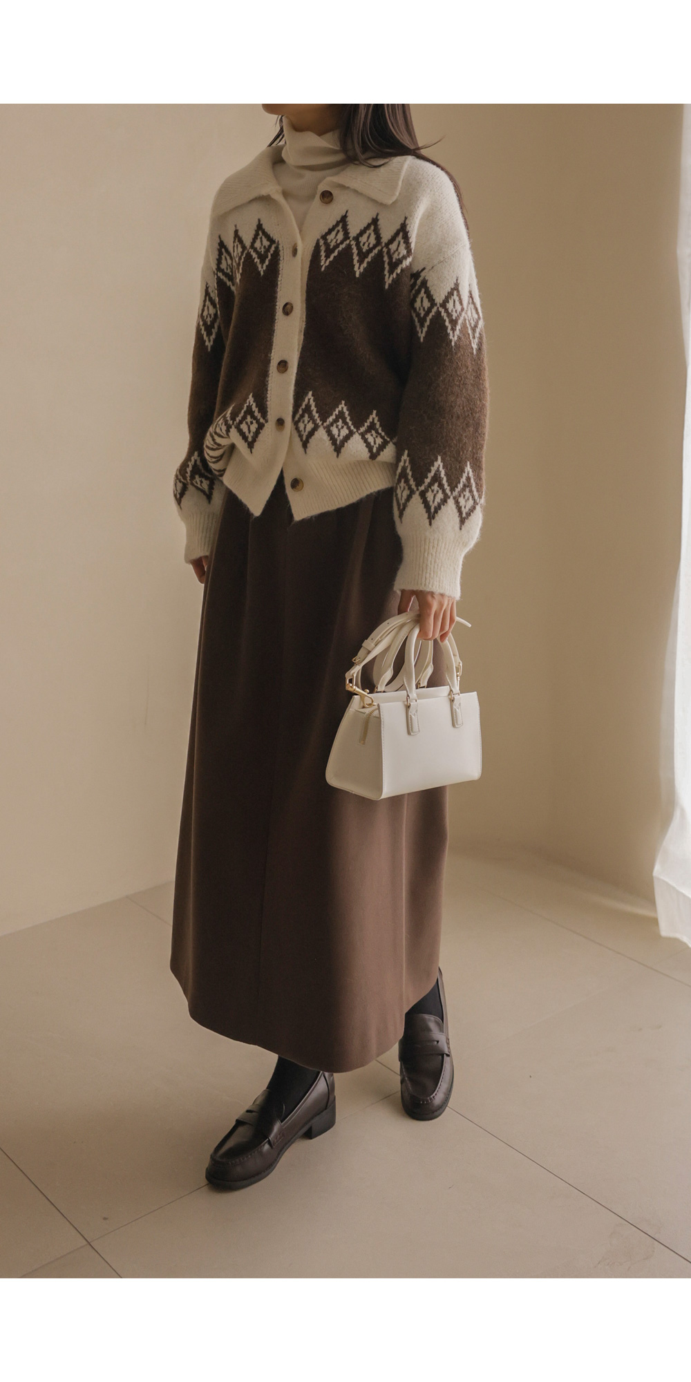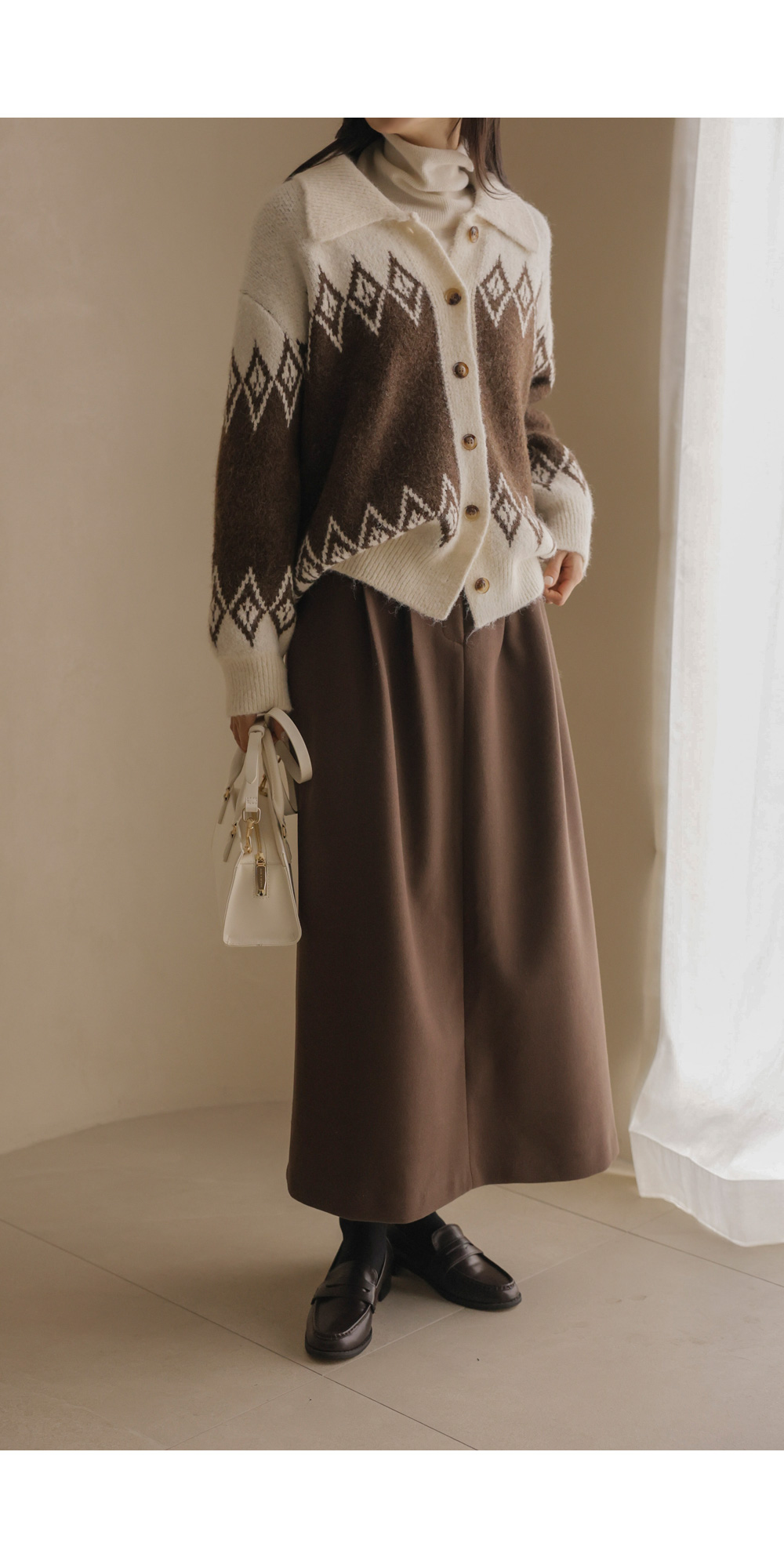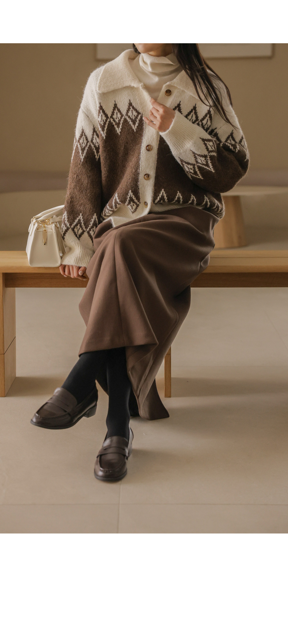 테바스 배색 가디건 _ 브라운