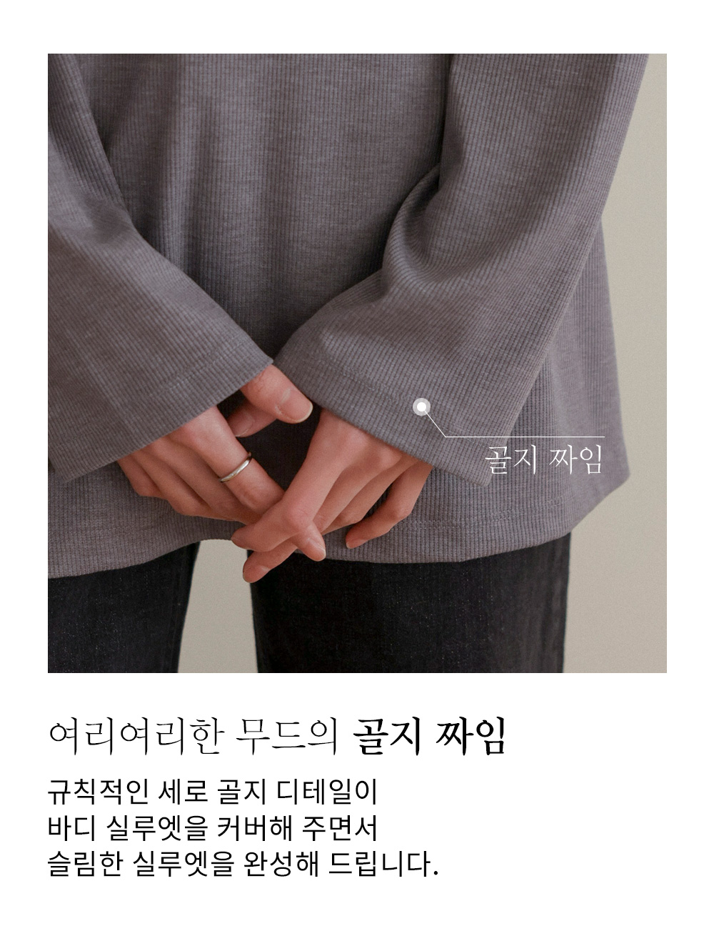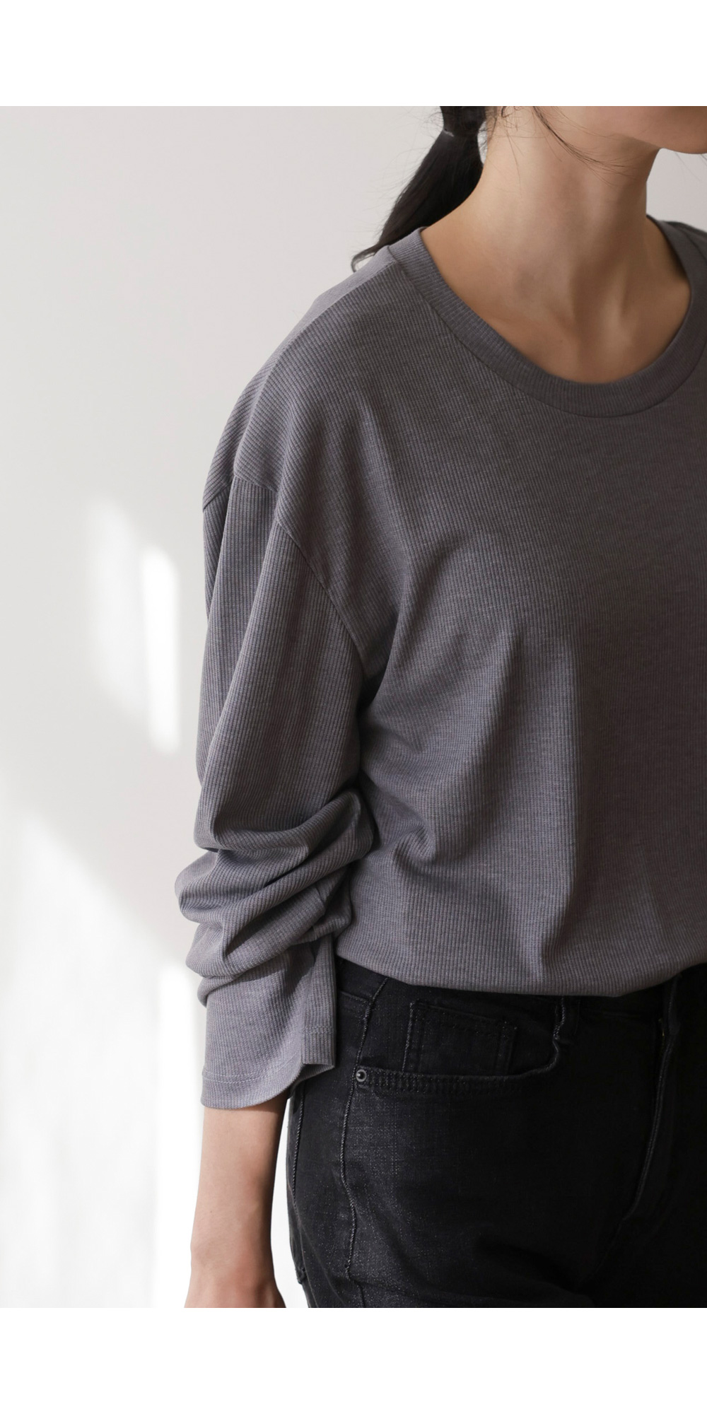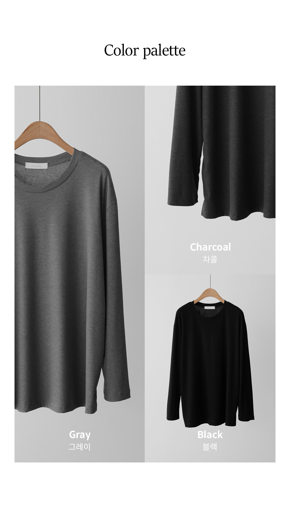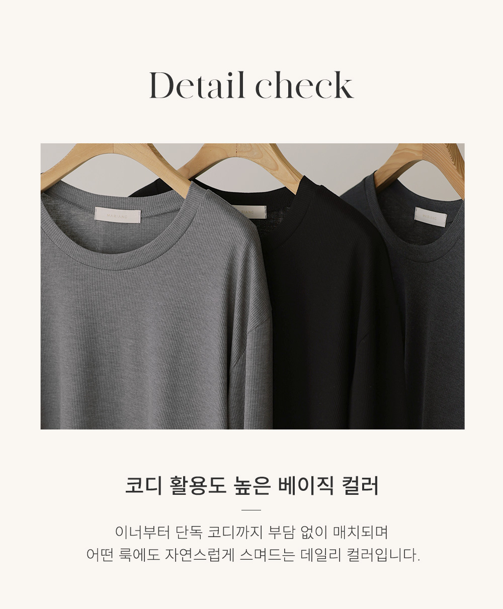 여리핏 골지 티셔츠_ 그레이,블랙,차콜