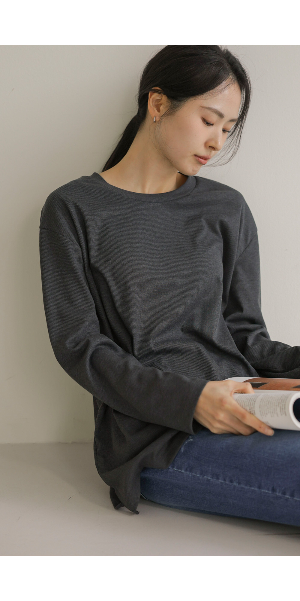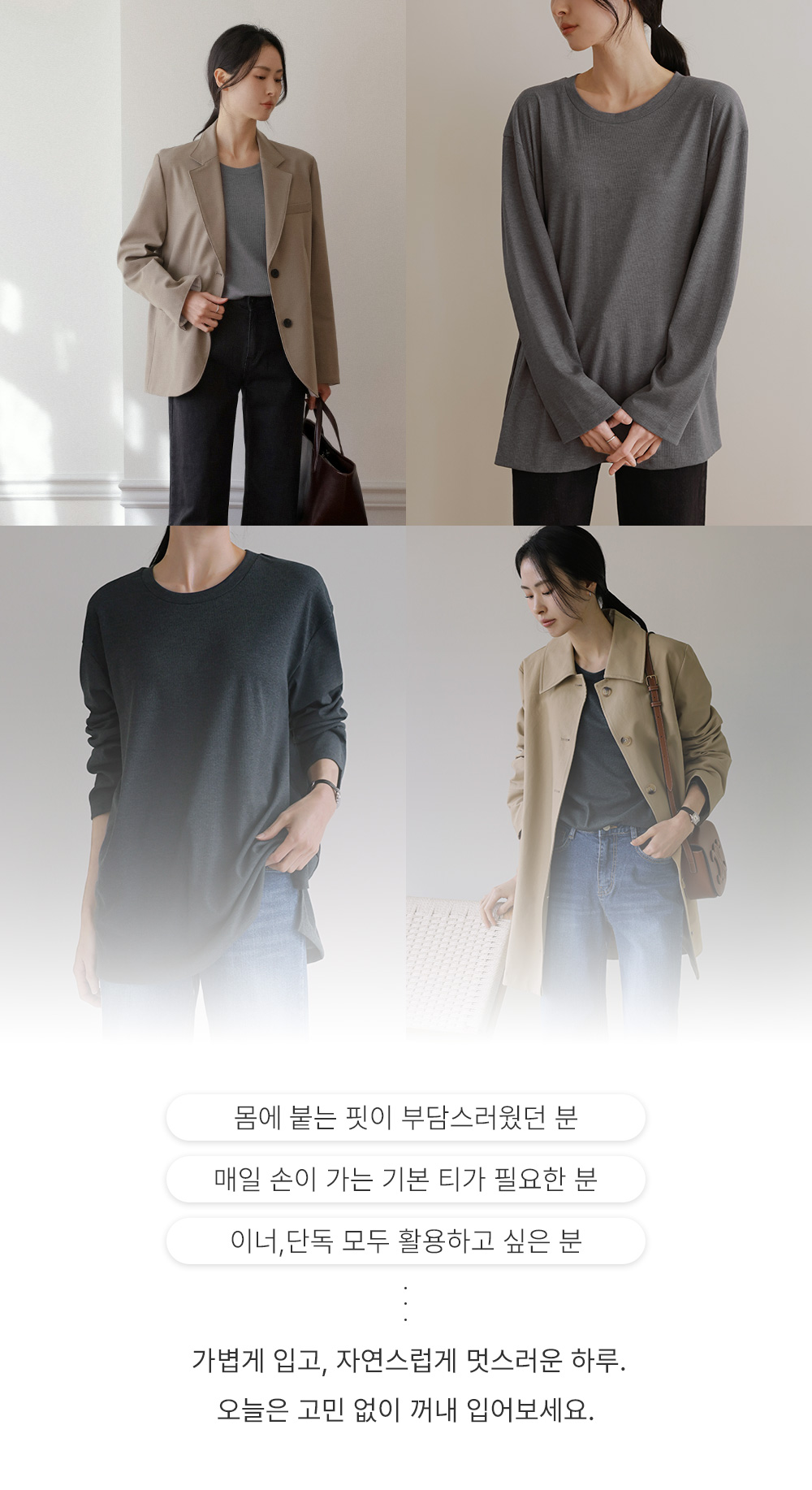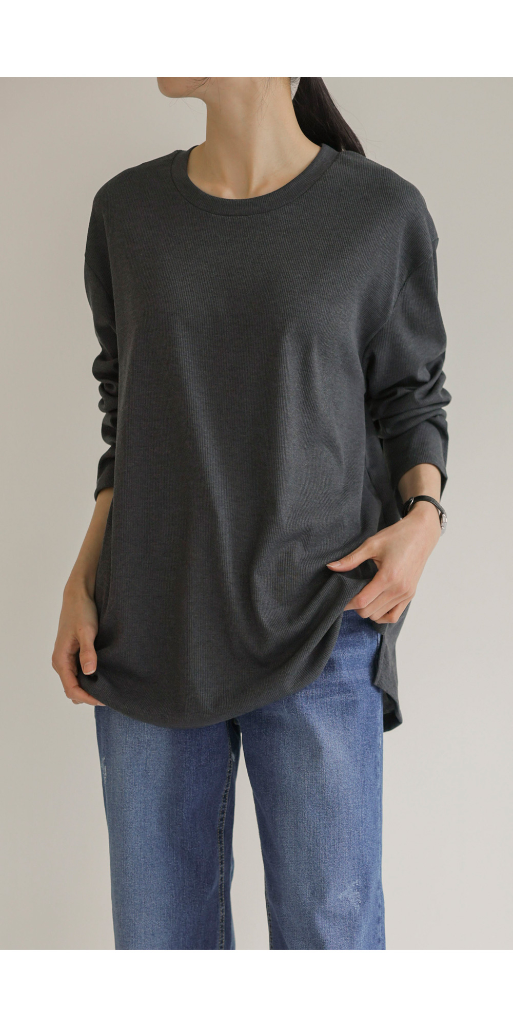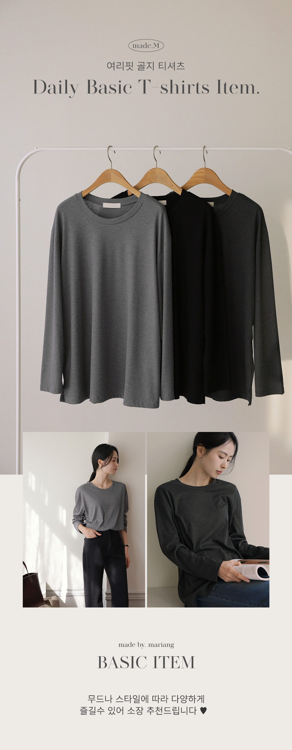 여리핏 골지 티셔츠_ 그레이,블랙,차콜