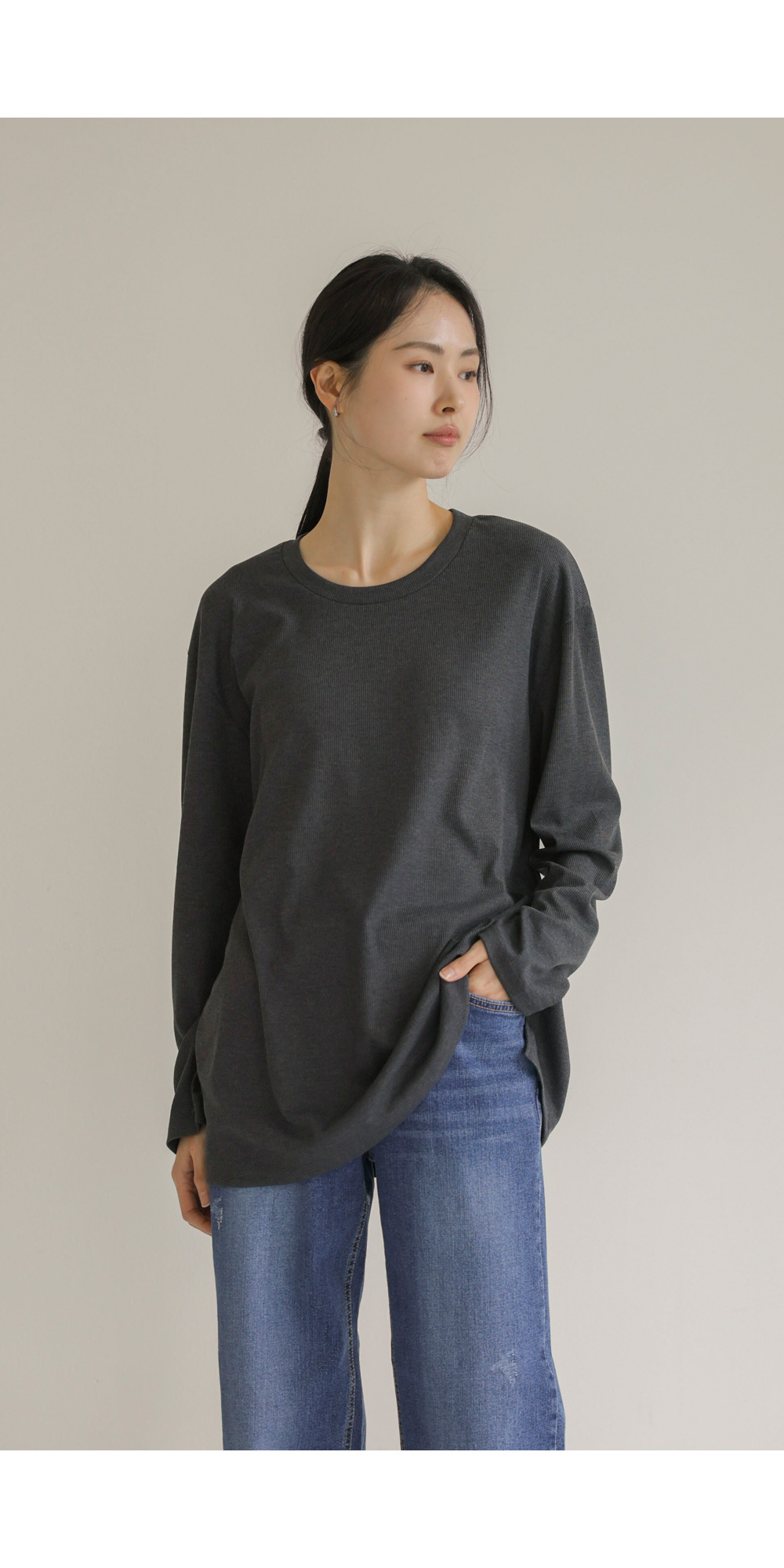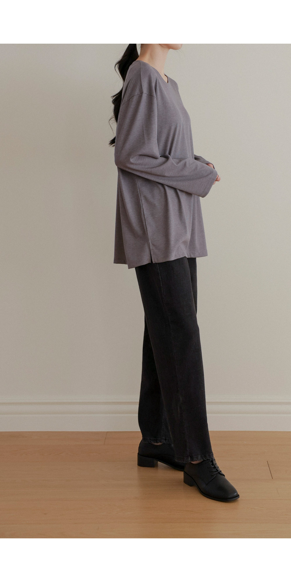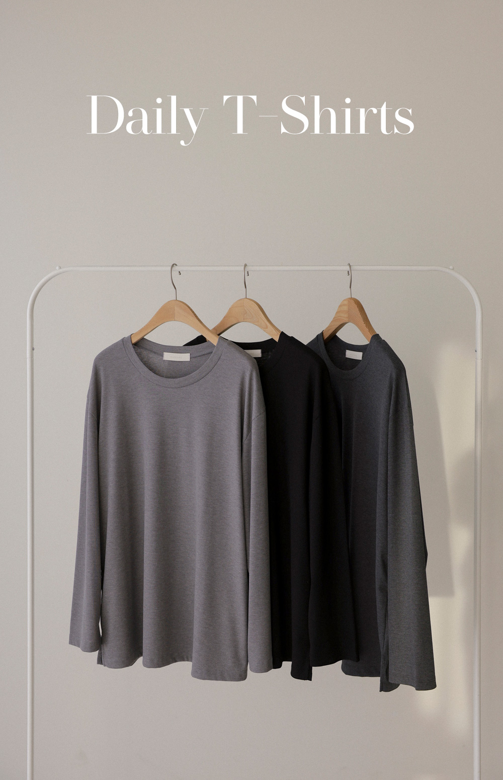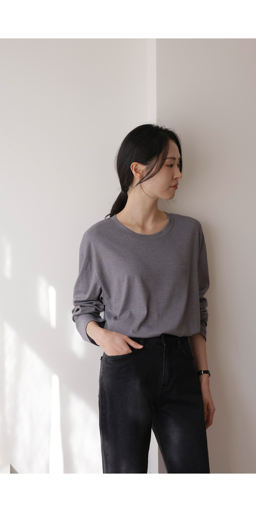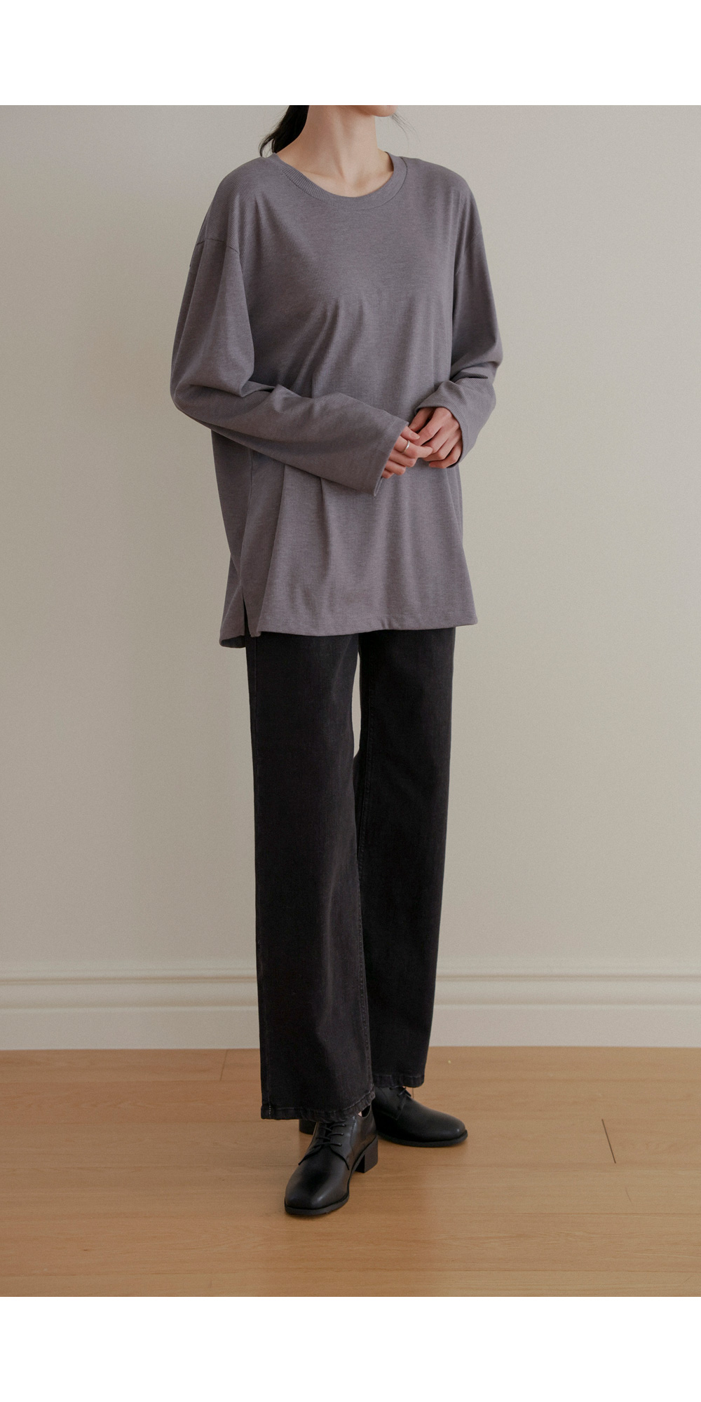 여리핏 골지 티셔츠_ 그레이,블랙,차콜