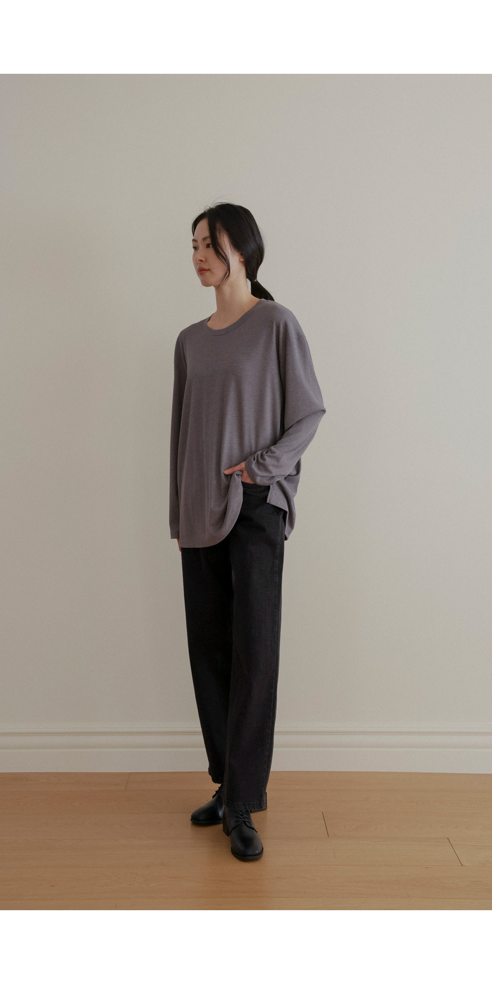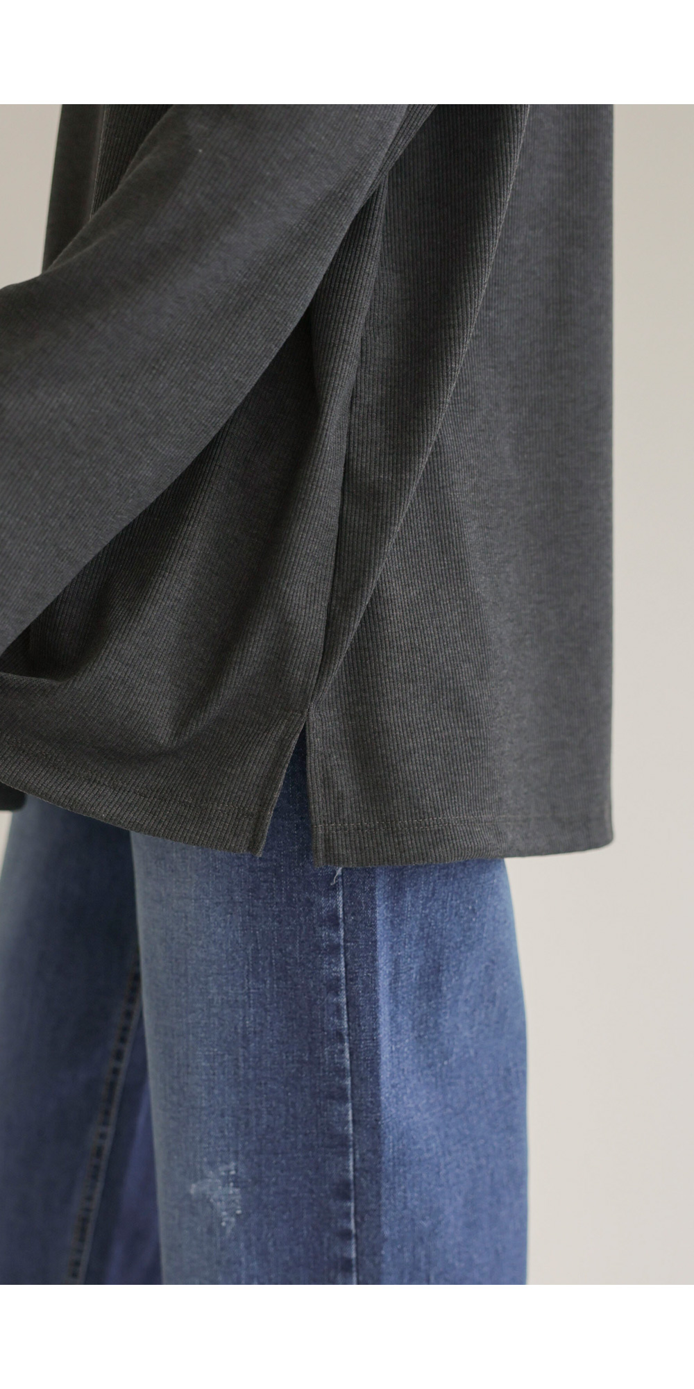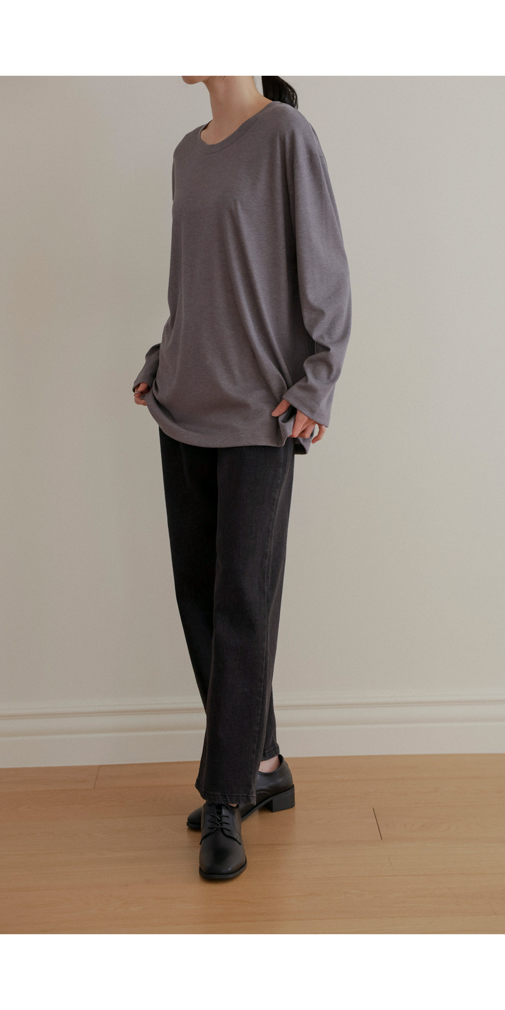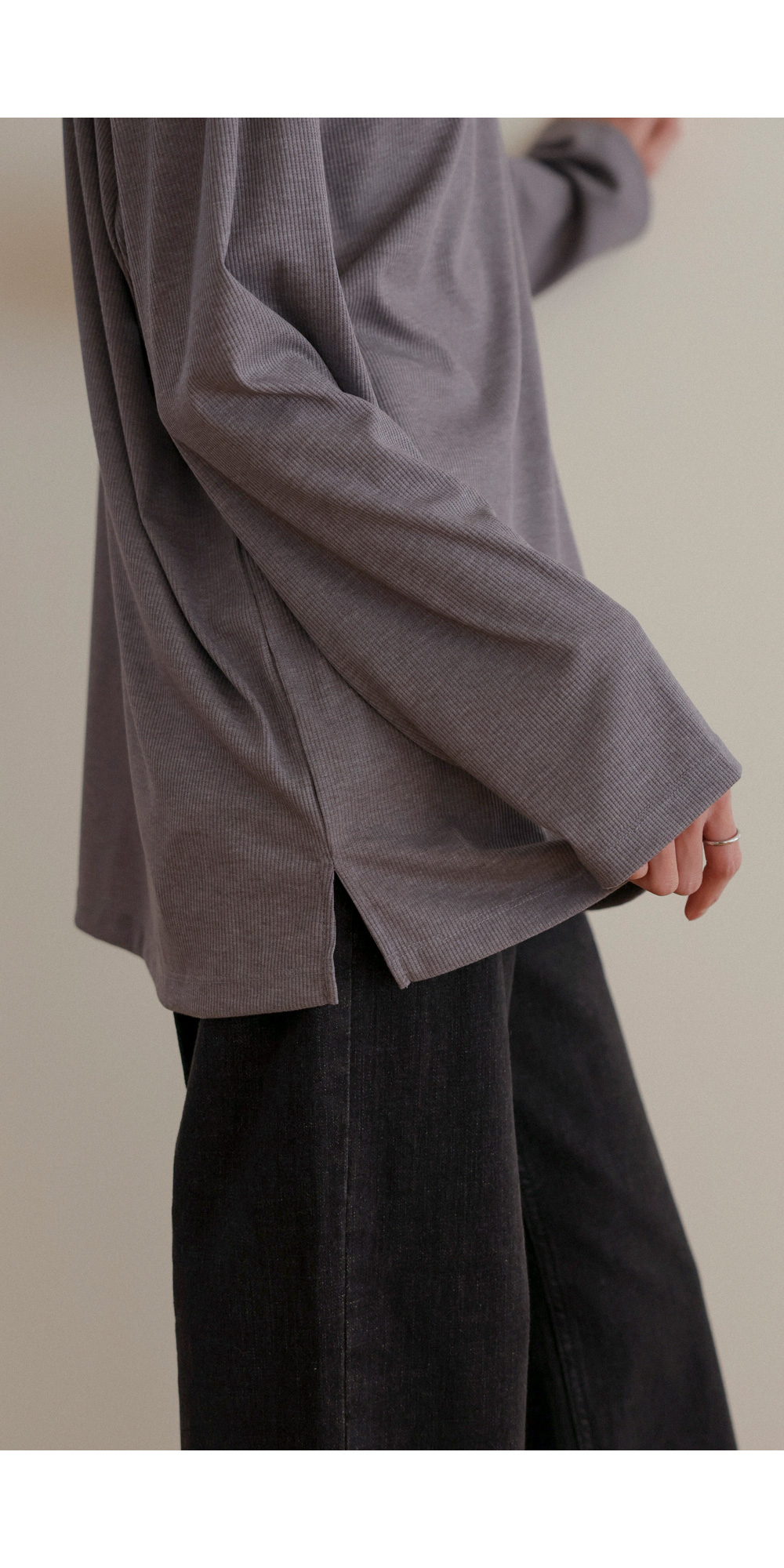 여리핏 골지 티셔츠_ 그레이,블랙,차콜