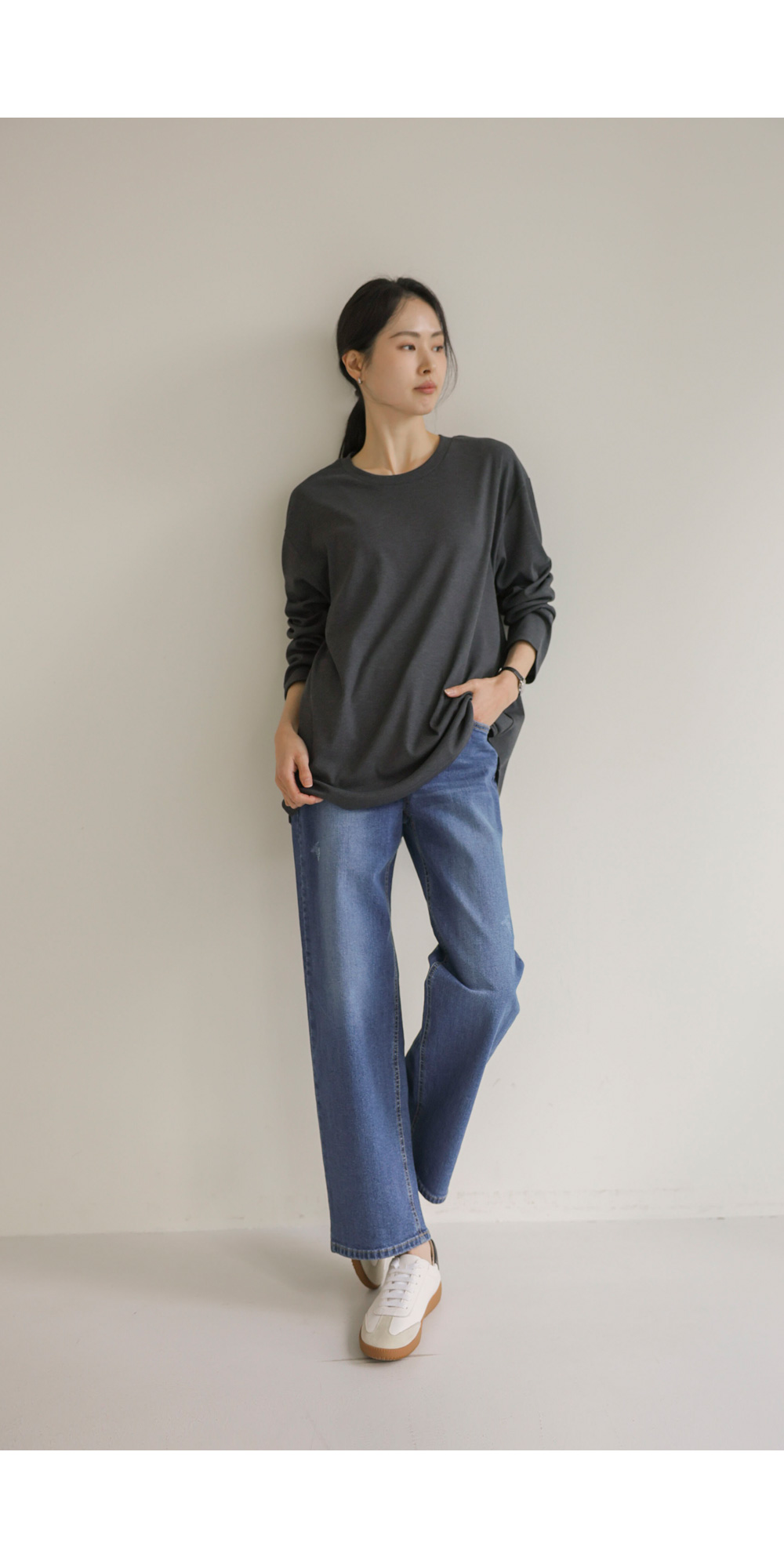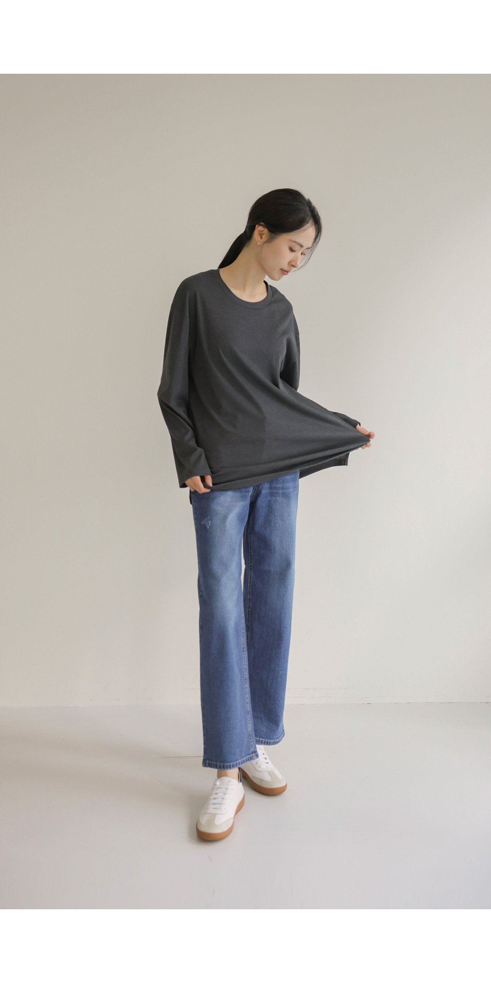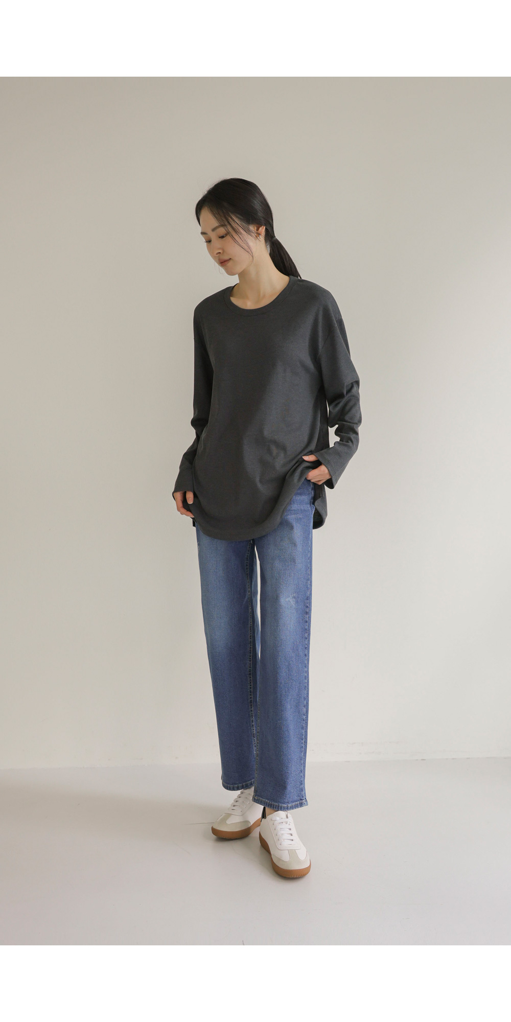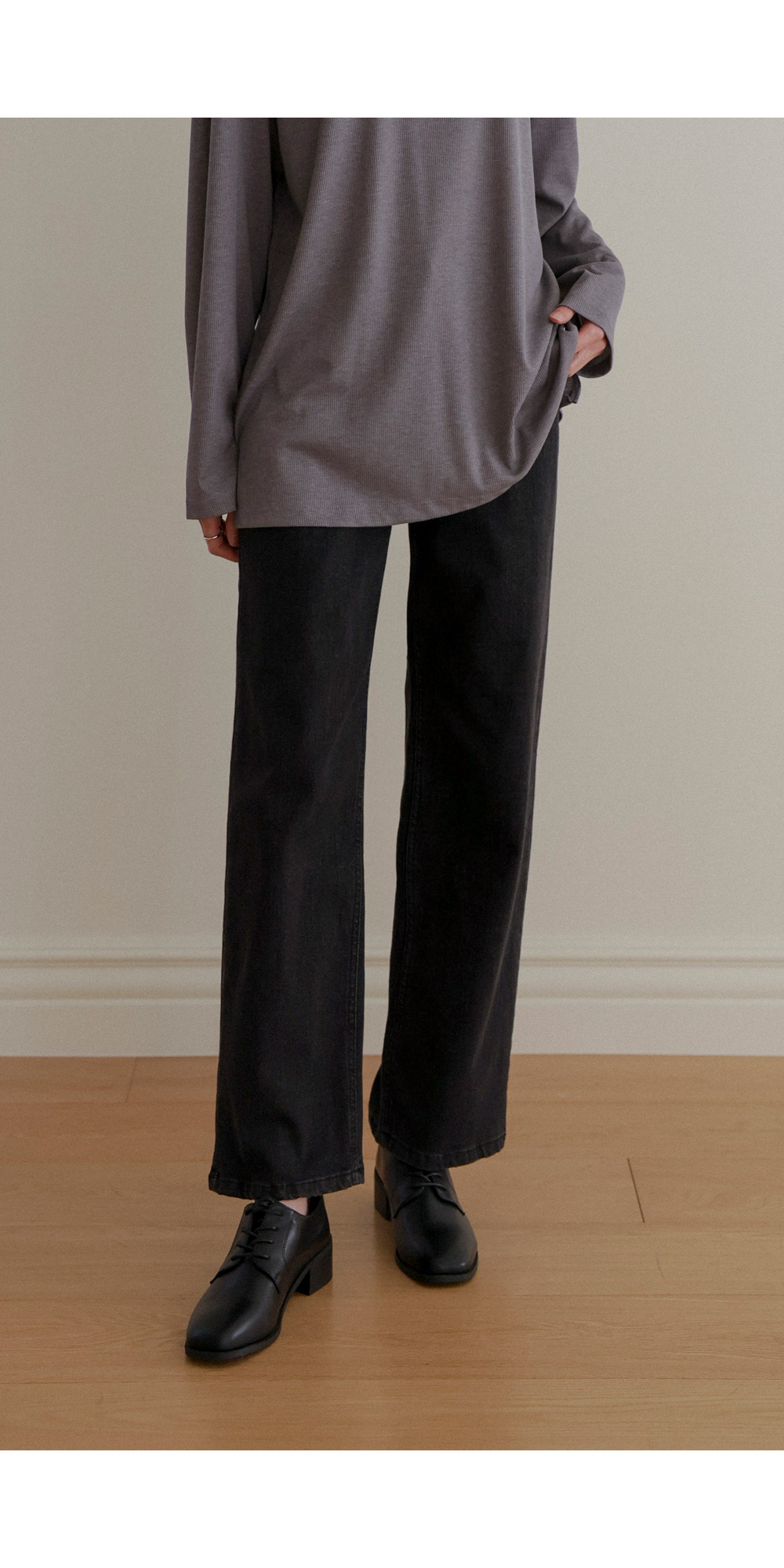 여리핏 골지 티셔츠_ 그레이,블랙,차콜
