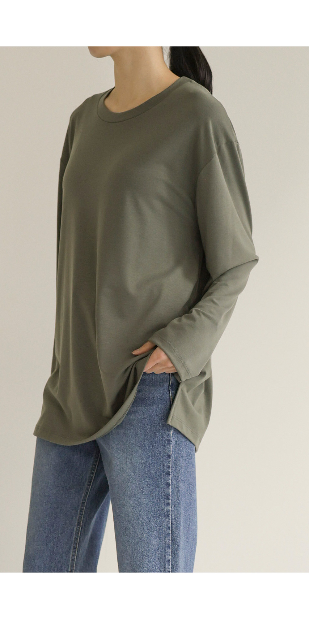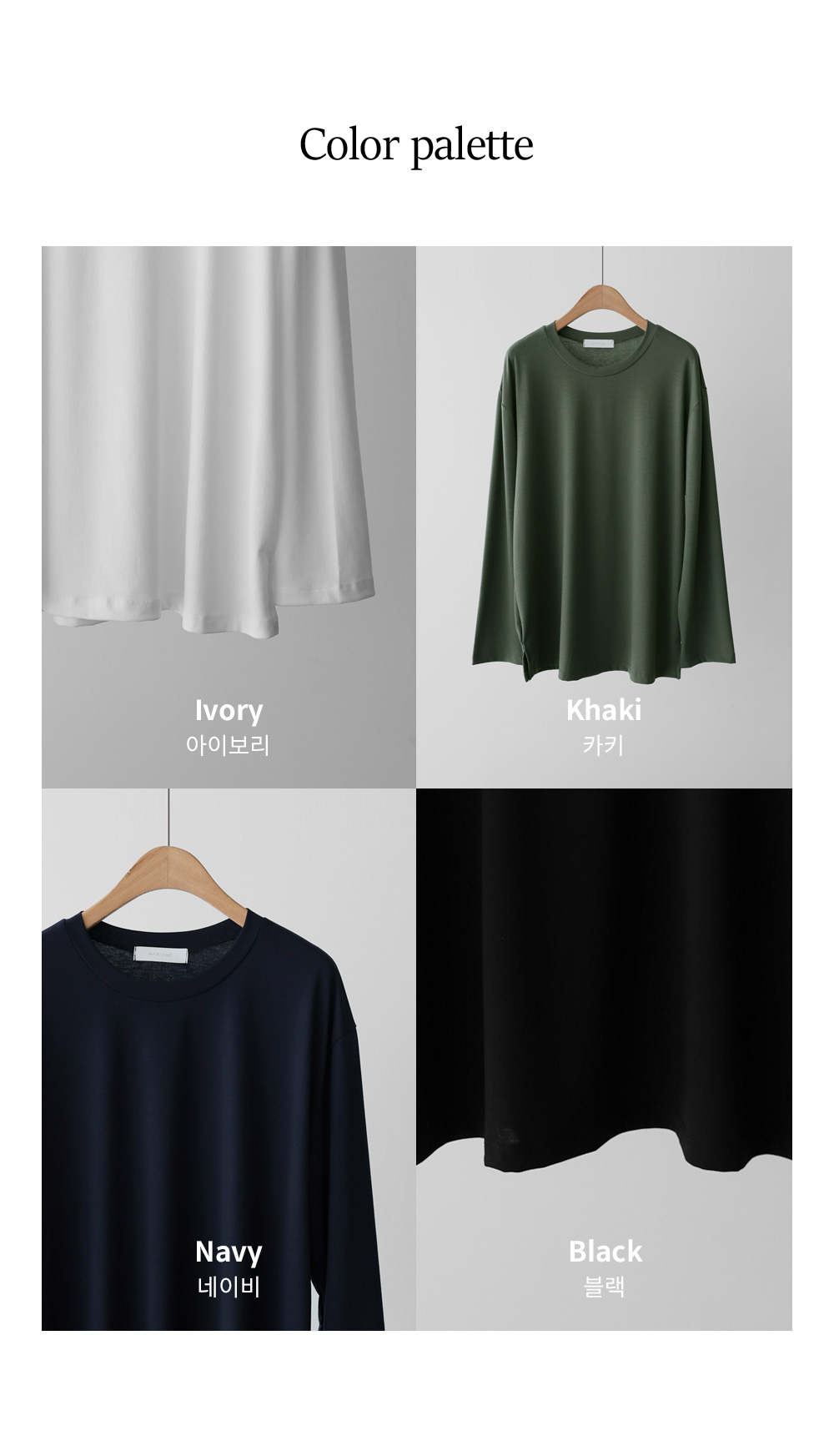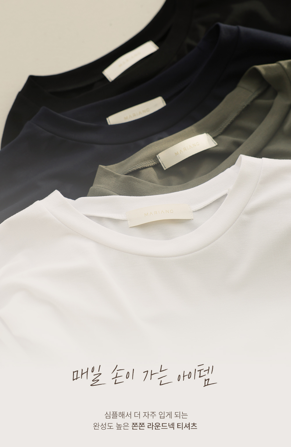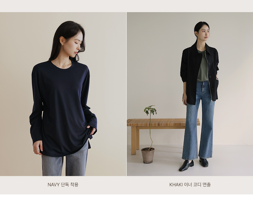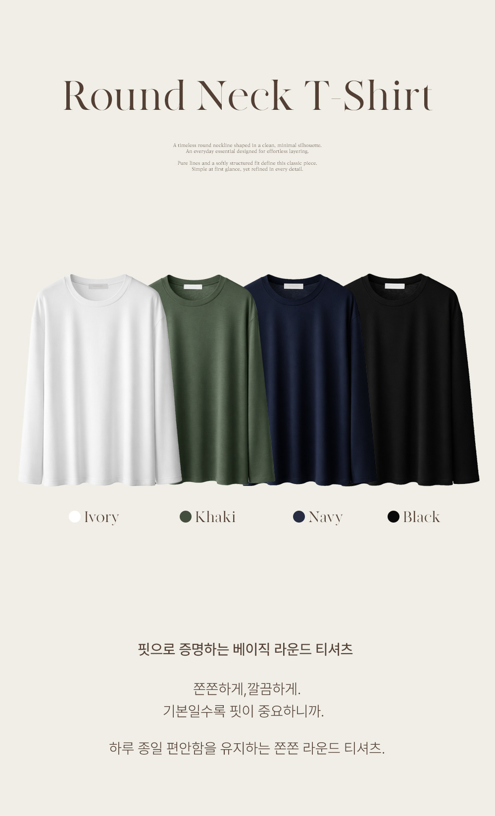 쫀쫀 라운드 티셔츠 _ 네이비,블랙,카키,아이보리