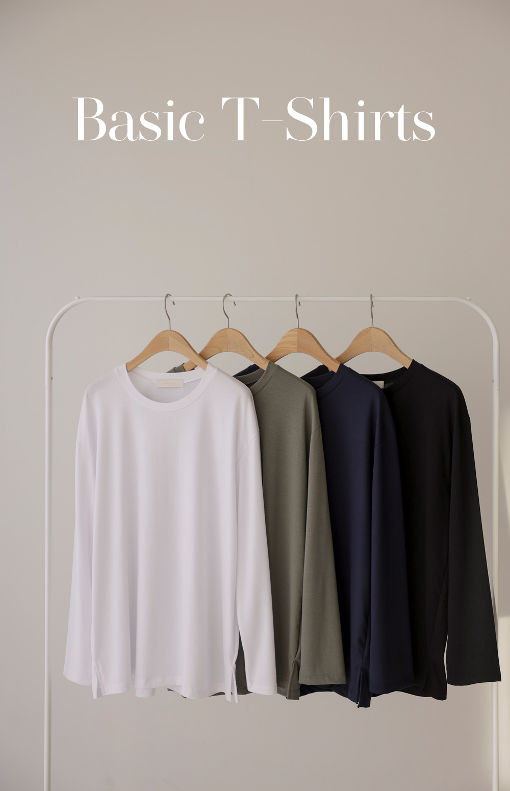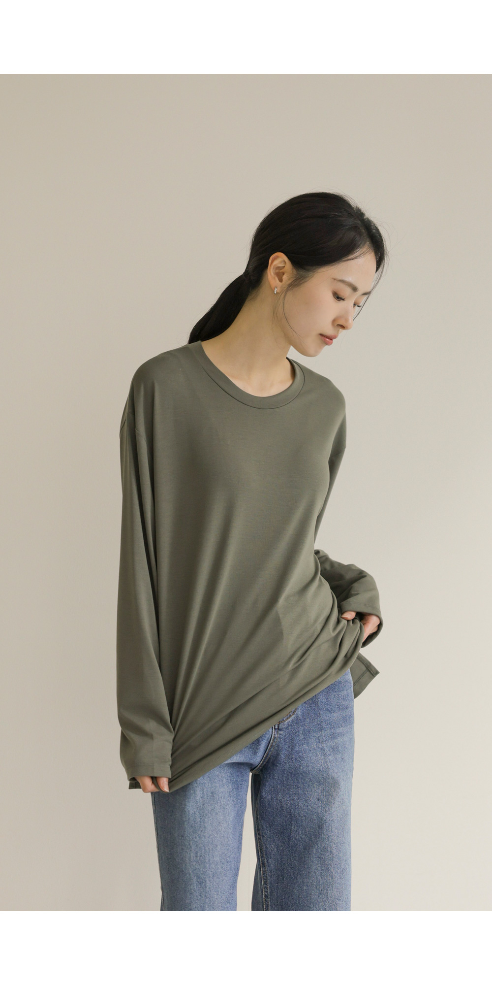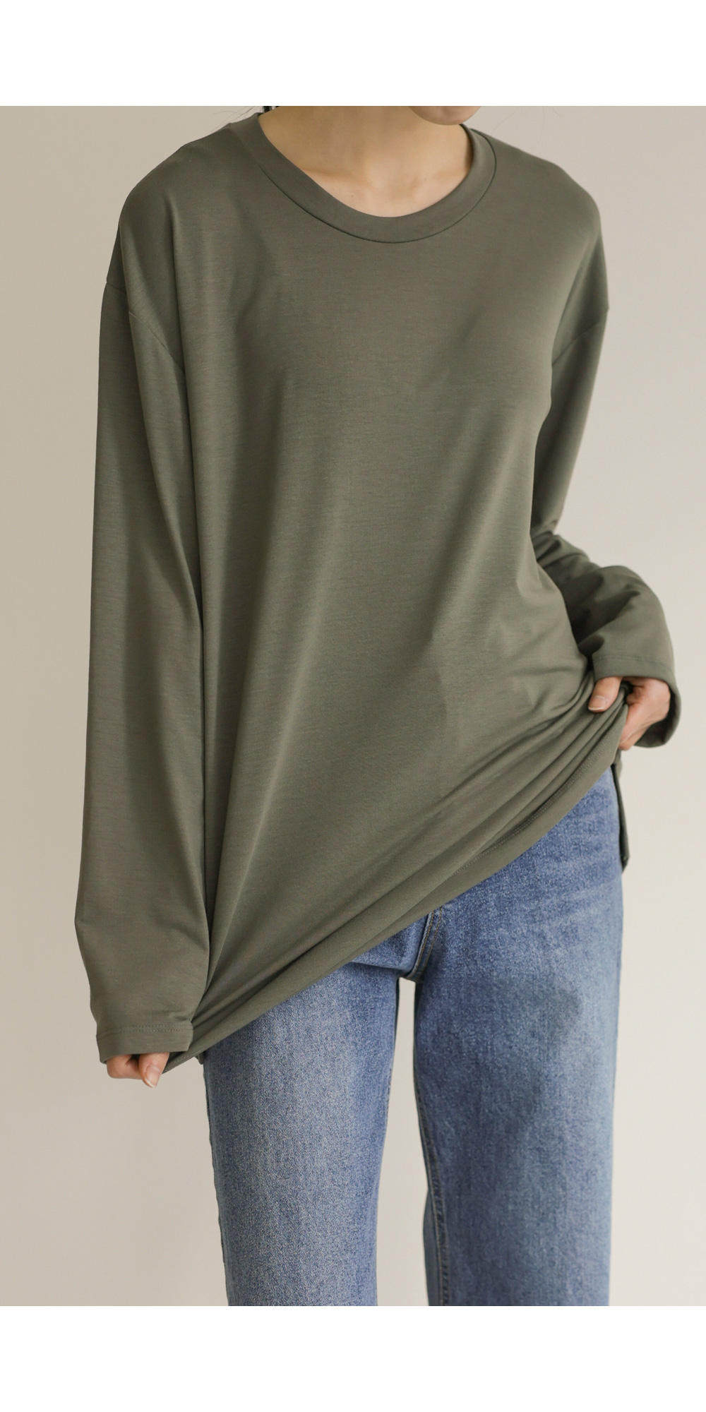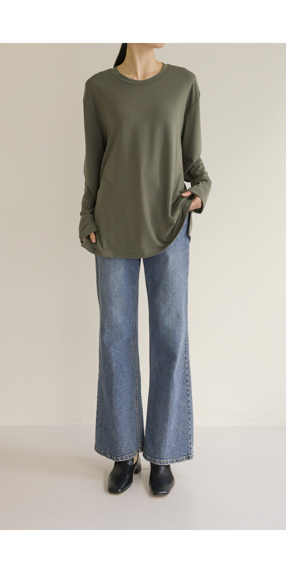 쫀쫀 라운드 티셔츠 _ 네이비,블랙,카키,아이보리