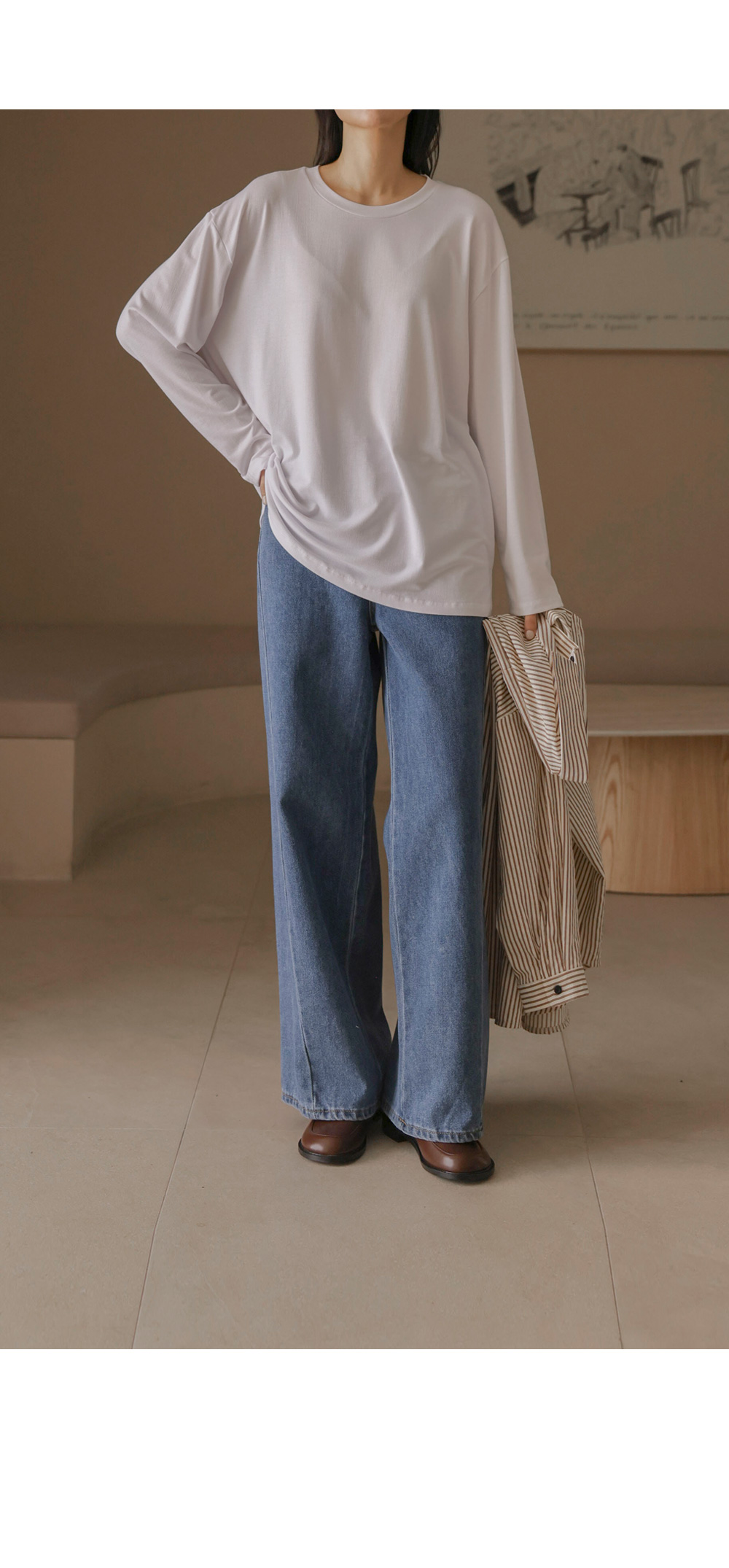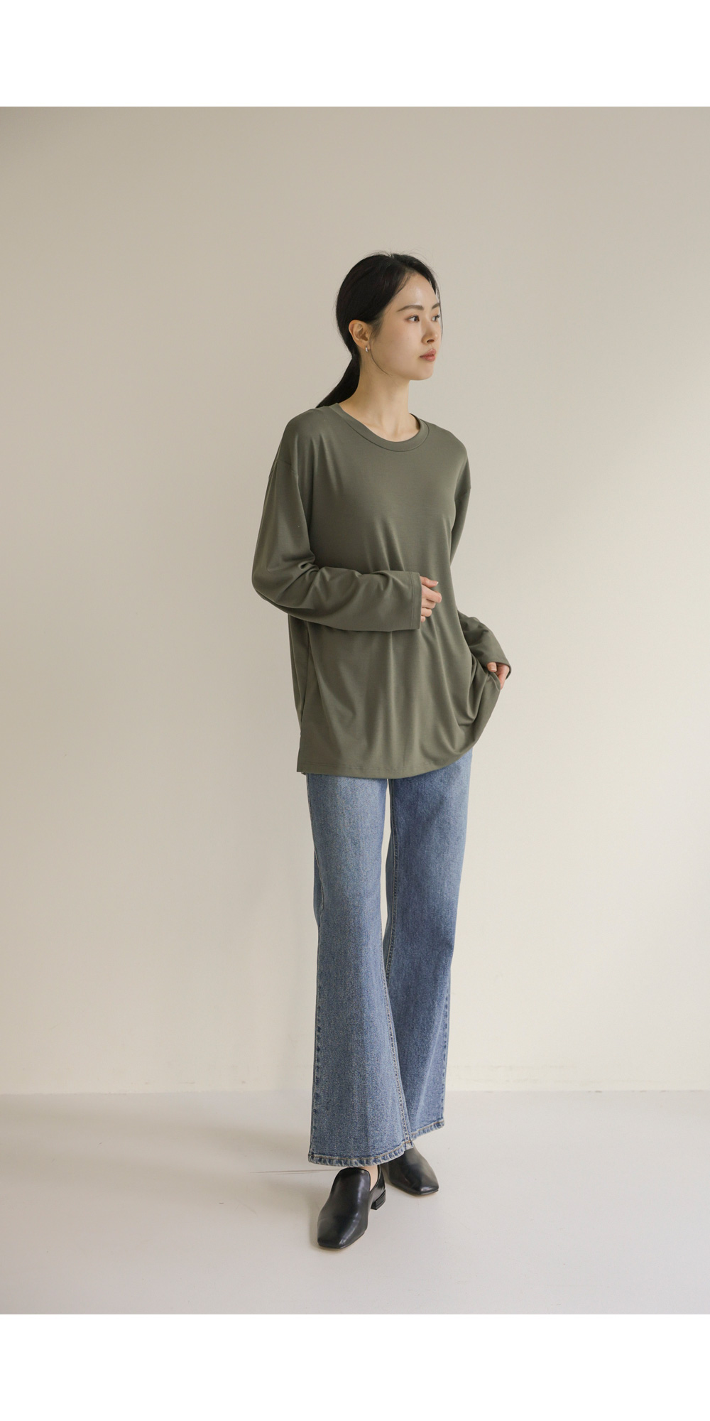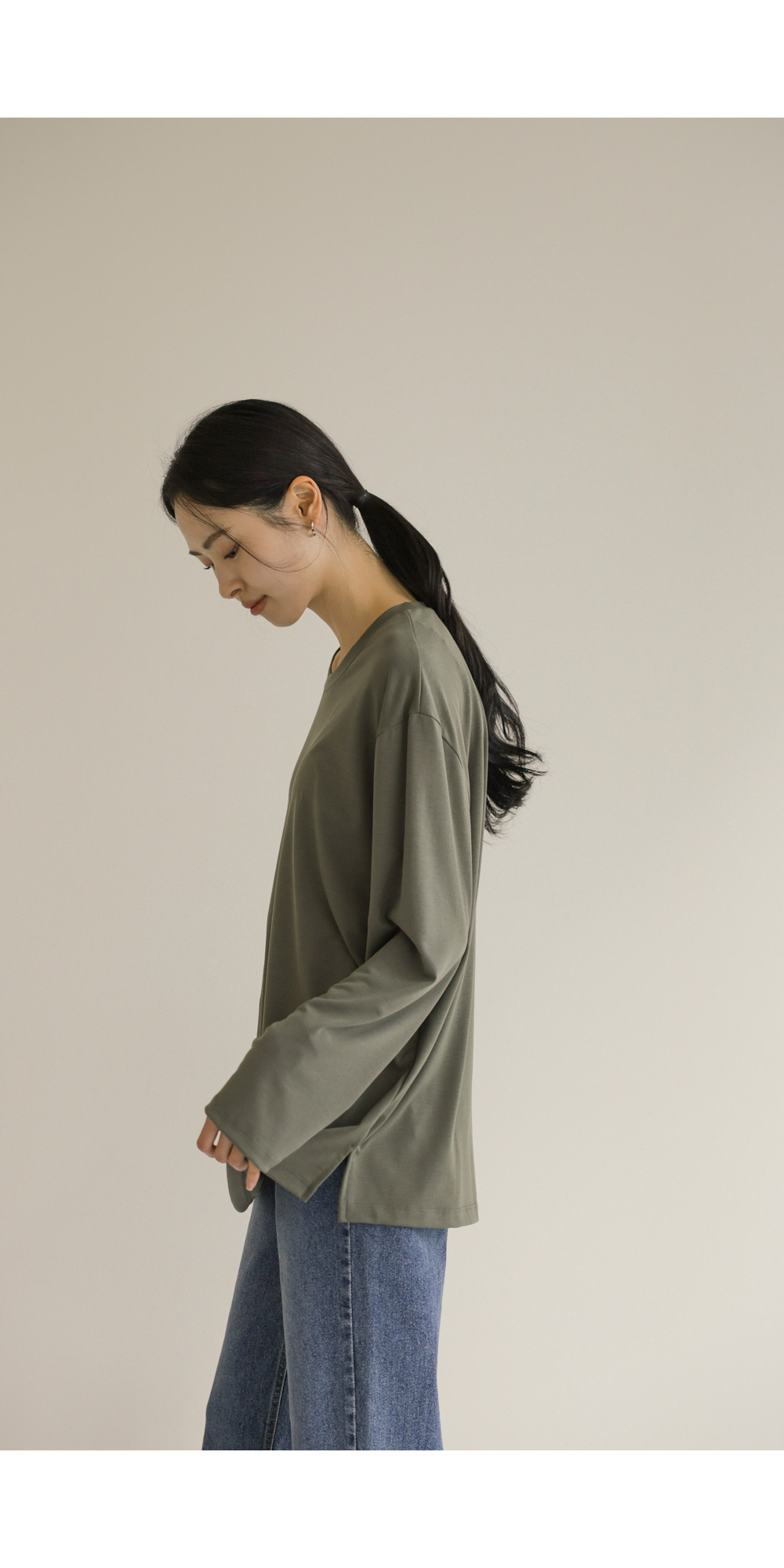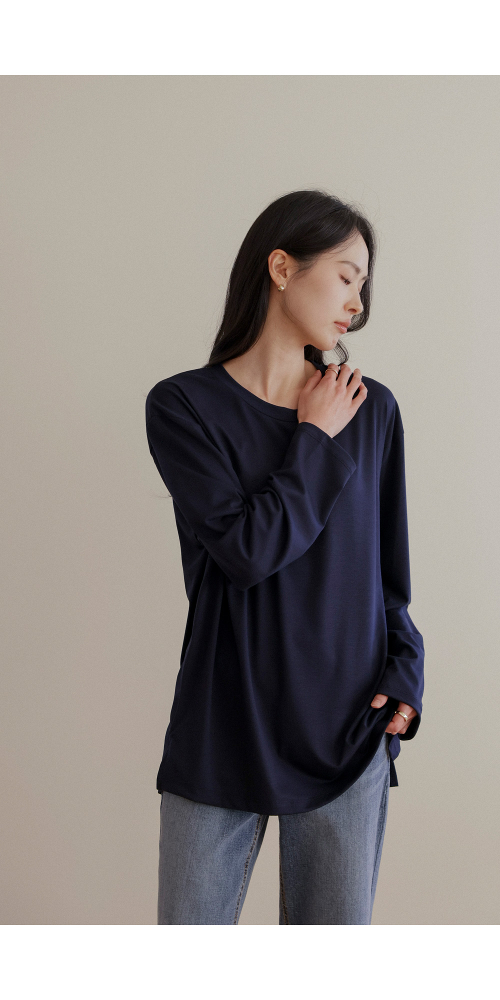 쫀쫀 라운드 티셔츠 _ 네이비,블랙,카키,아이보리
