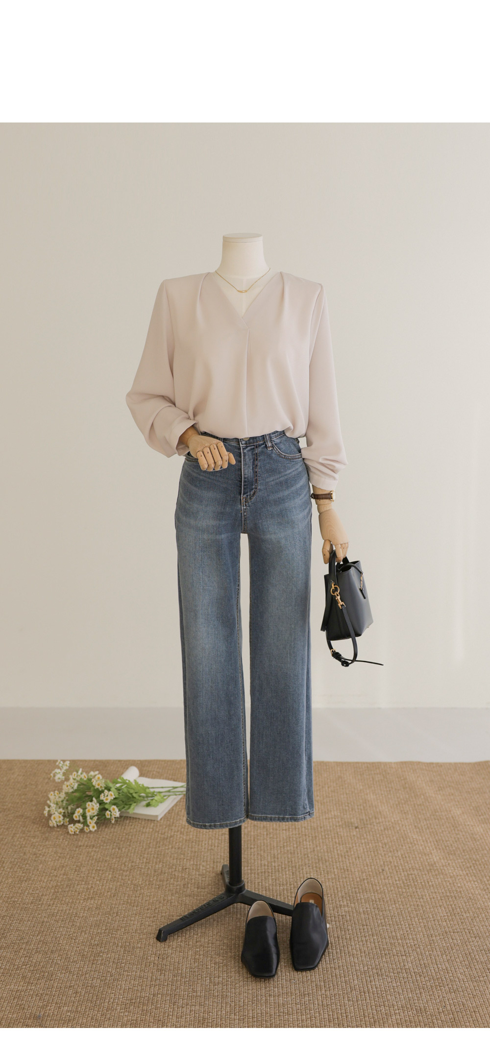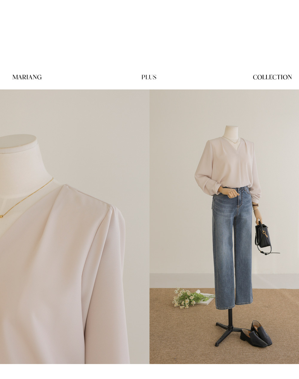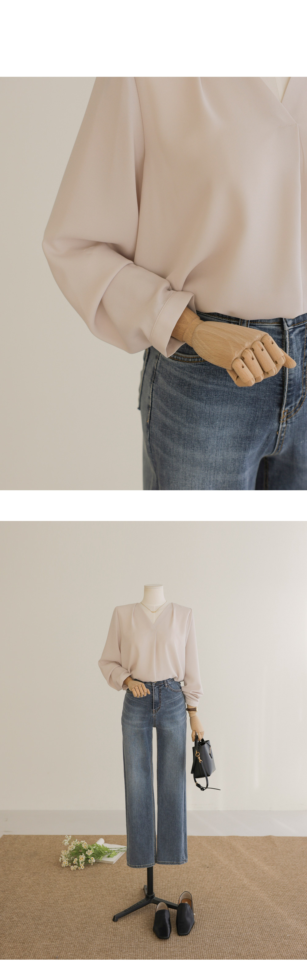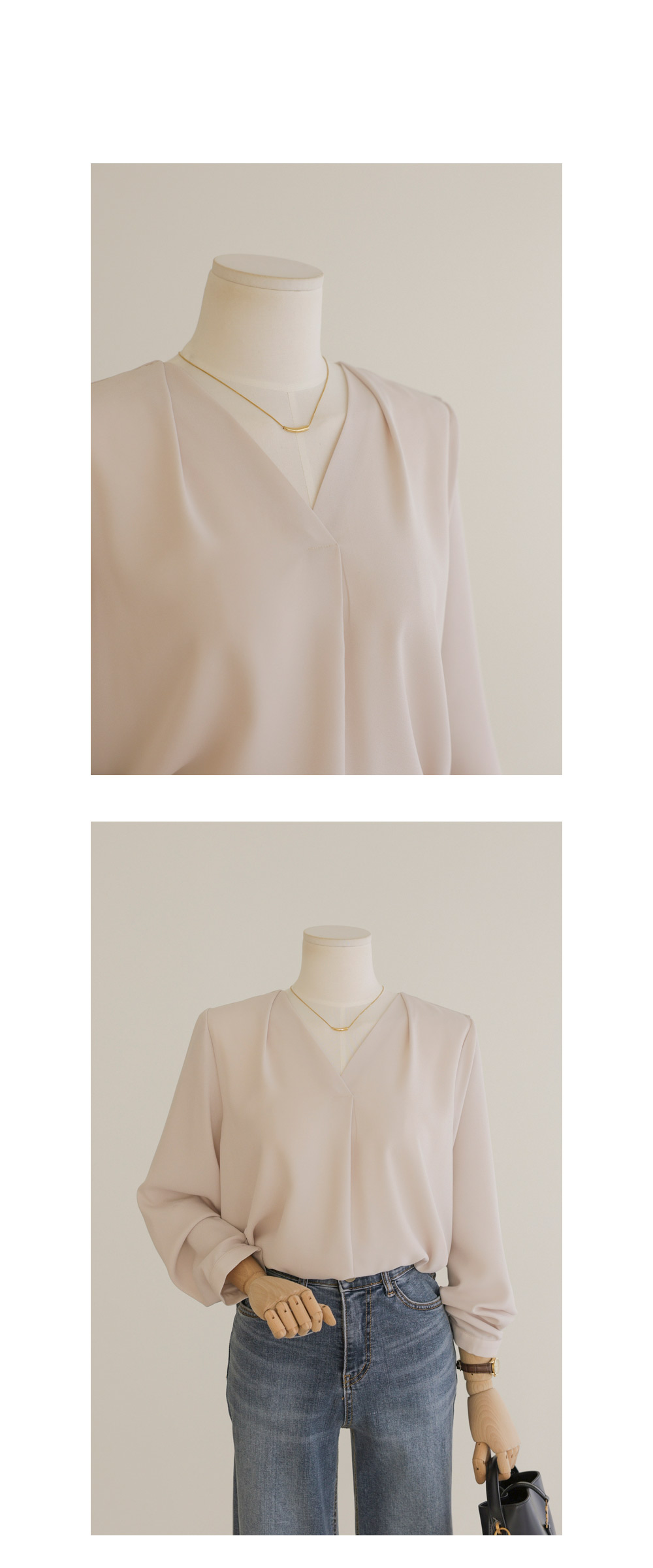 모르티 브이넥 블라우스 _ 네이비,라이트베이지