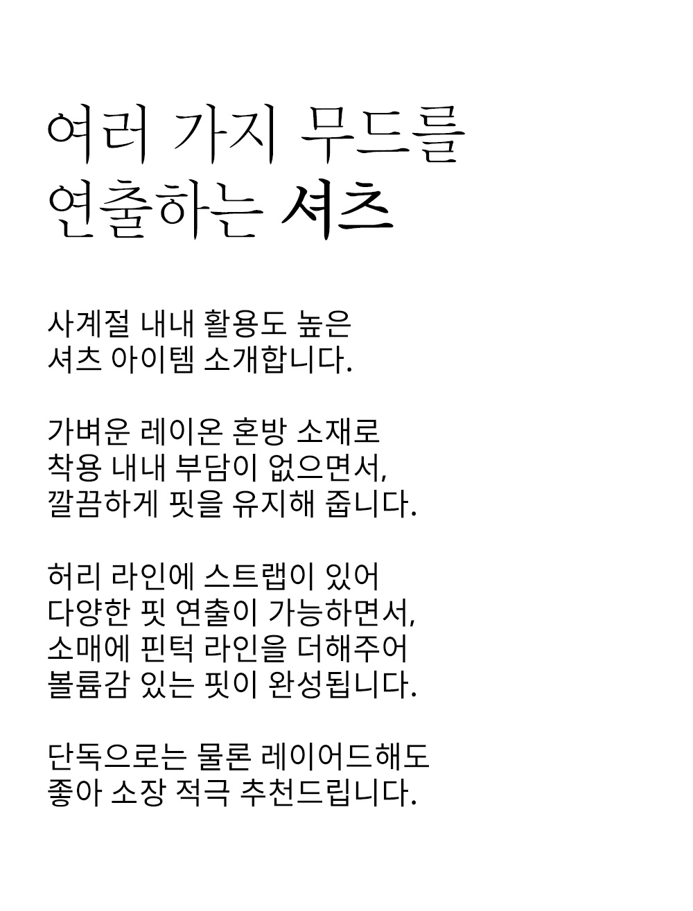 개인의 조명과 모바일, 모니터 환경에 따라 색상차이가 있을 수 있습니다.