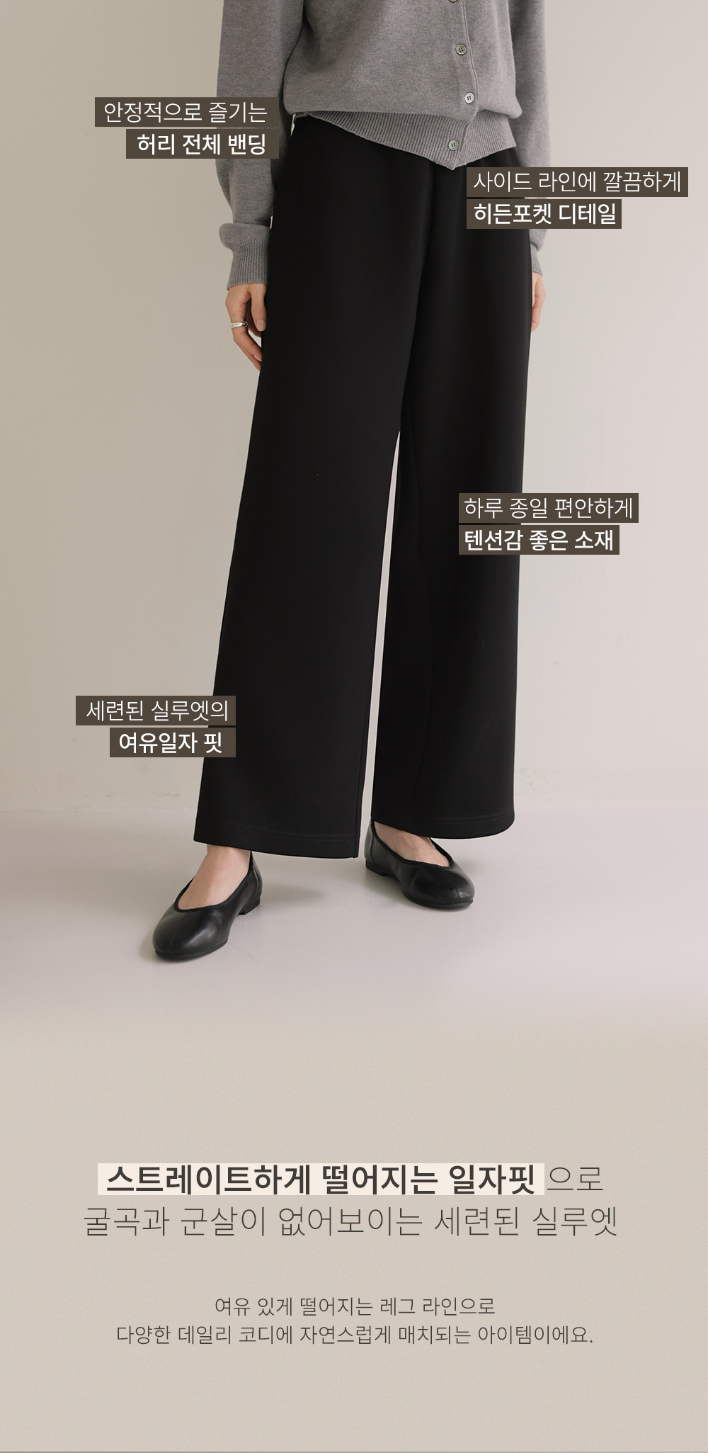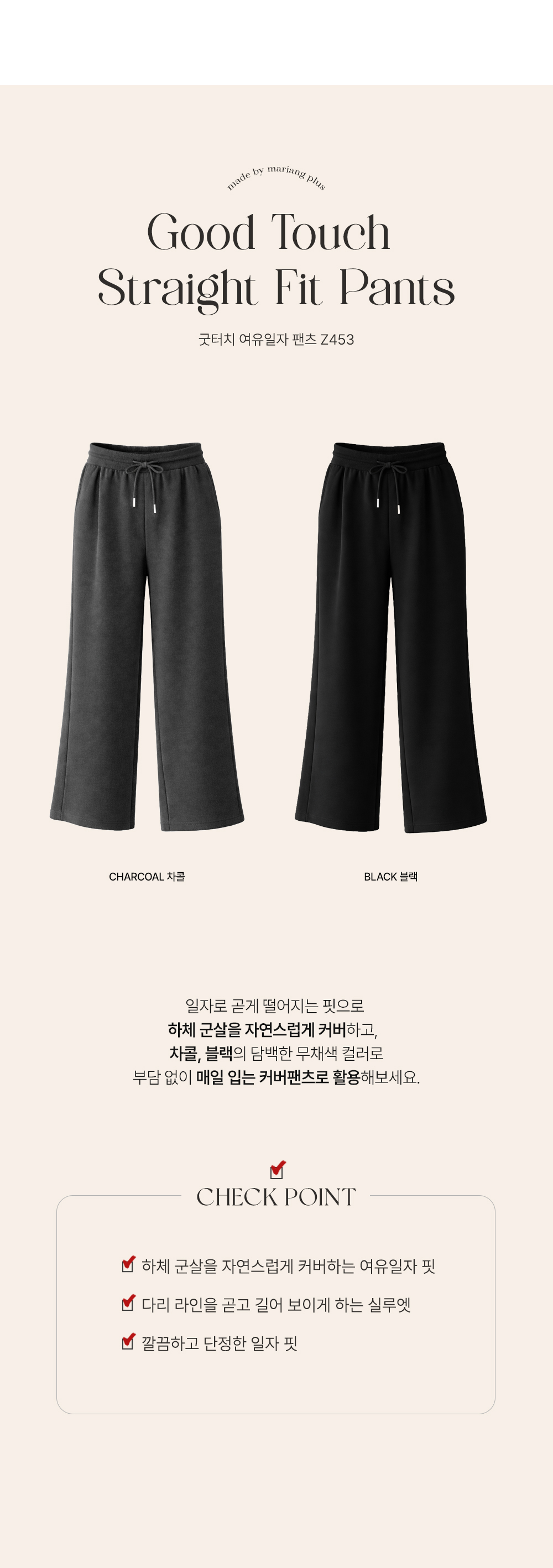 굿터치 여유일자 롱팬츠(롱) _ 블랙,차콜