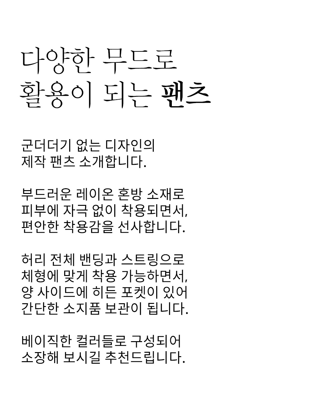 안감 없음   /    비침 없음   /    신축성 좋음