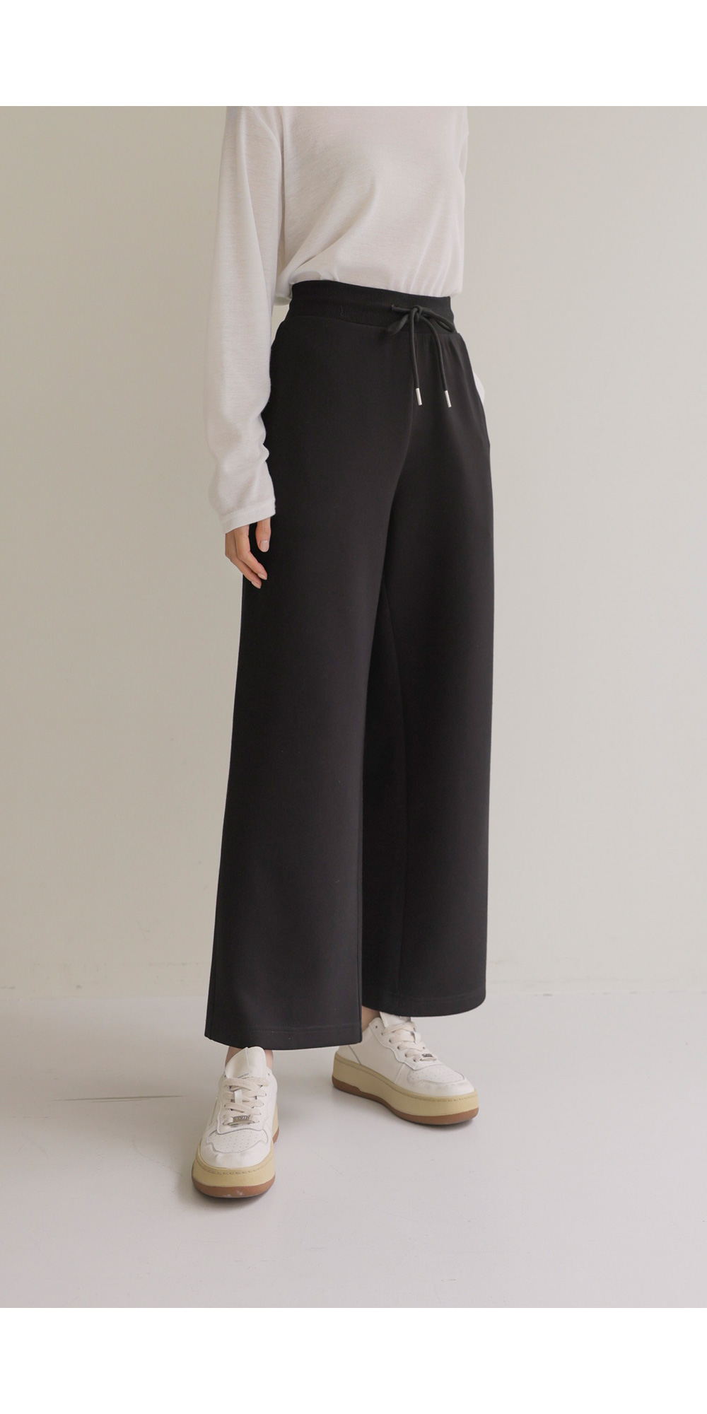 굿터치 여유일자 롱팬츠(숏) _ 블랙