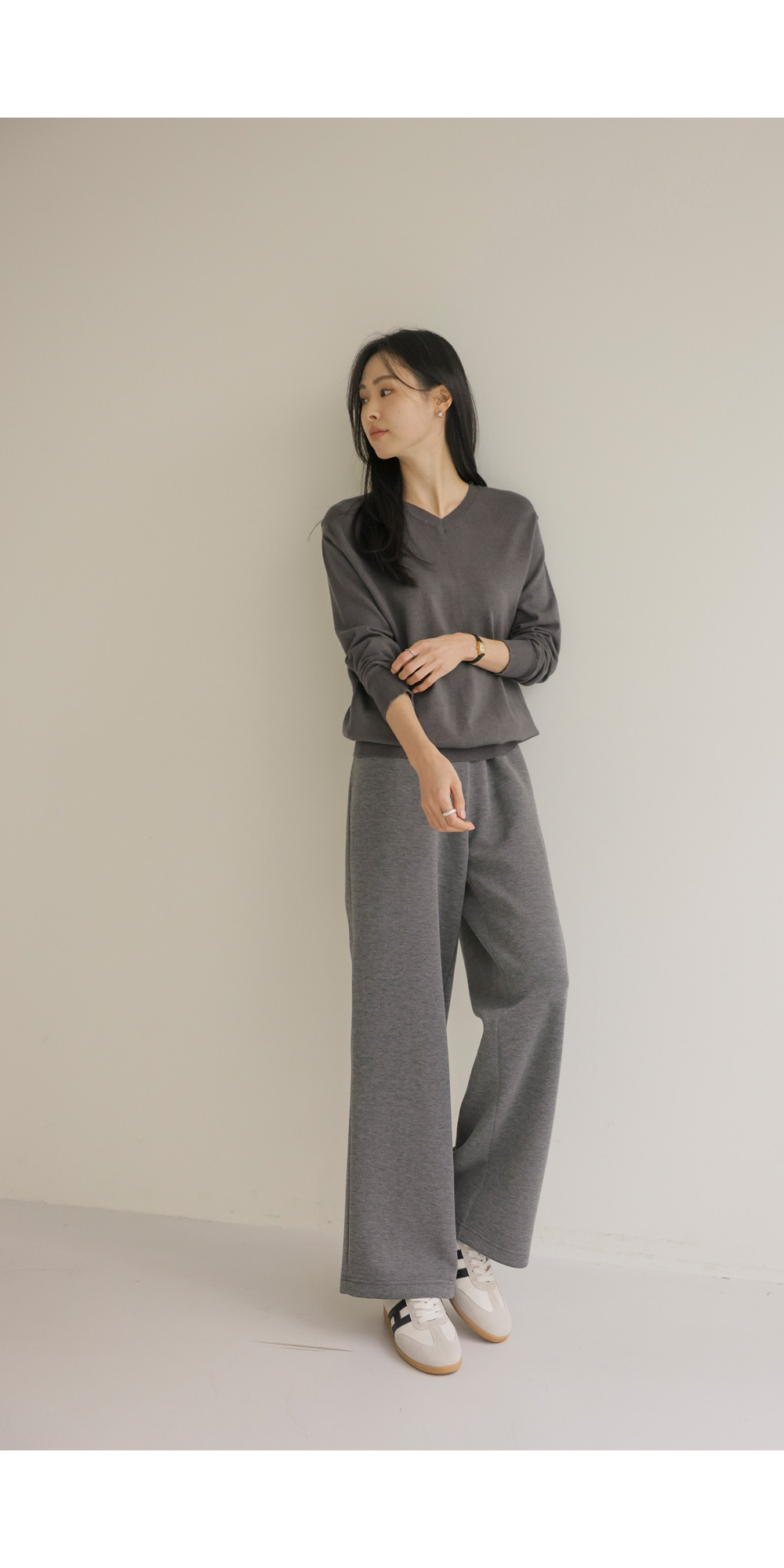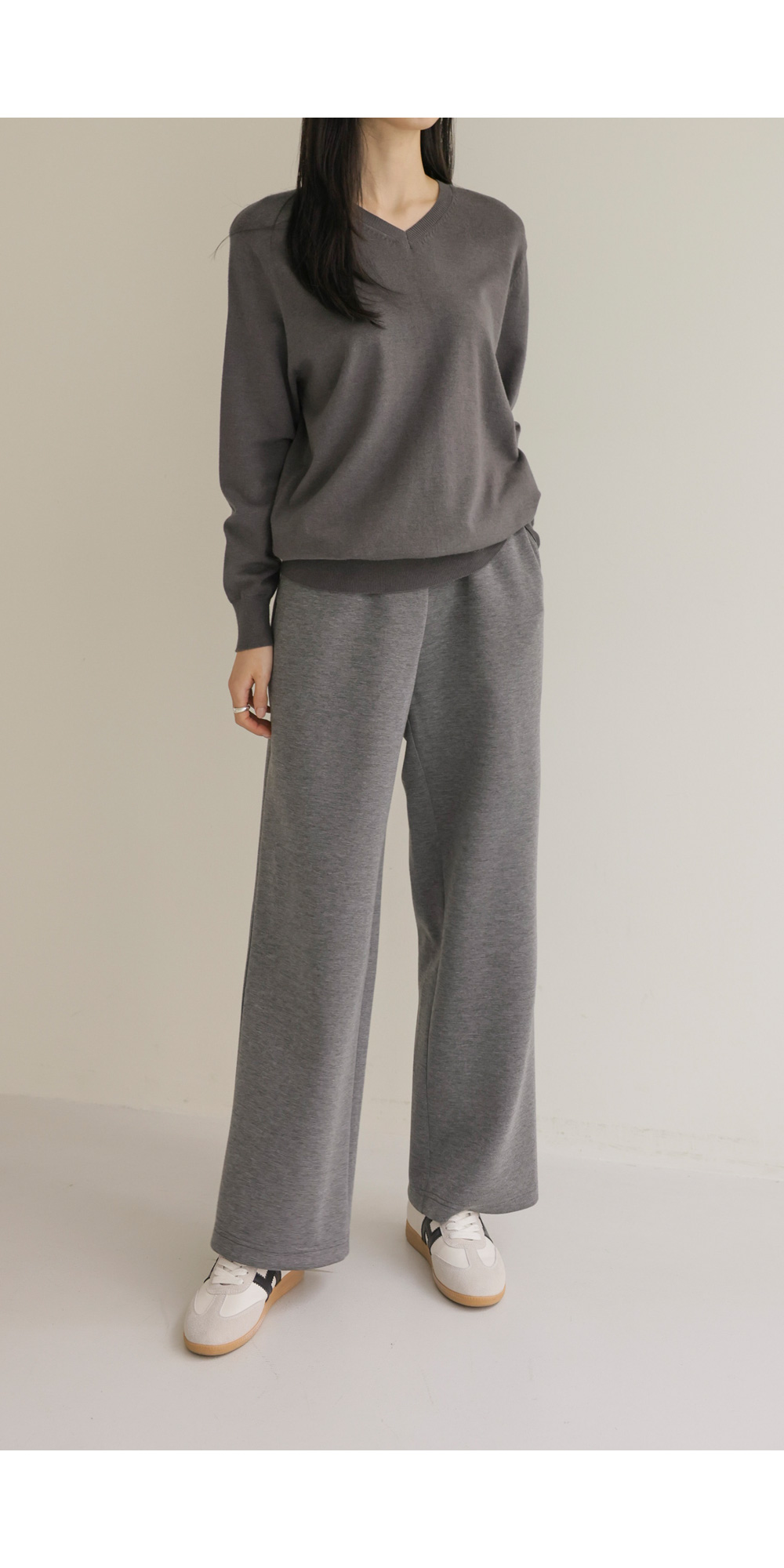 크리미 브이넥 니트 _ 차콜