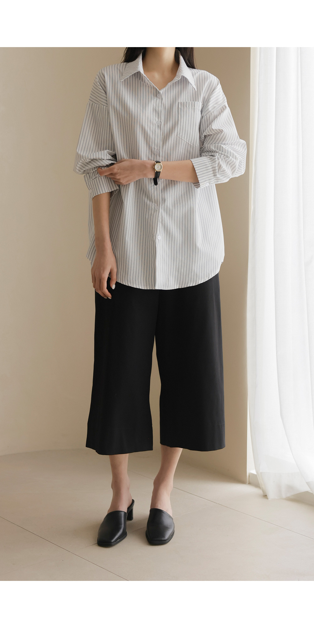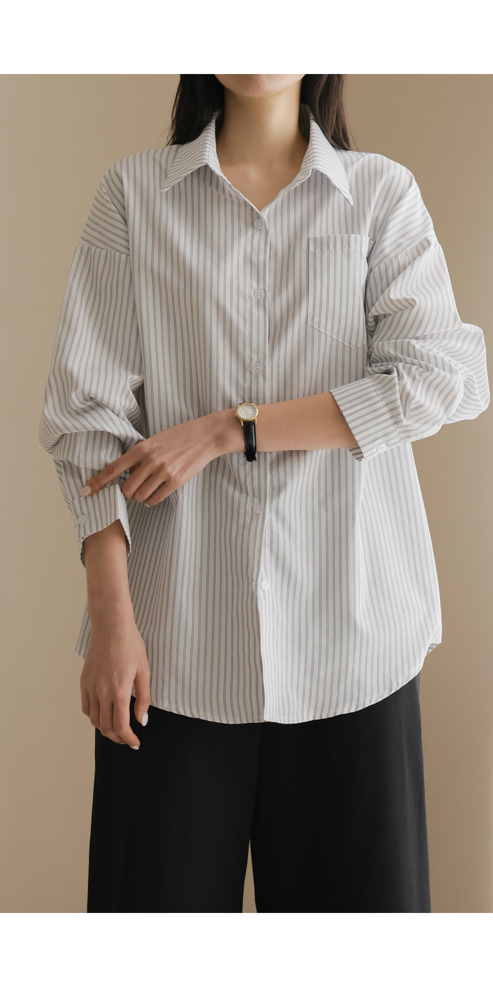 마리셀 스트라이프 셔츠 _ 화이트
