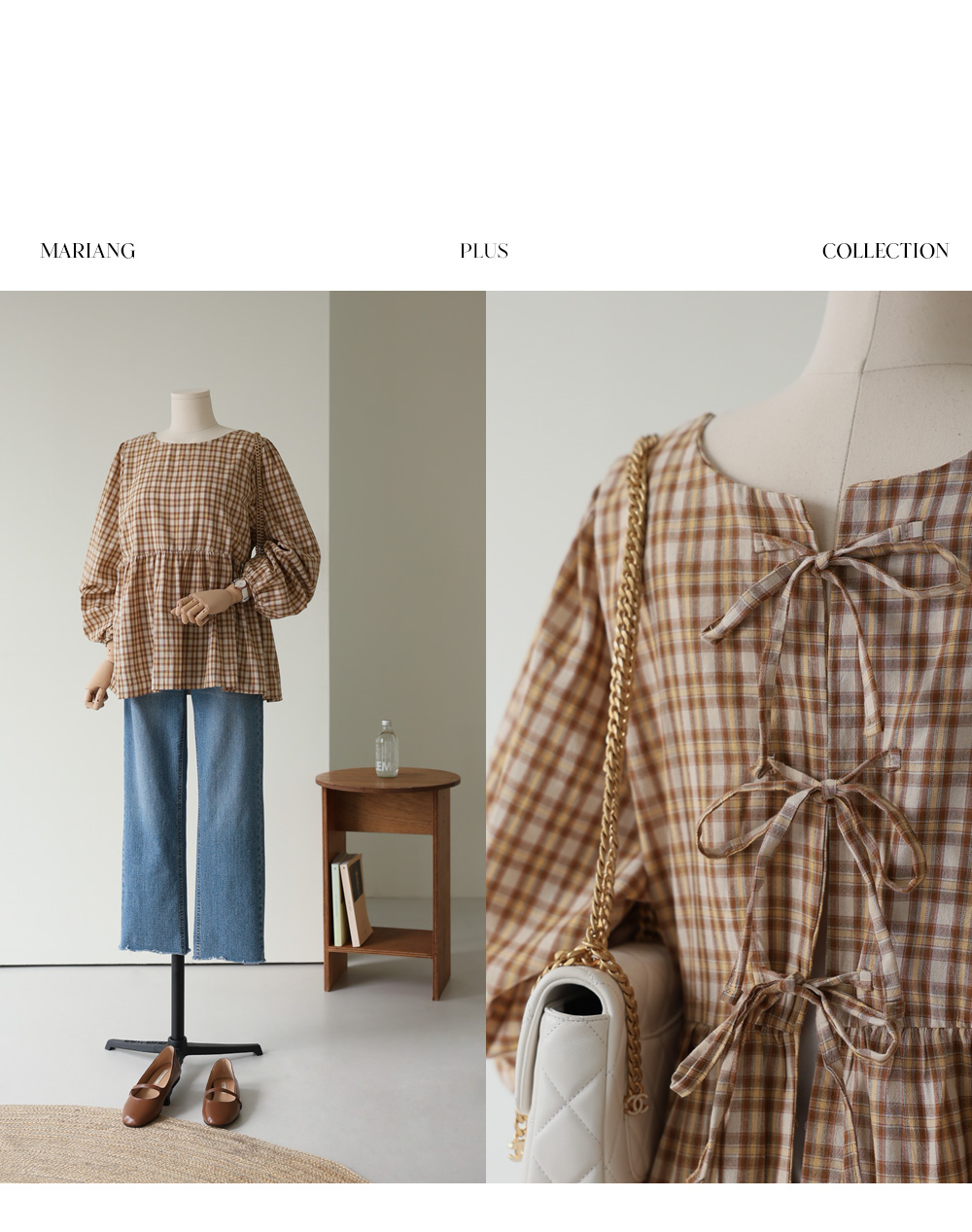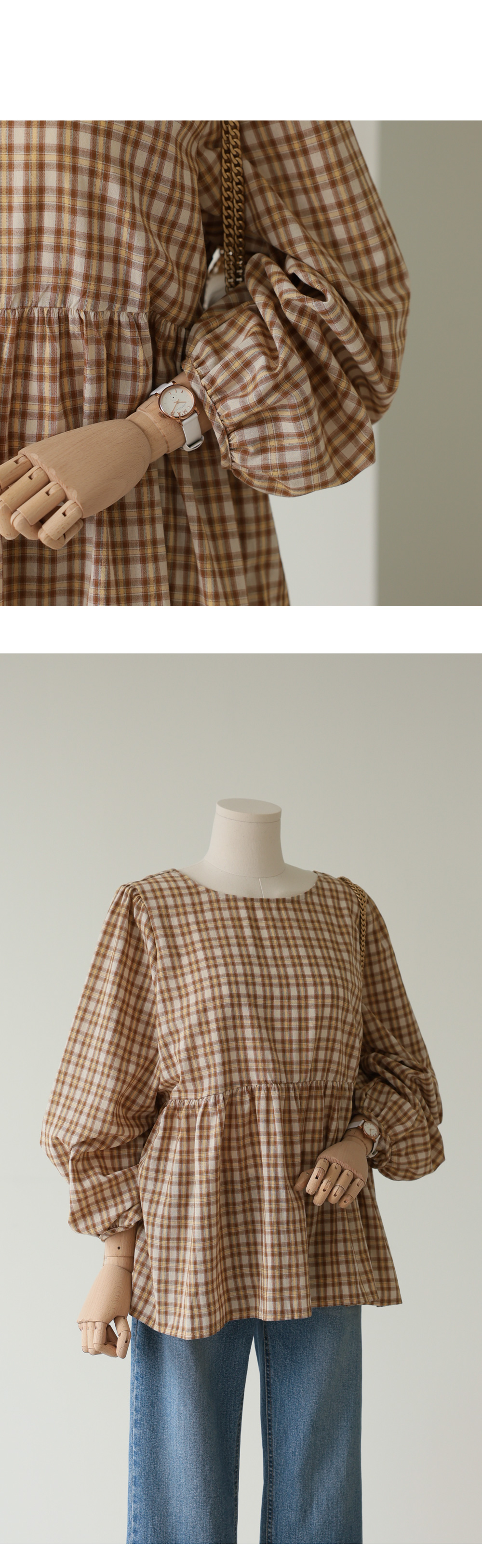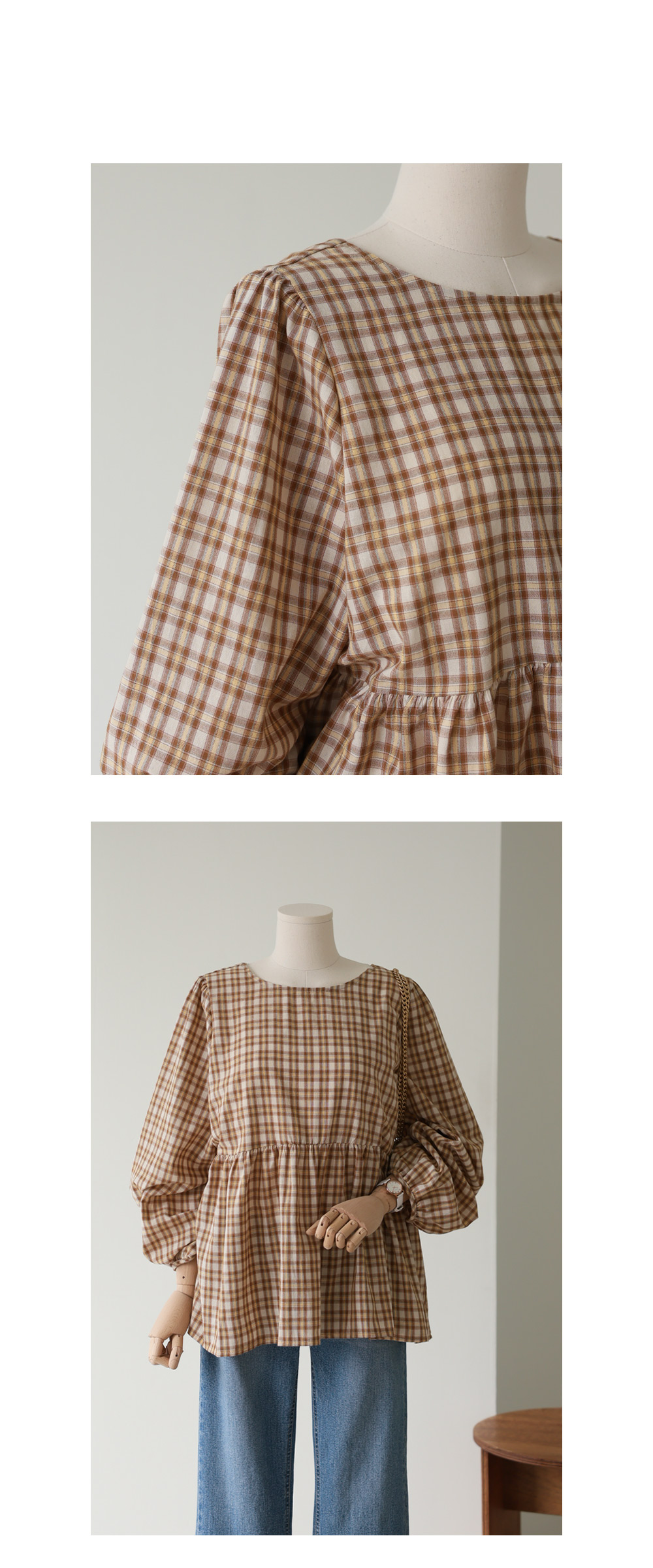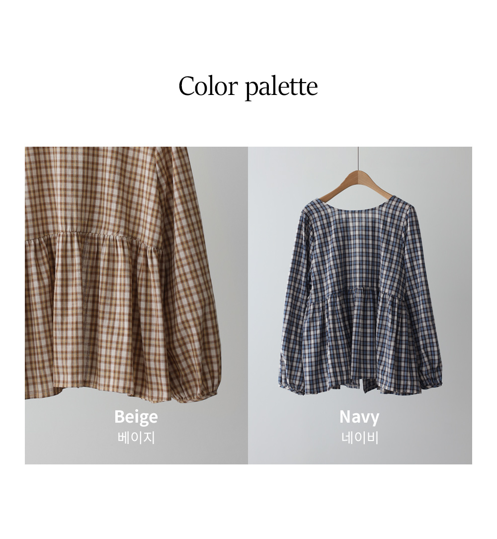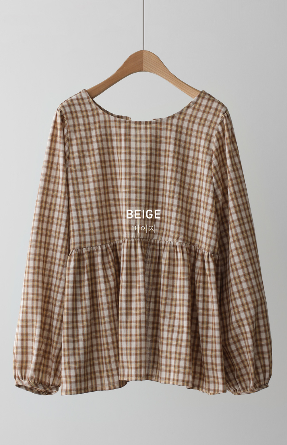 제아미 체크 블라우스 _ 베이지