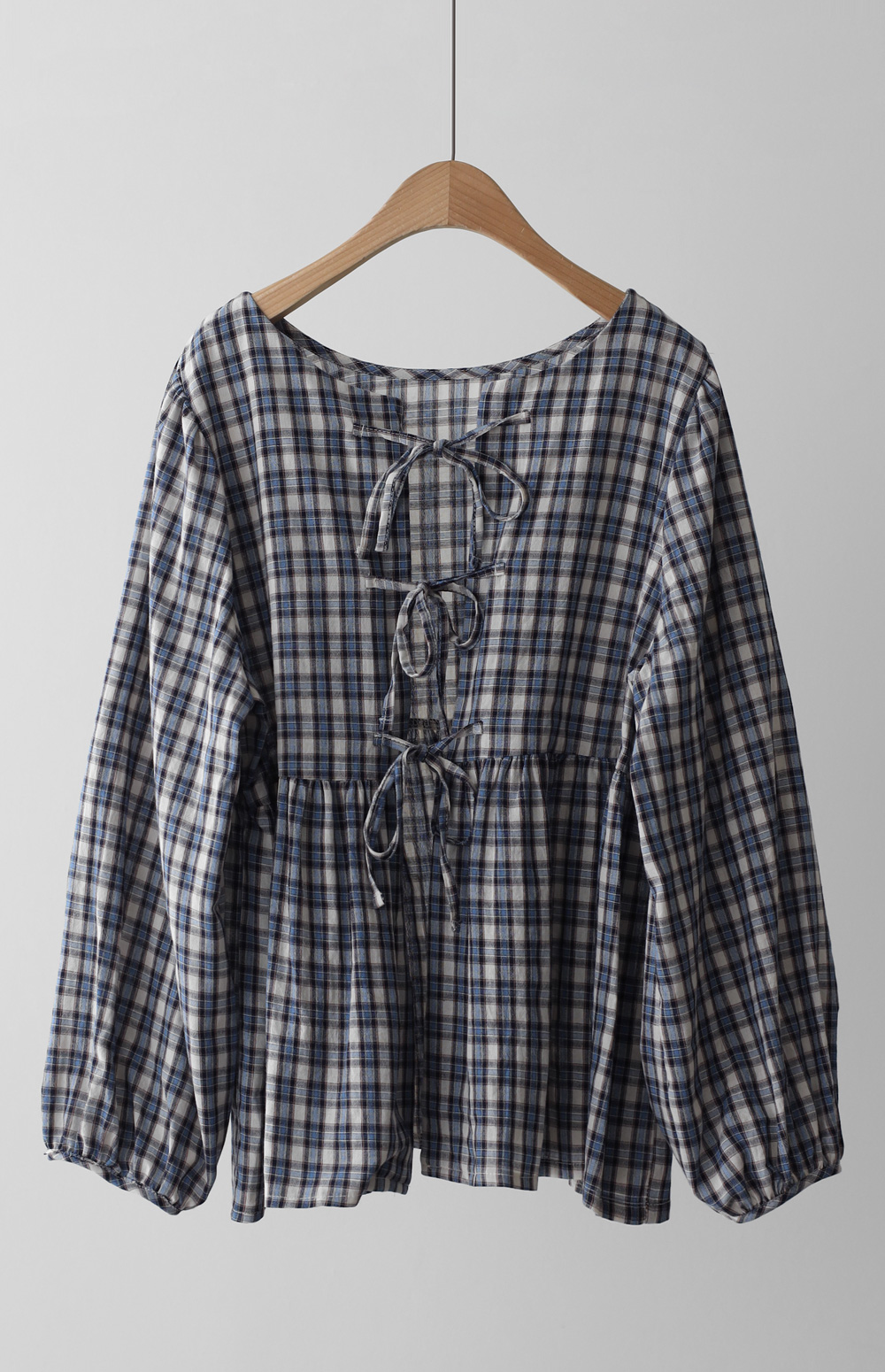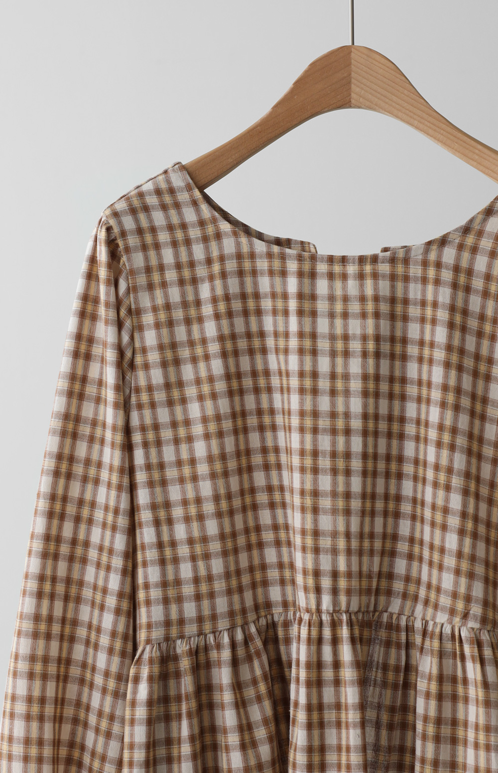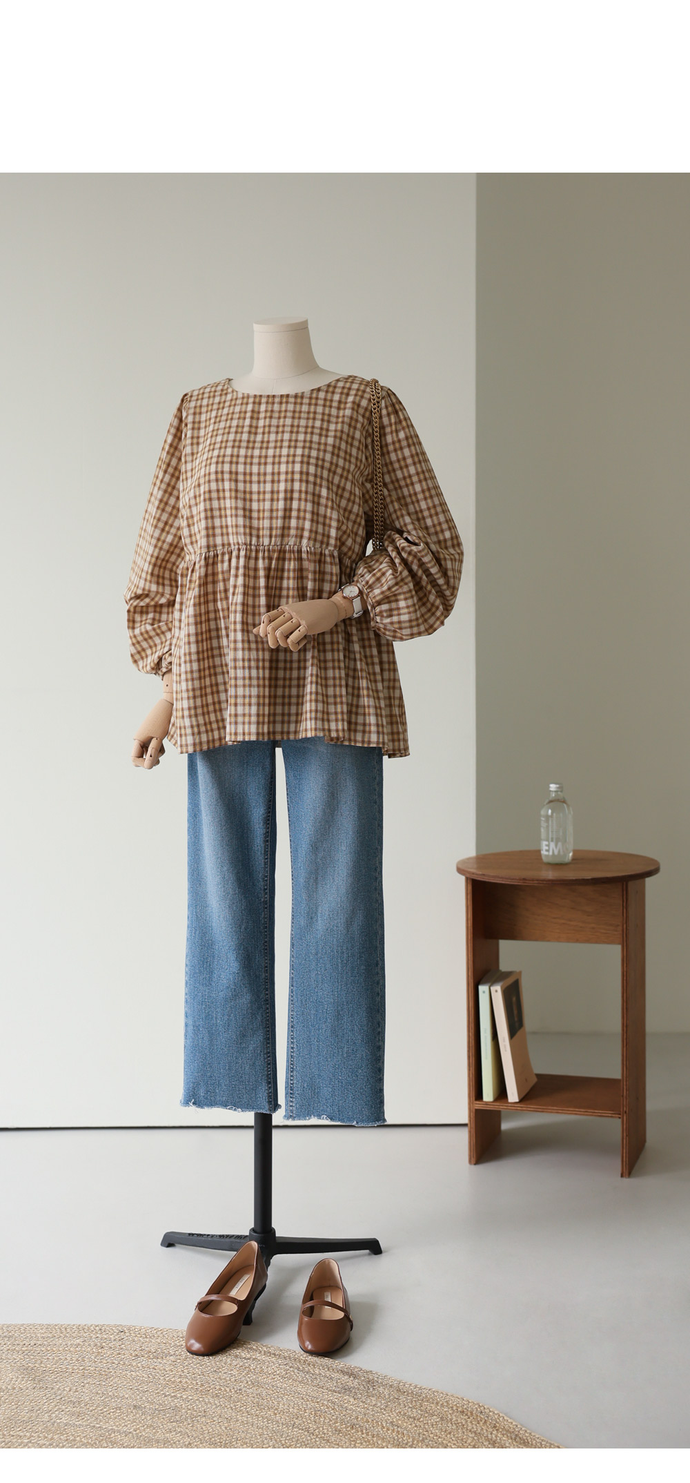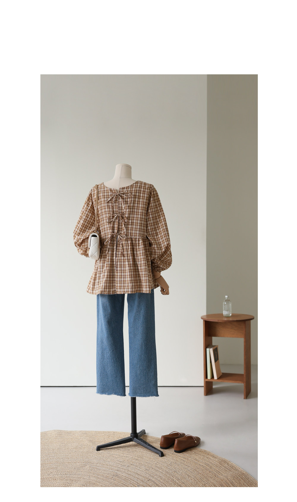 제아미 체크 블라우스 _ 베이지
