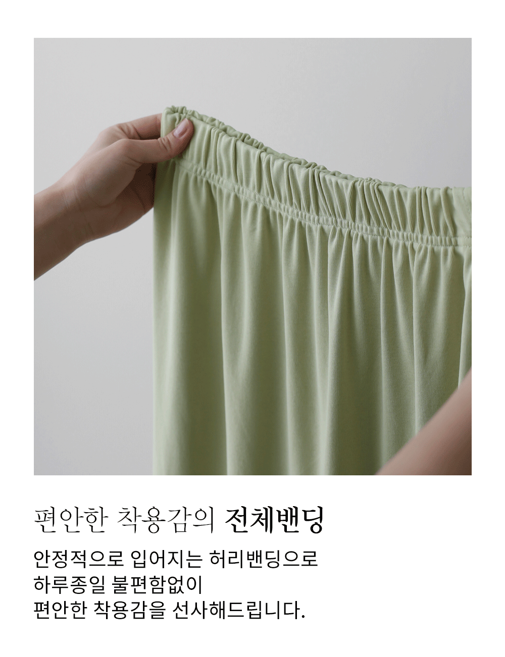 허리 라인은 전체 밴딩으로 제작되어 복부 압박 없이 장시간 착용해도 정말 편안하구요. 앞면 사이드에 겹쳐진 듯한 플랩 절개 라인은 시선을 분산시켜 하체 라인이 훨씬 슬림해 보이는 효과를 주며, 꼼꼼한 마감 처리가 돋보이는 높은 퀄리티의 상품이에요.