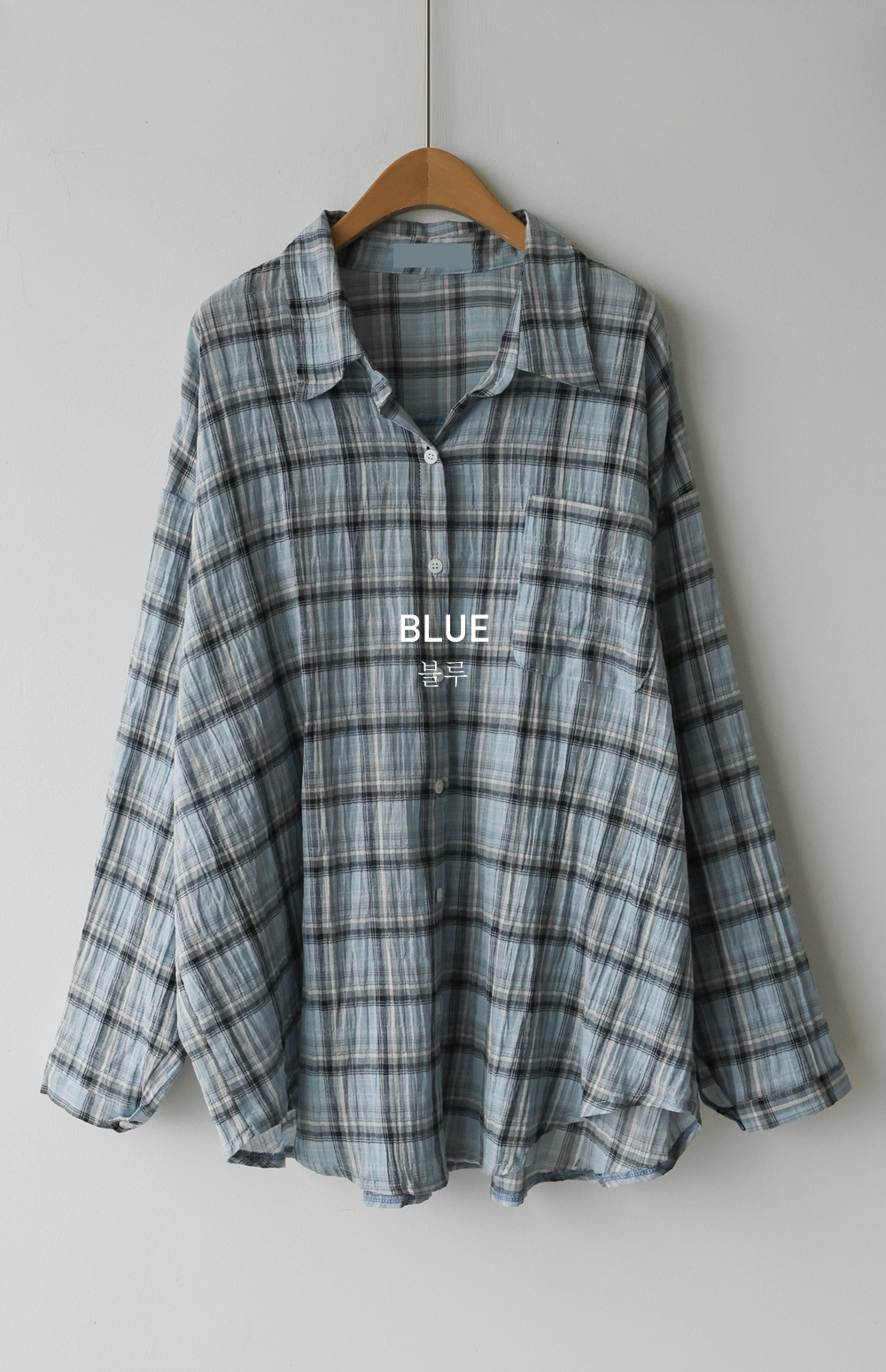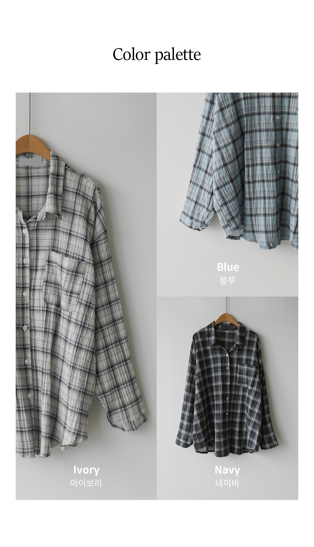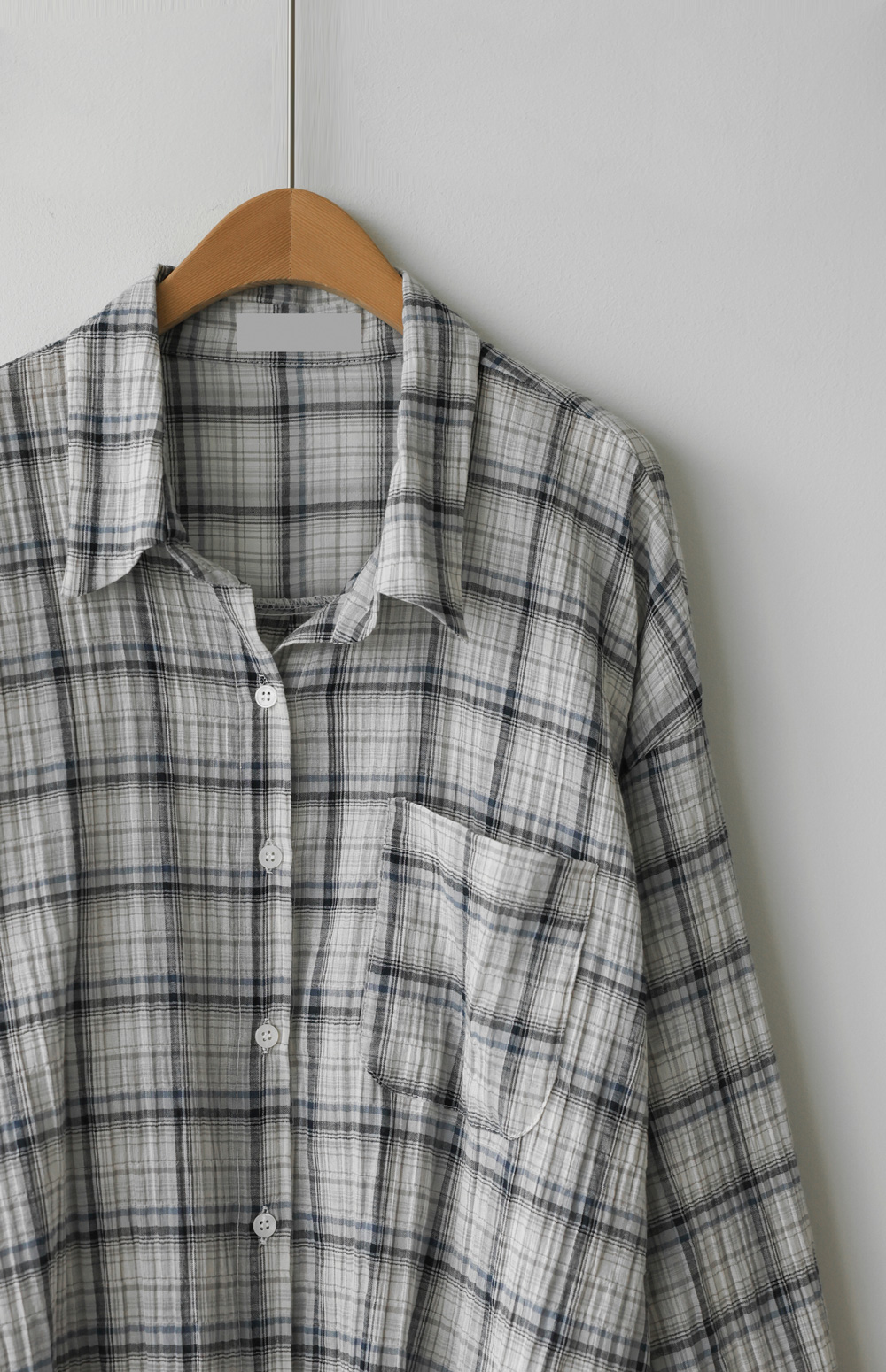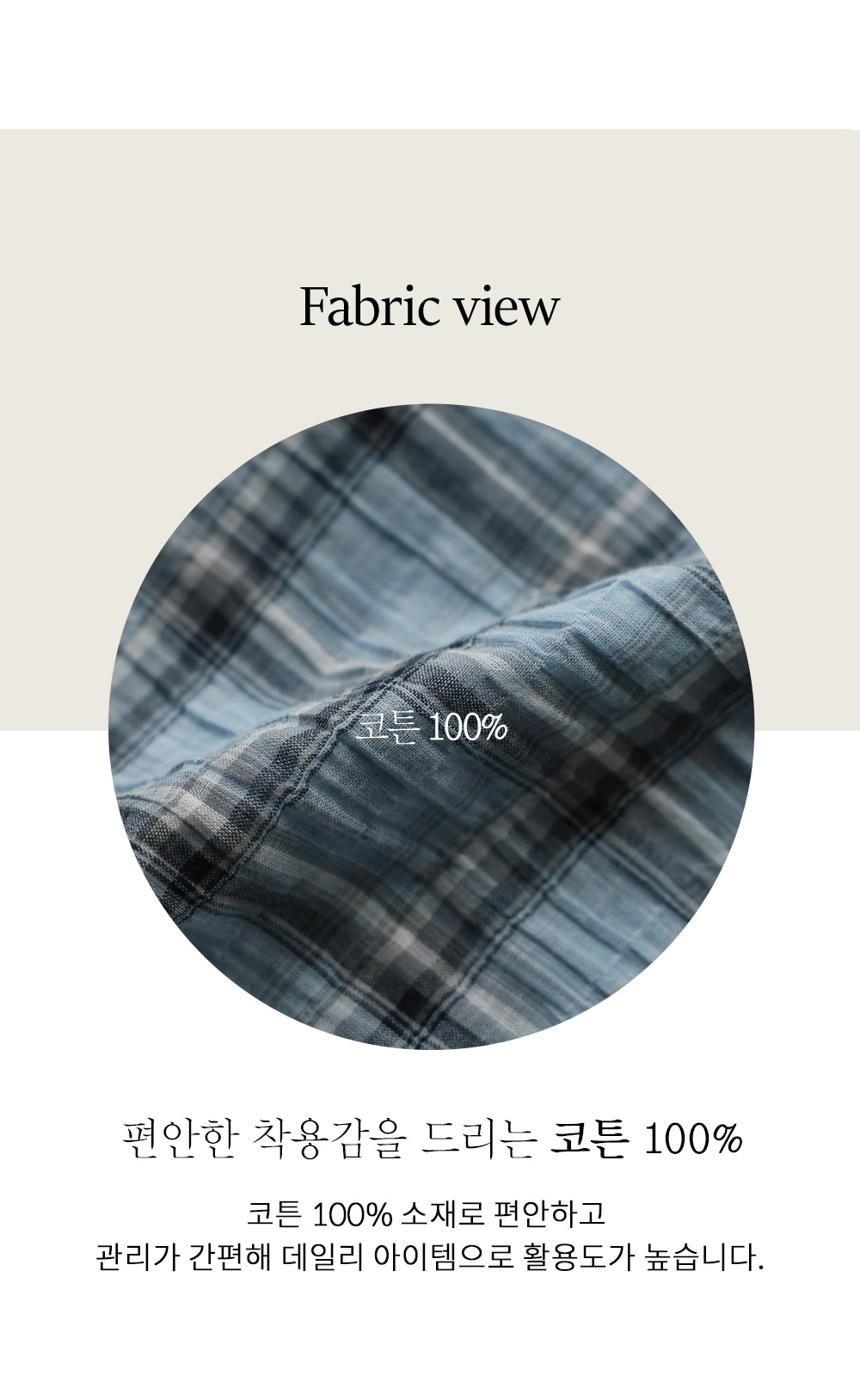 A:얇고 가벼운 여름용 소재라 비침이 아예 없을 수는 없지만, 원단의 질감과 체크 패턴이 시선을 분산시켜 줘요. 스킨톤 이너를 입어주시면 단독으로도 충분히 깔끔하게 착용 가능하세요.