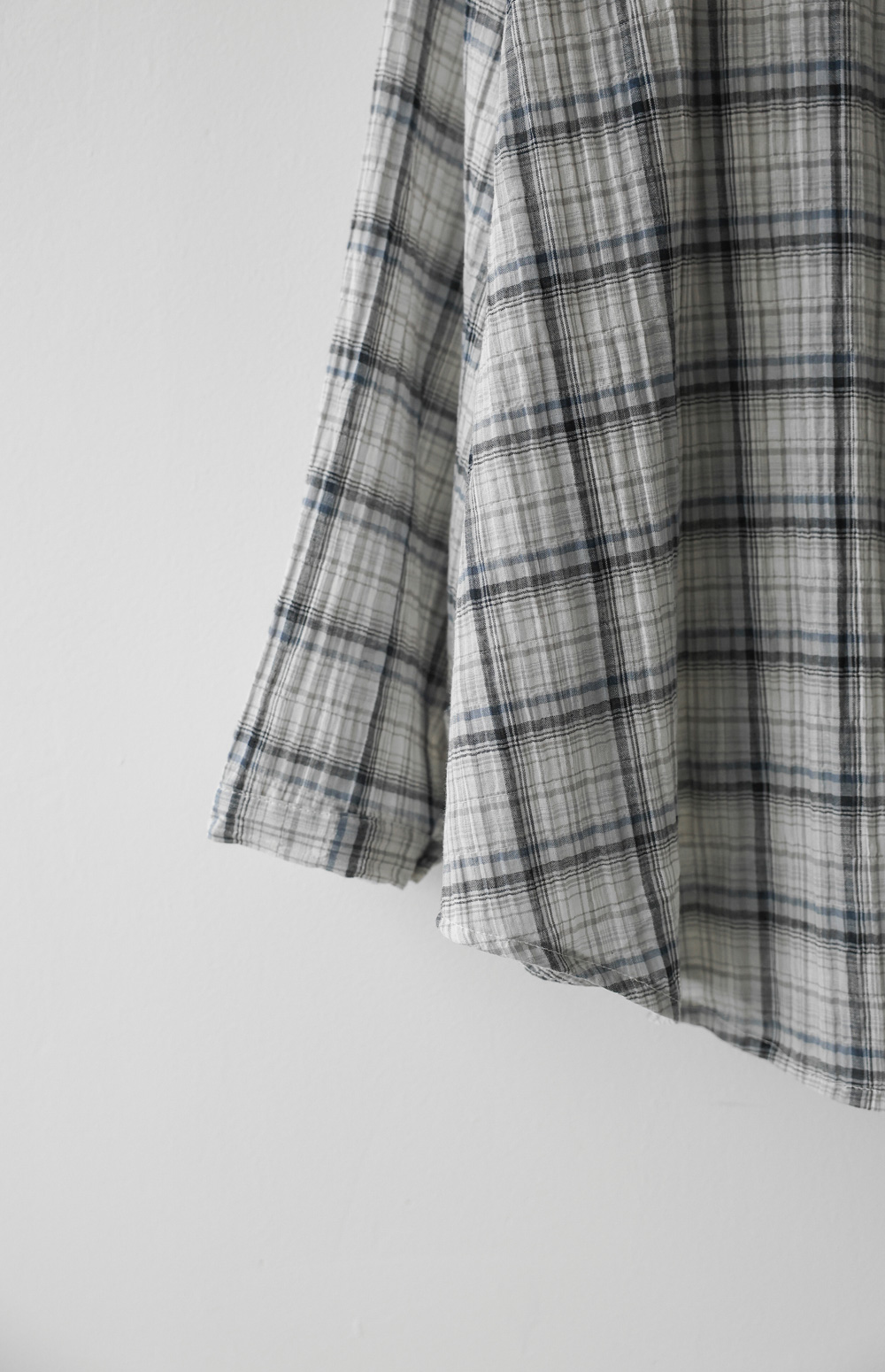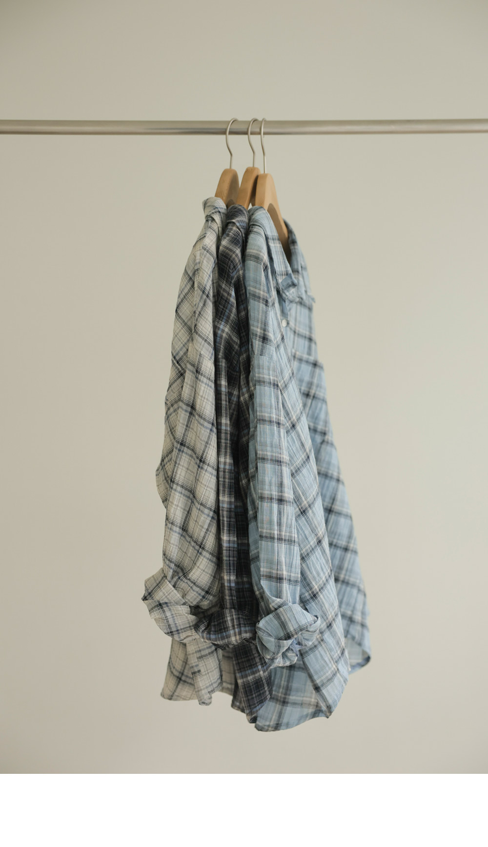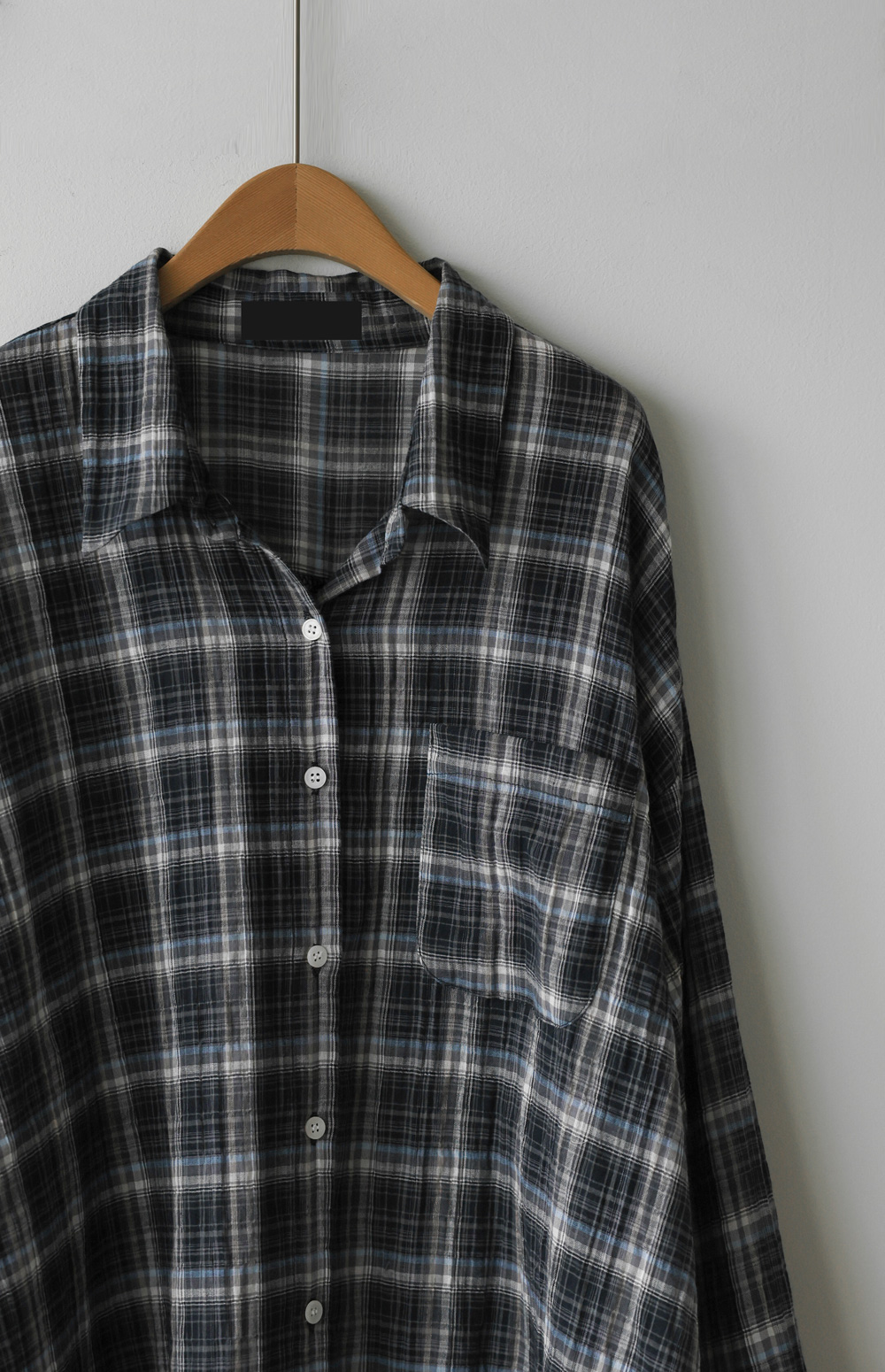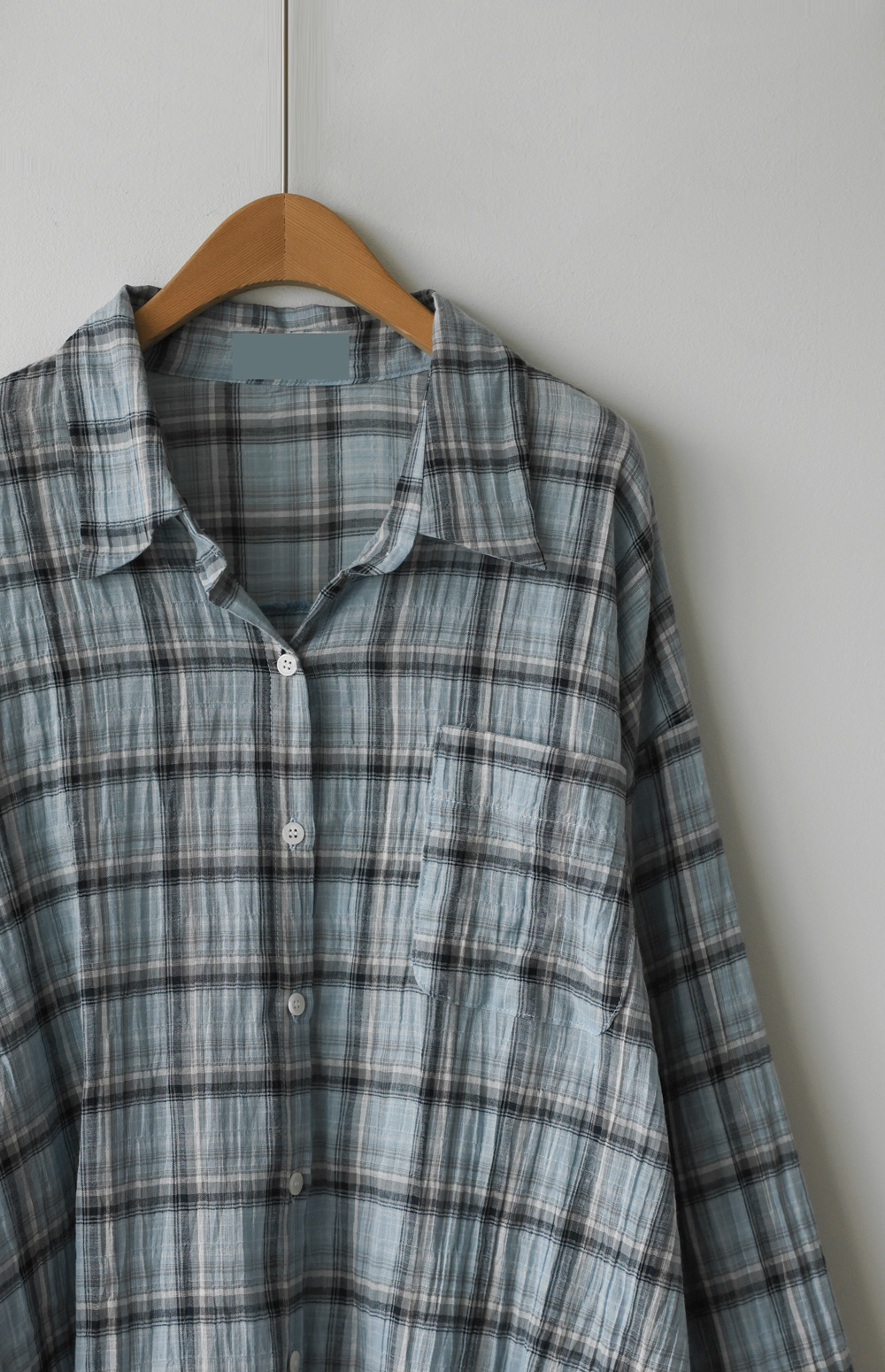 A:얇고 가벼운 여름용 소재라 비침이 아예 없을 수는 없지만, 원단의 질감과 체크 패턴이 시선을 분산시켜 줘요. 스킨톤 이너를 입어주시면 단독으로도 충분히 깔끔하게 착용 가능하세요.