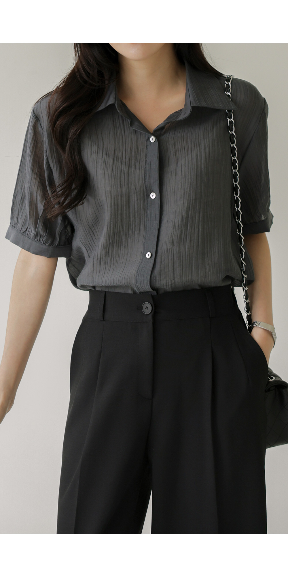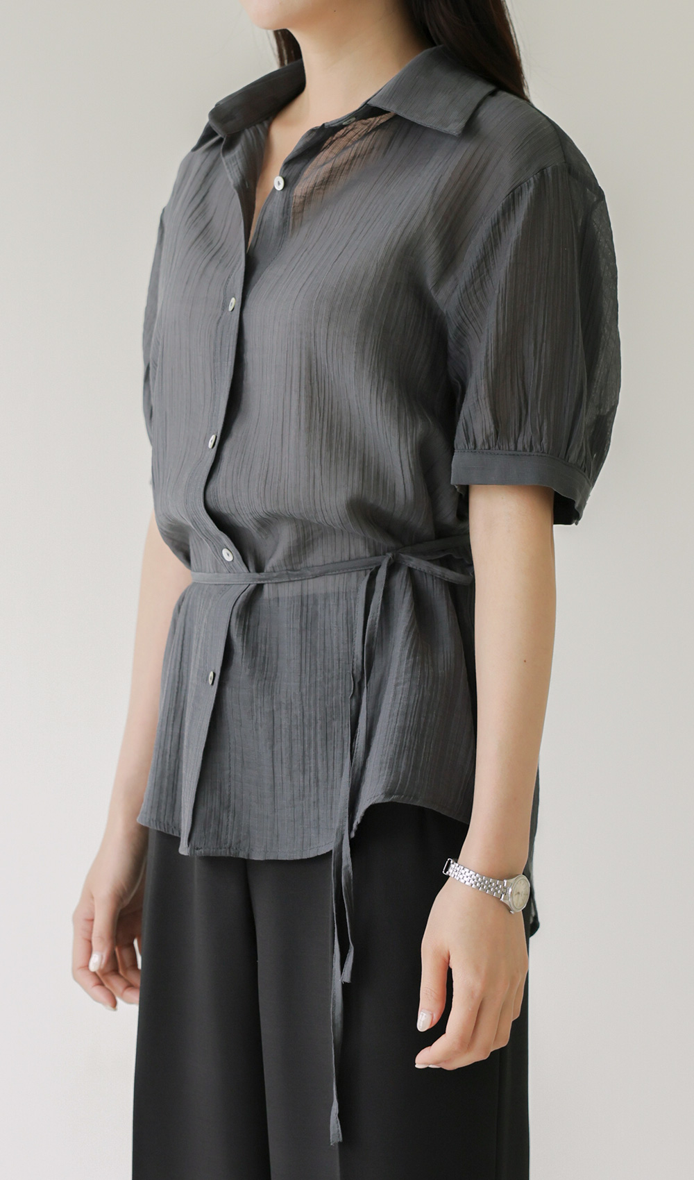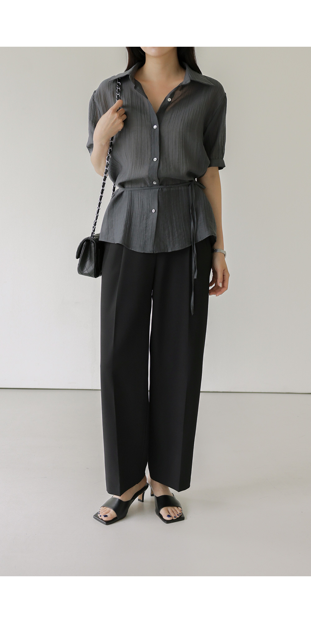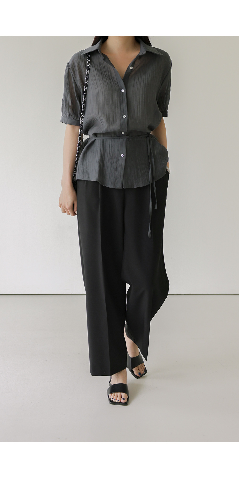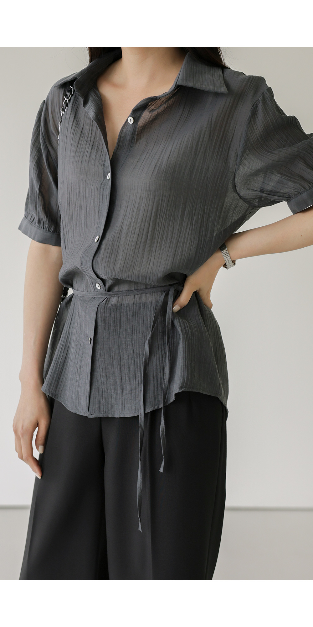 자베에 스트랩 셔츠 _ 차콜