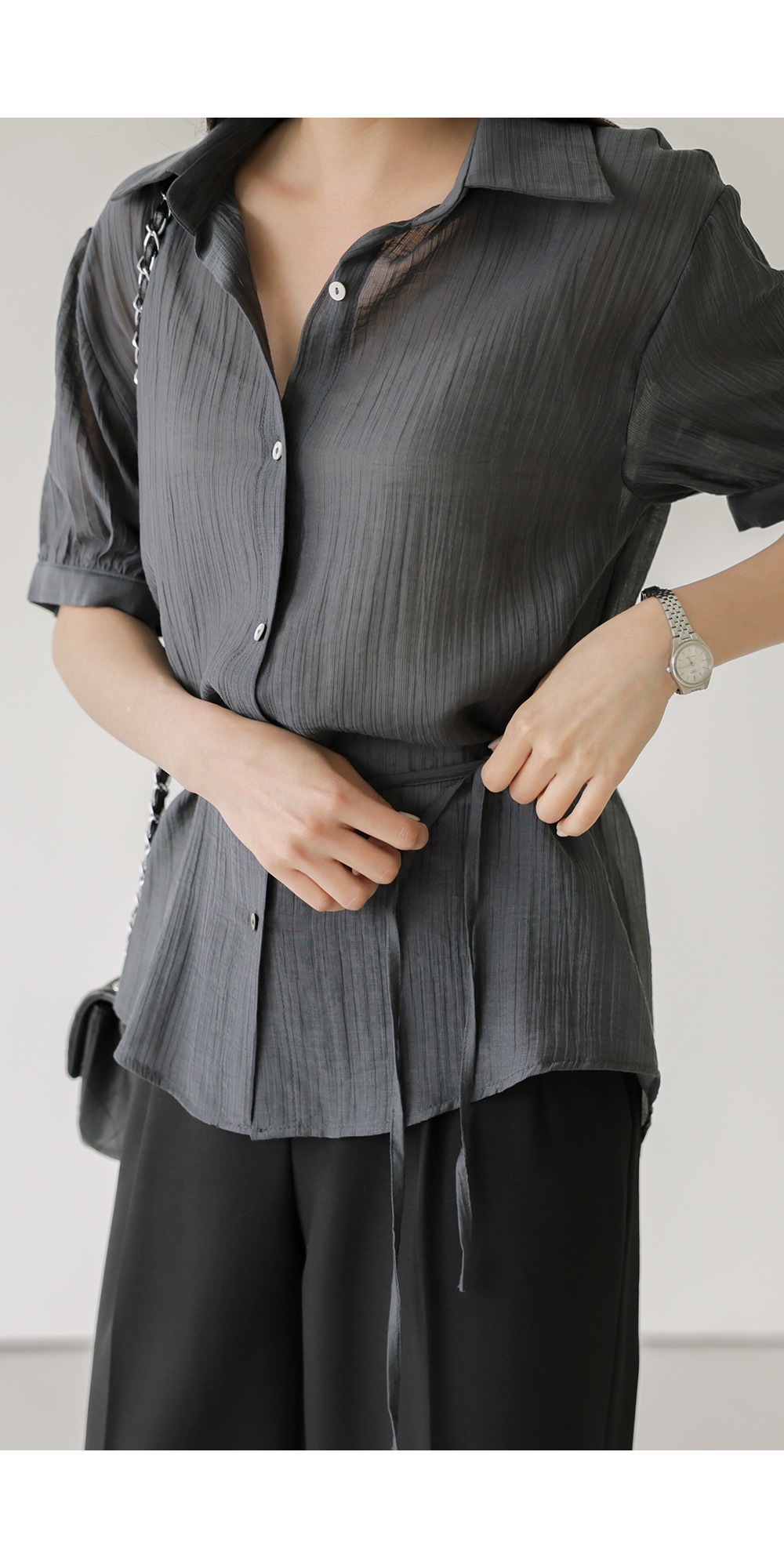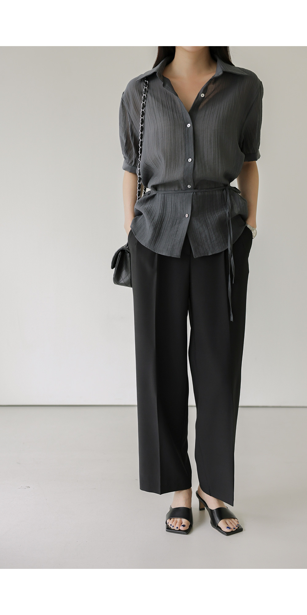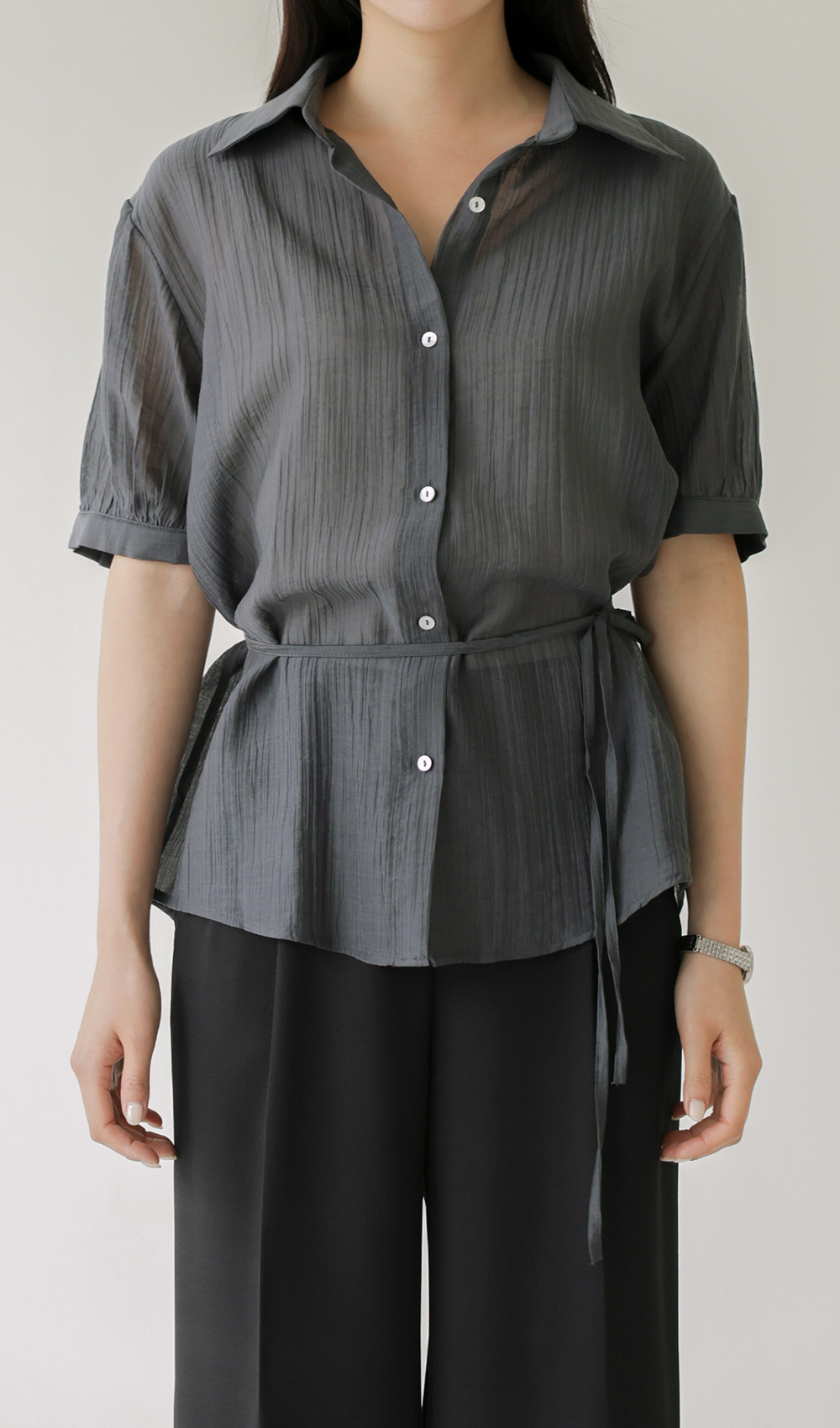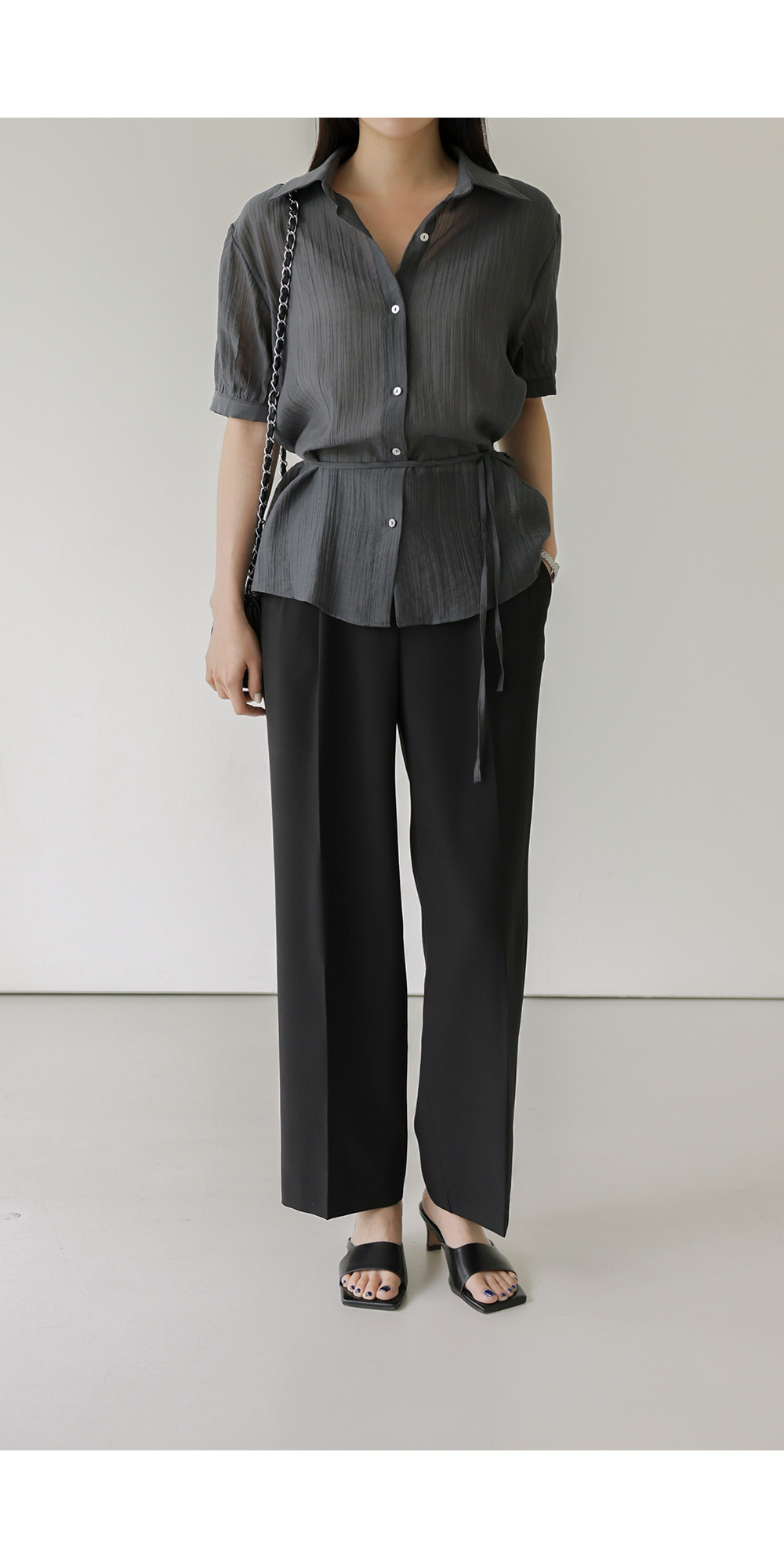 자베에 스트랩 셔츠 _ 차콜