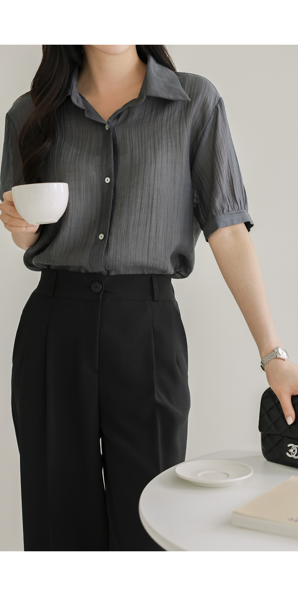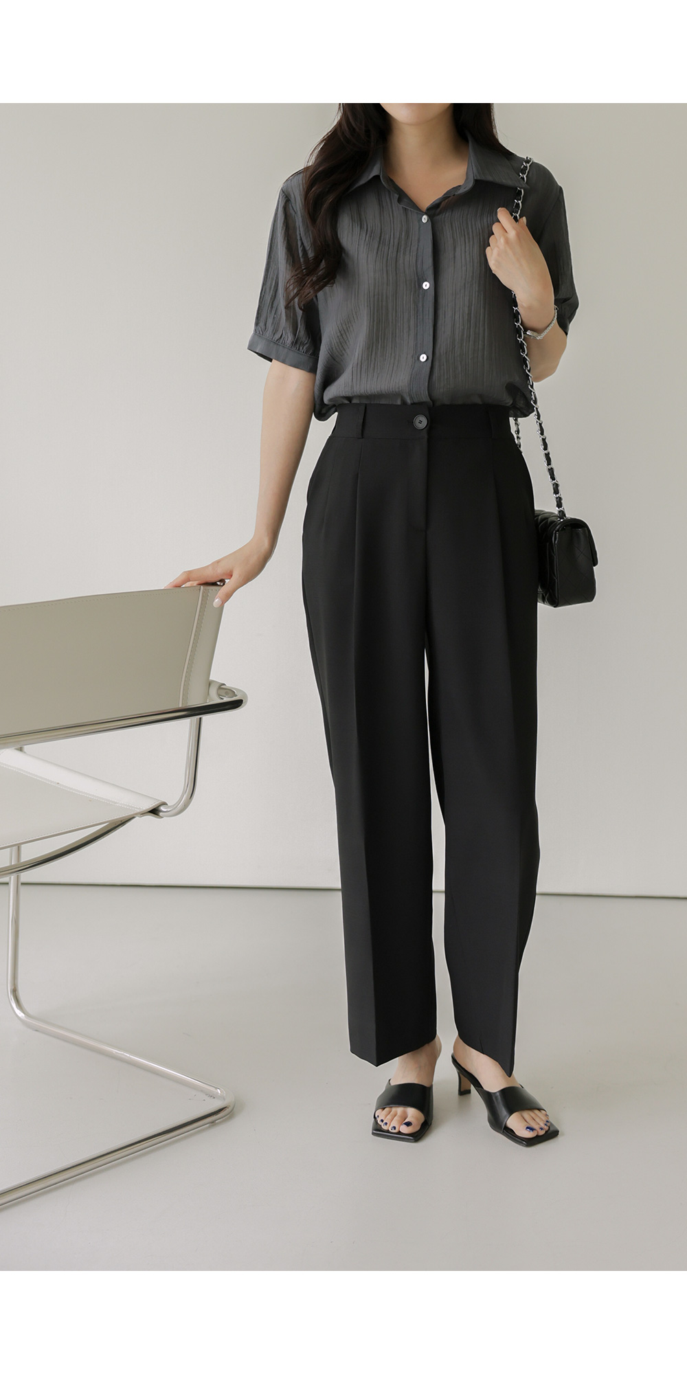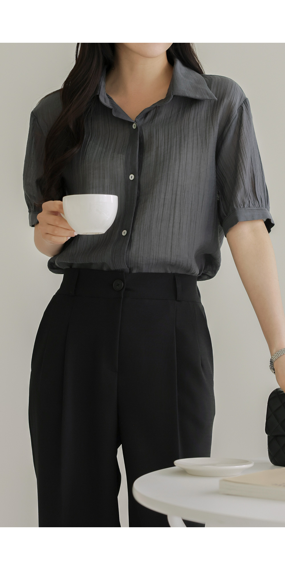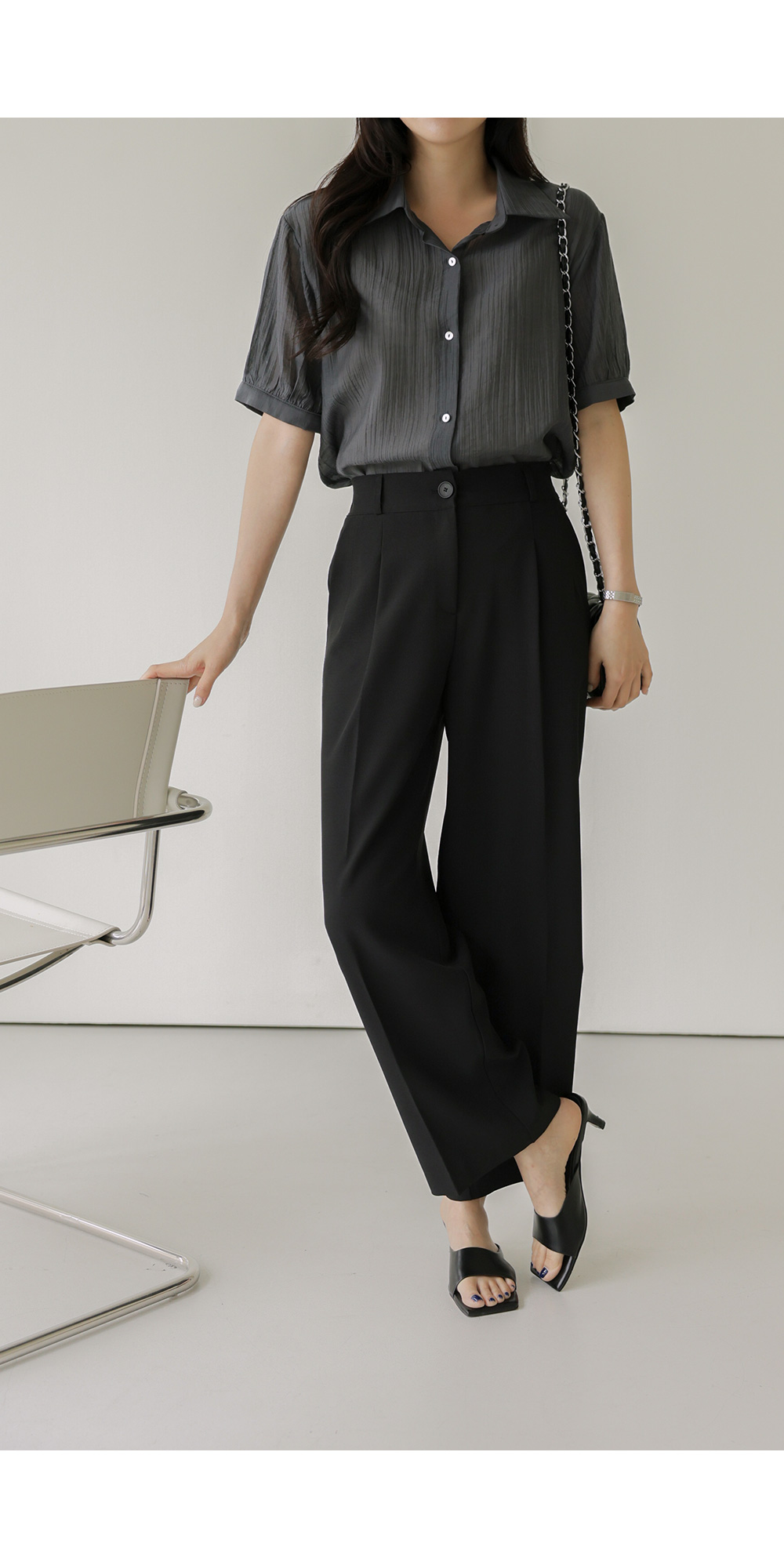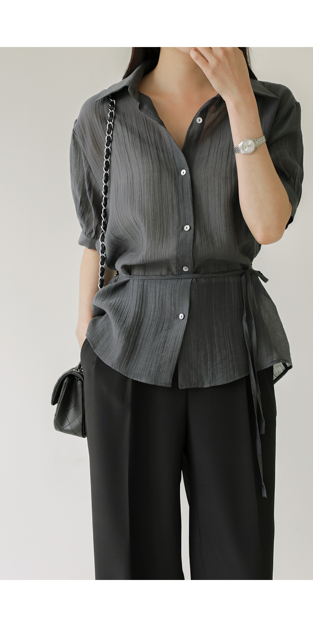 자베에 스트랩 셔츠 _ 차콜