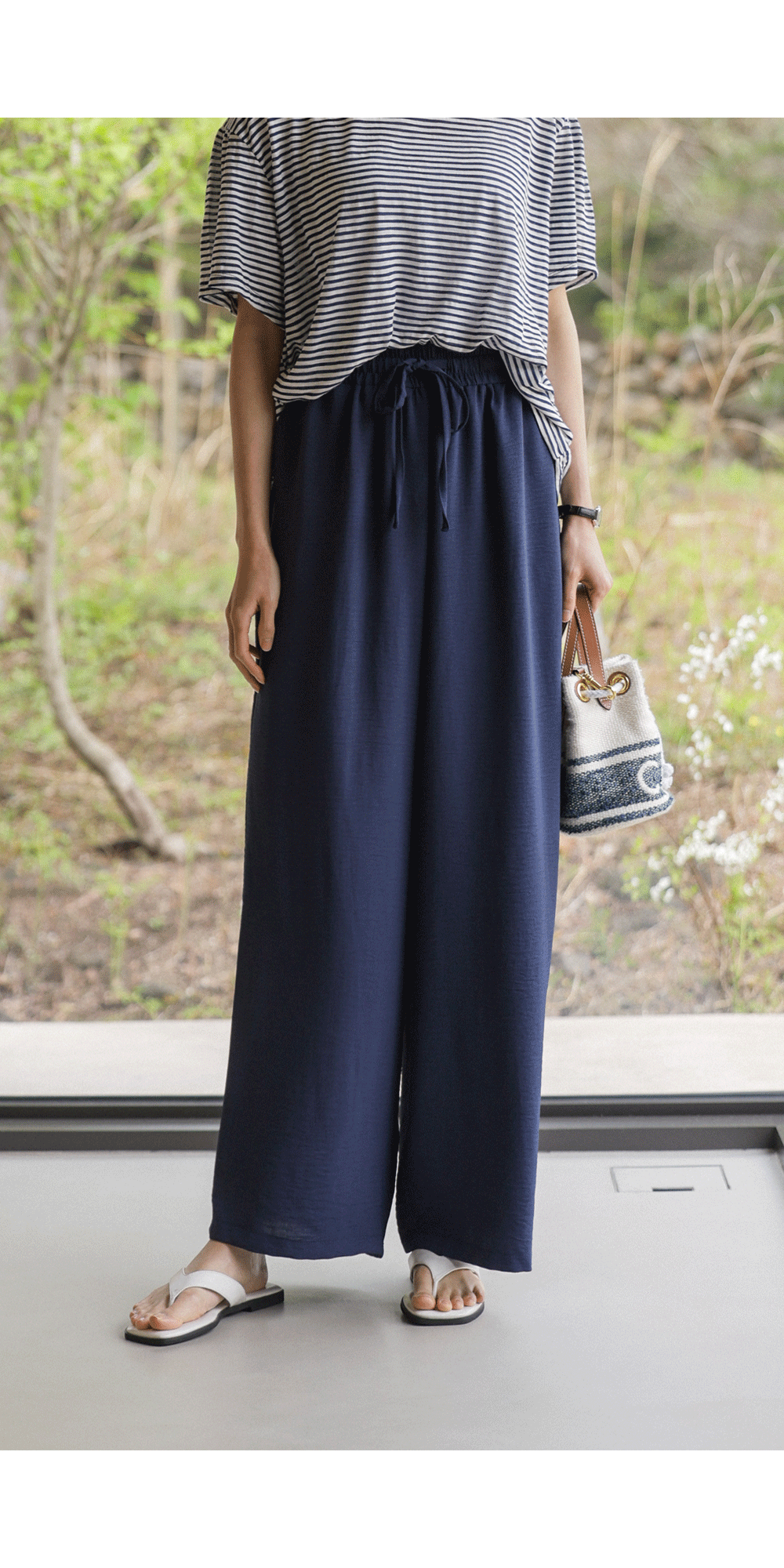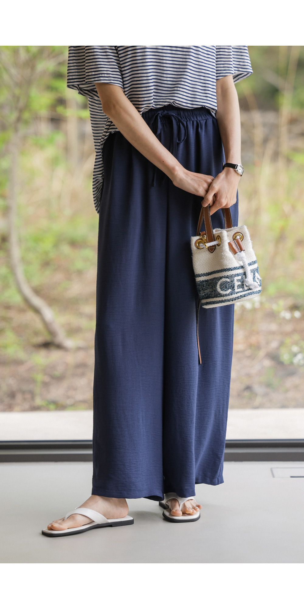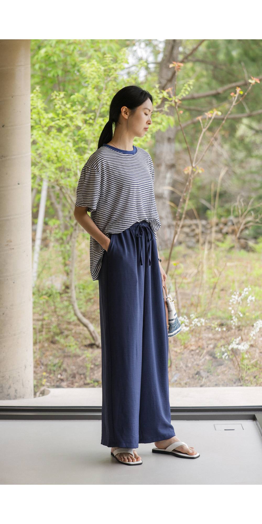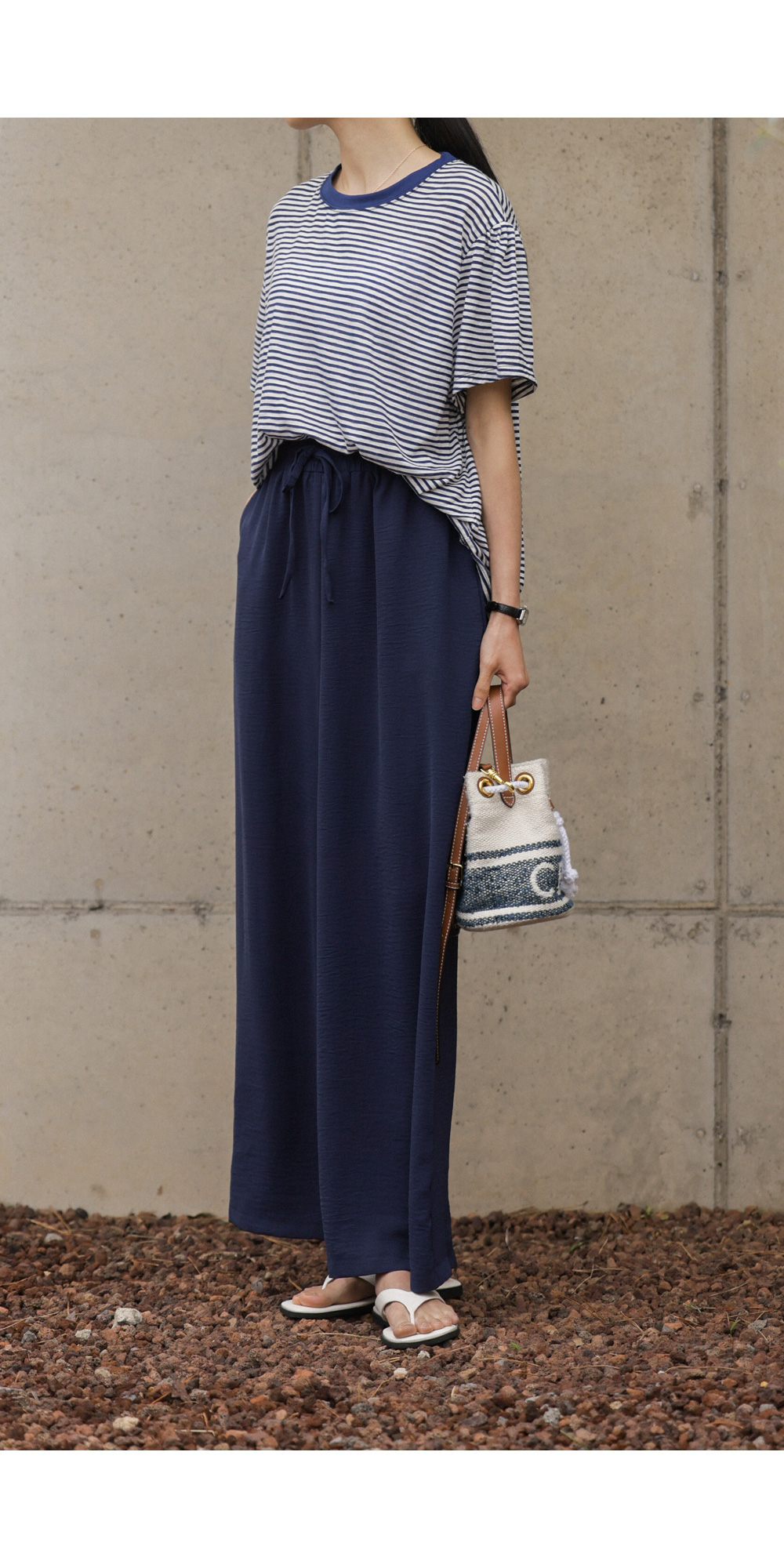 넥 라인의 시보리 배색과 어깨 퍼프의 만남이 평범한 스트라이프 티셔츠를 특별한 외출복으로 만들어주는 한 끗 차이예요. 부드러운 터치감 속에 숨겨진 탄탄한 힘이 몸의 라인을 흐트러짐 없이 잡아주어 입었을 때의 만족도가 남다르답니다.