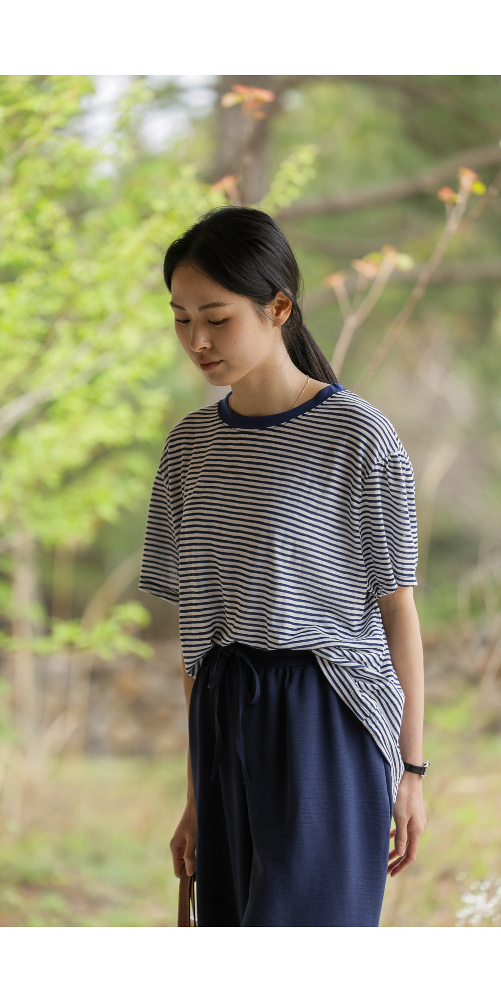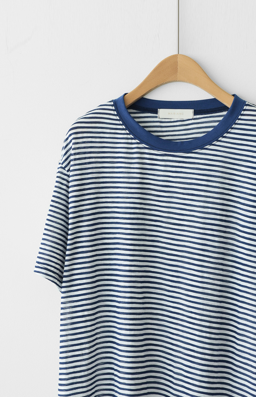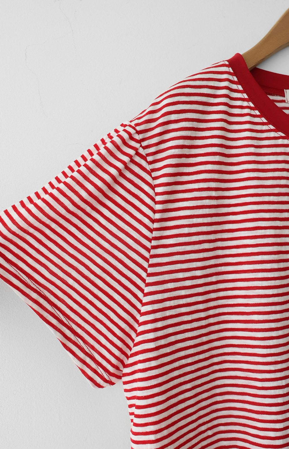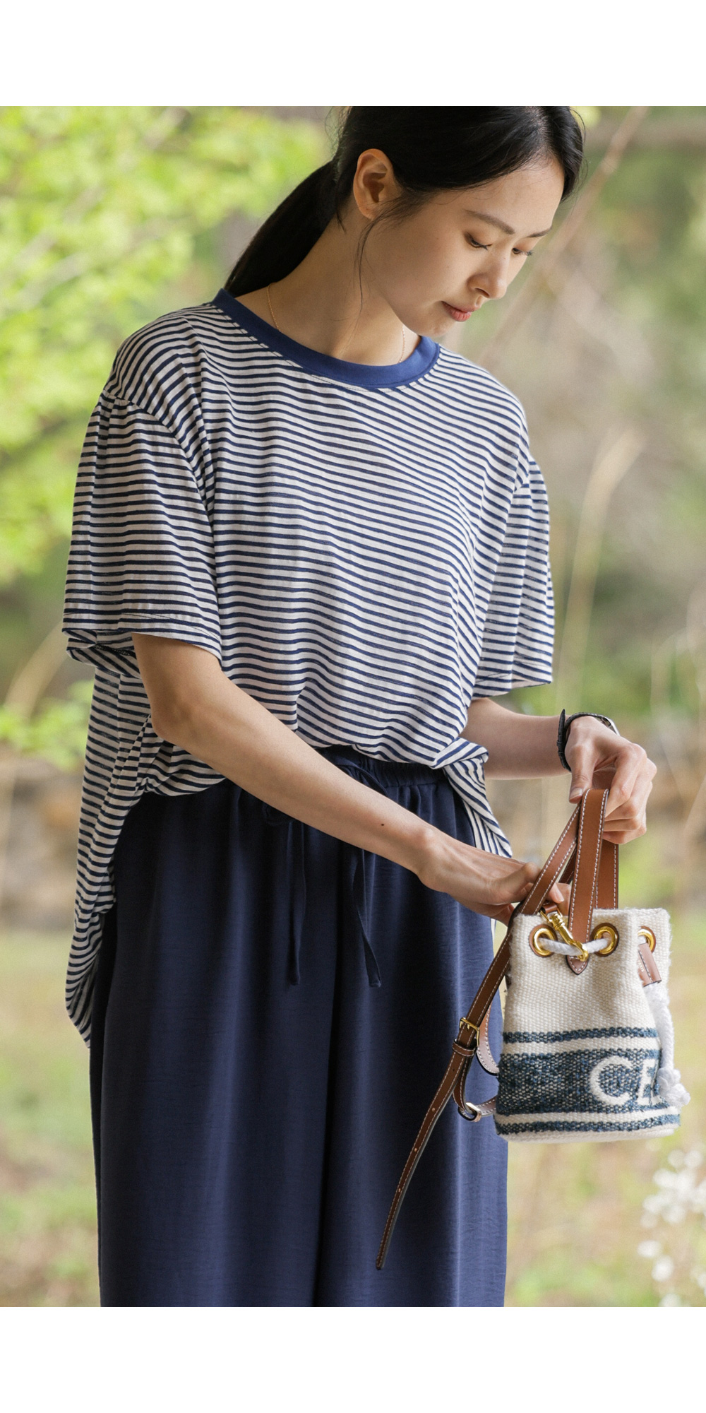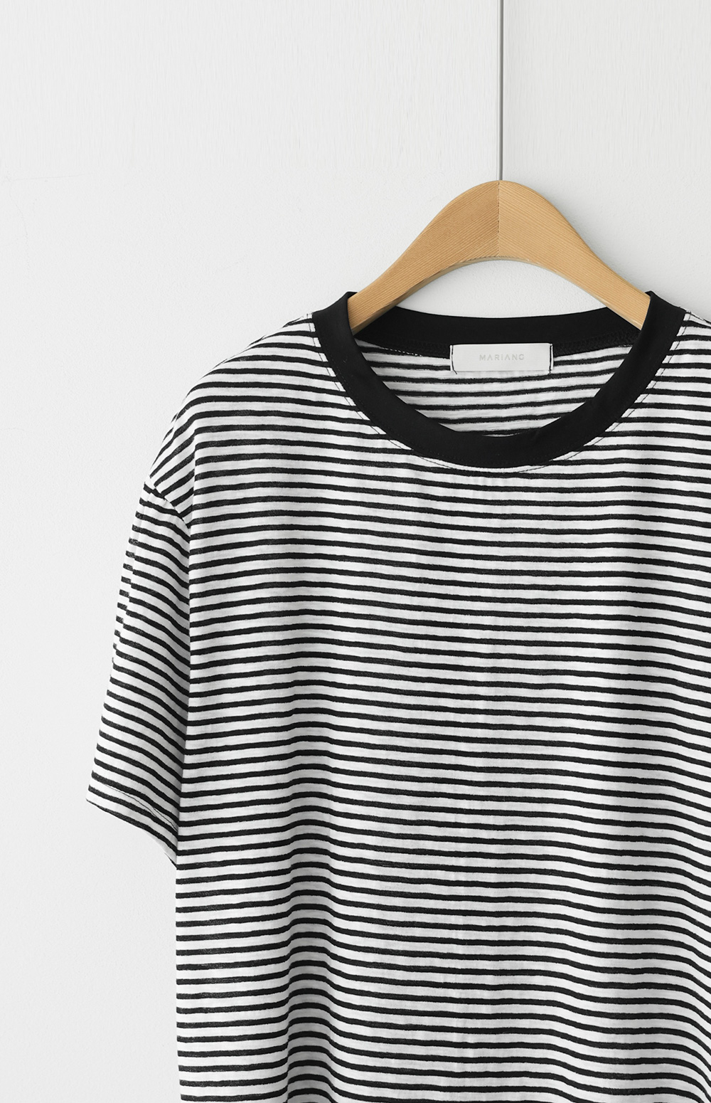 군살은 쏙 가리고 볼륨은 살려주는 제작 스트라이프 티셔츠