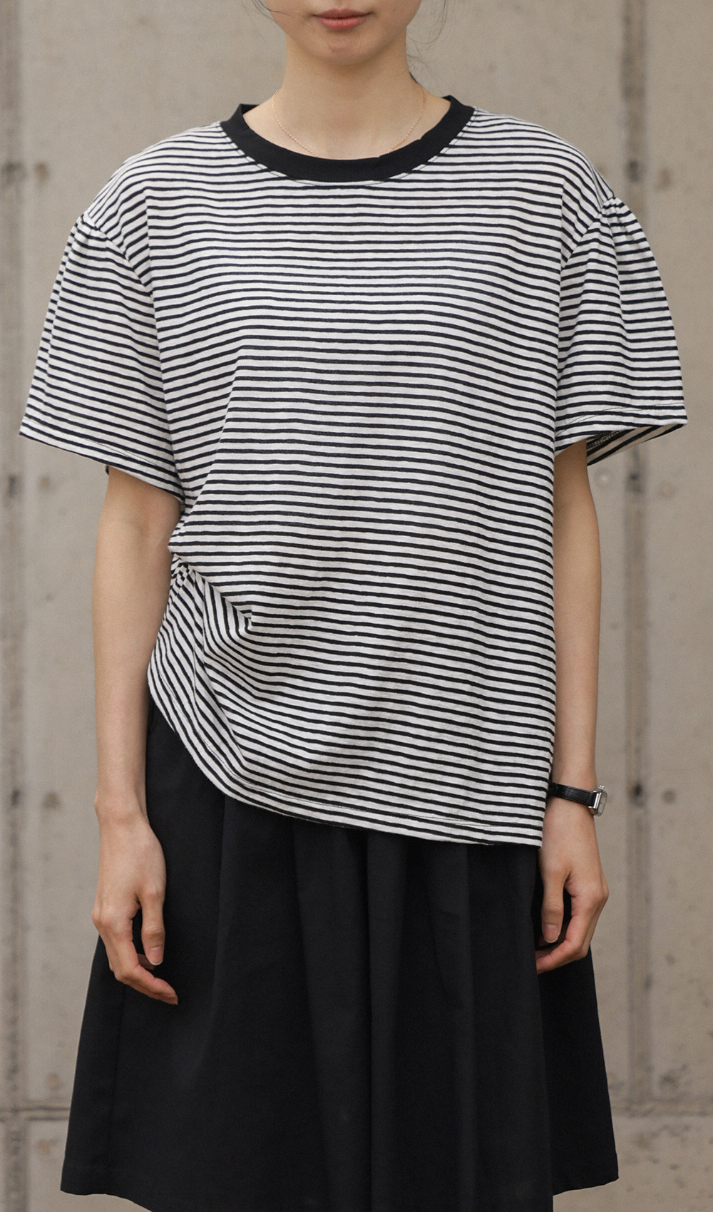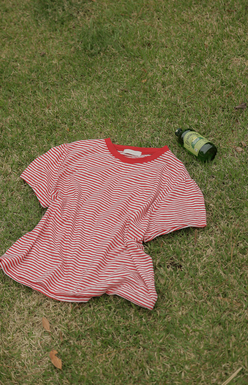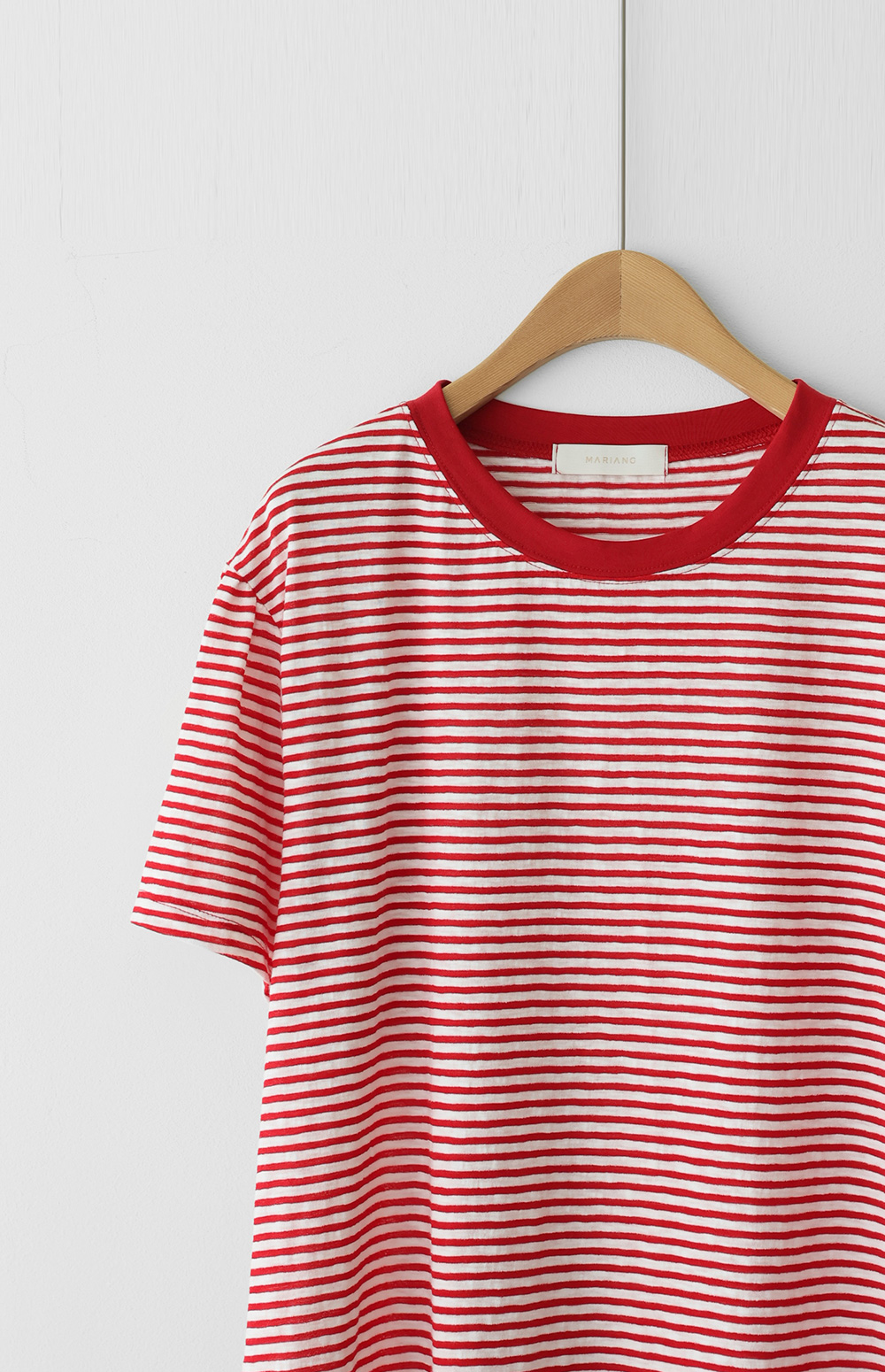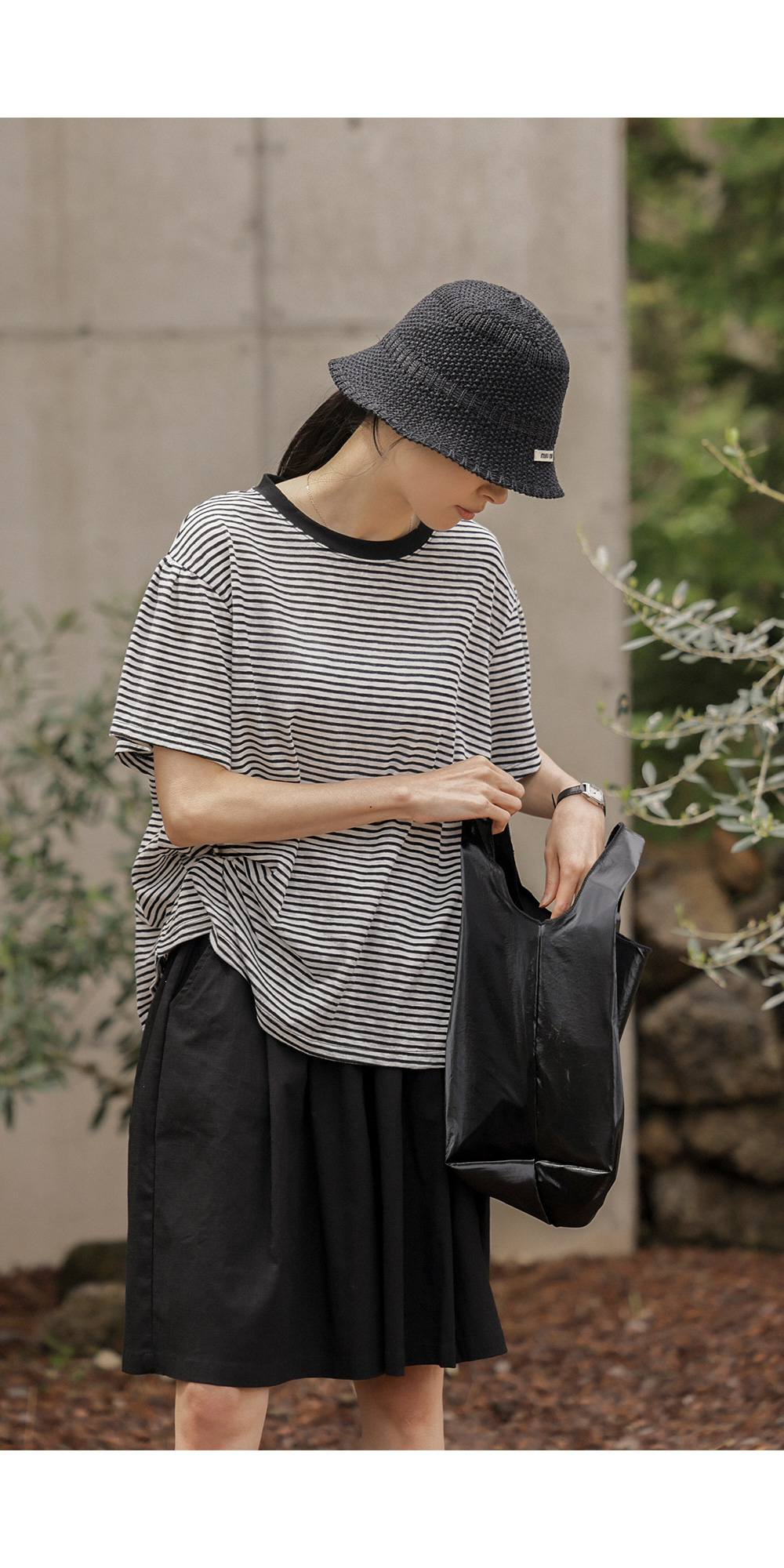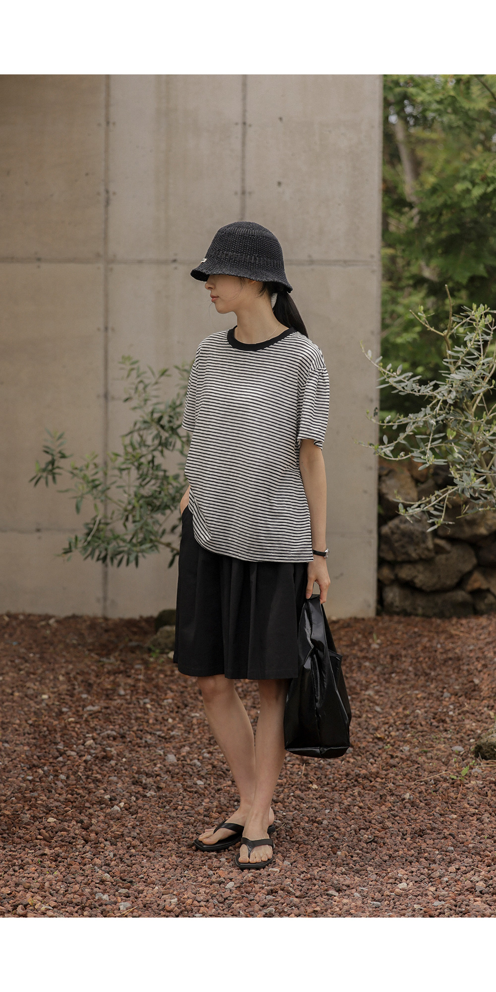군살은 쏙 가리고 볼륨은 살려주는 제작 스트라이프 티셔츠