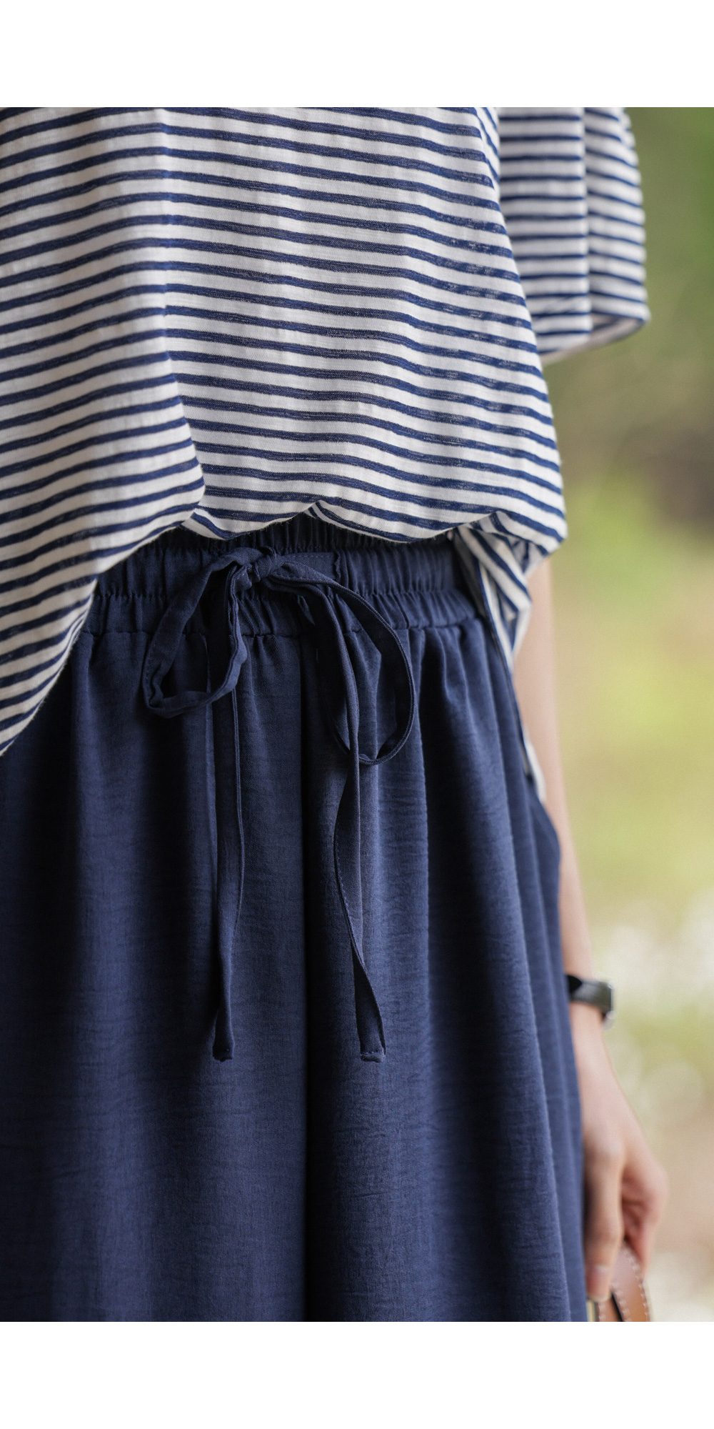 A:클래식한 스트라이프에 여성스러운 디테일만 한 방울 섞은 디자인이라 매년 꺼내 입기 좋으실 거예요.